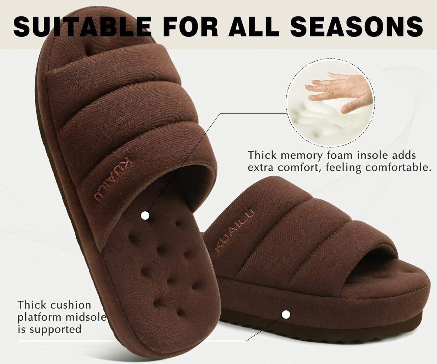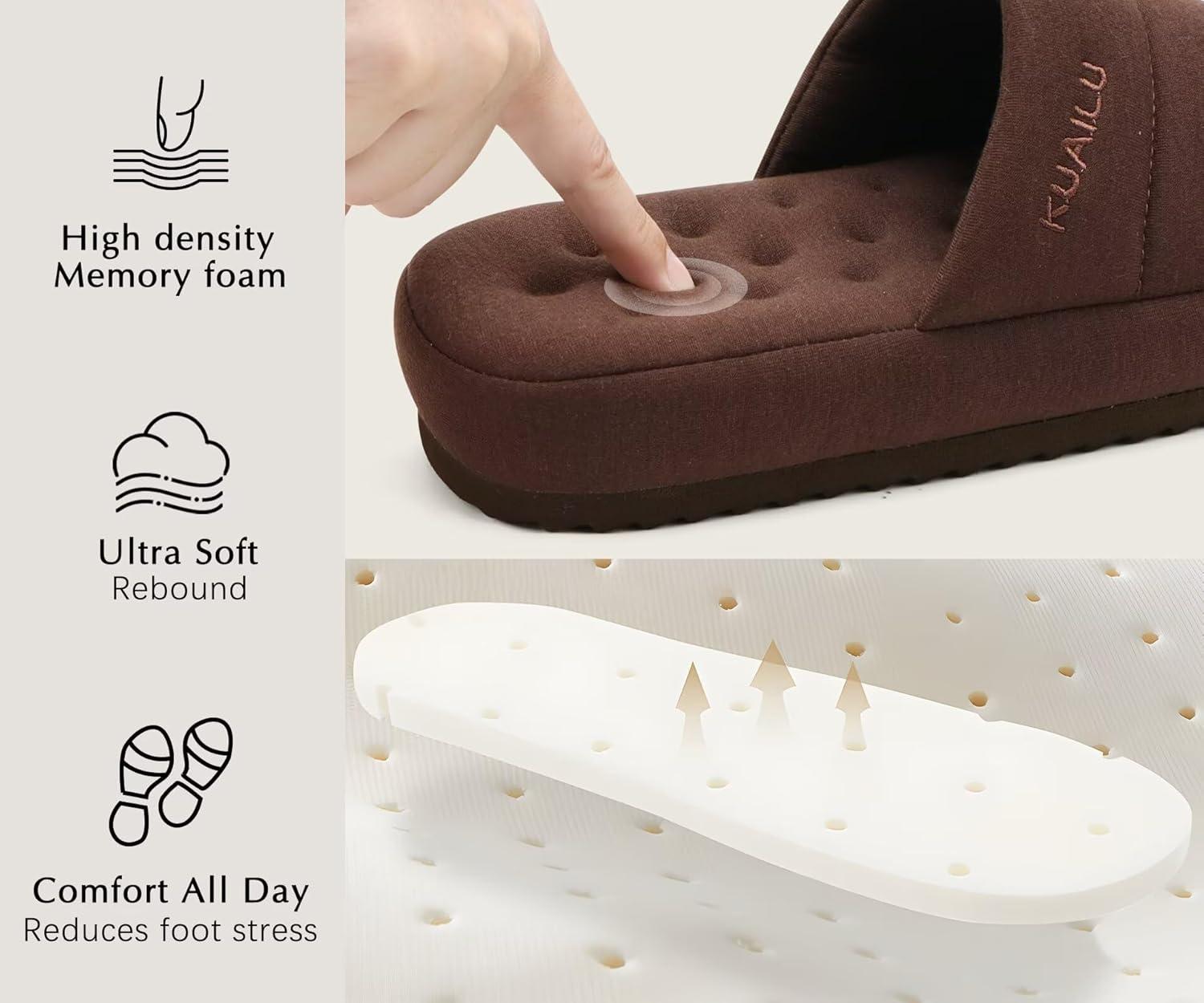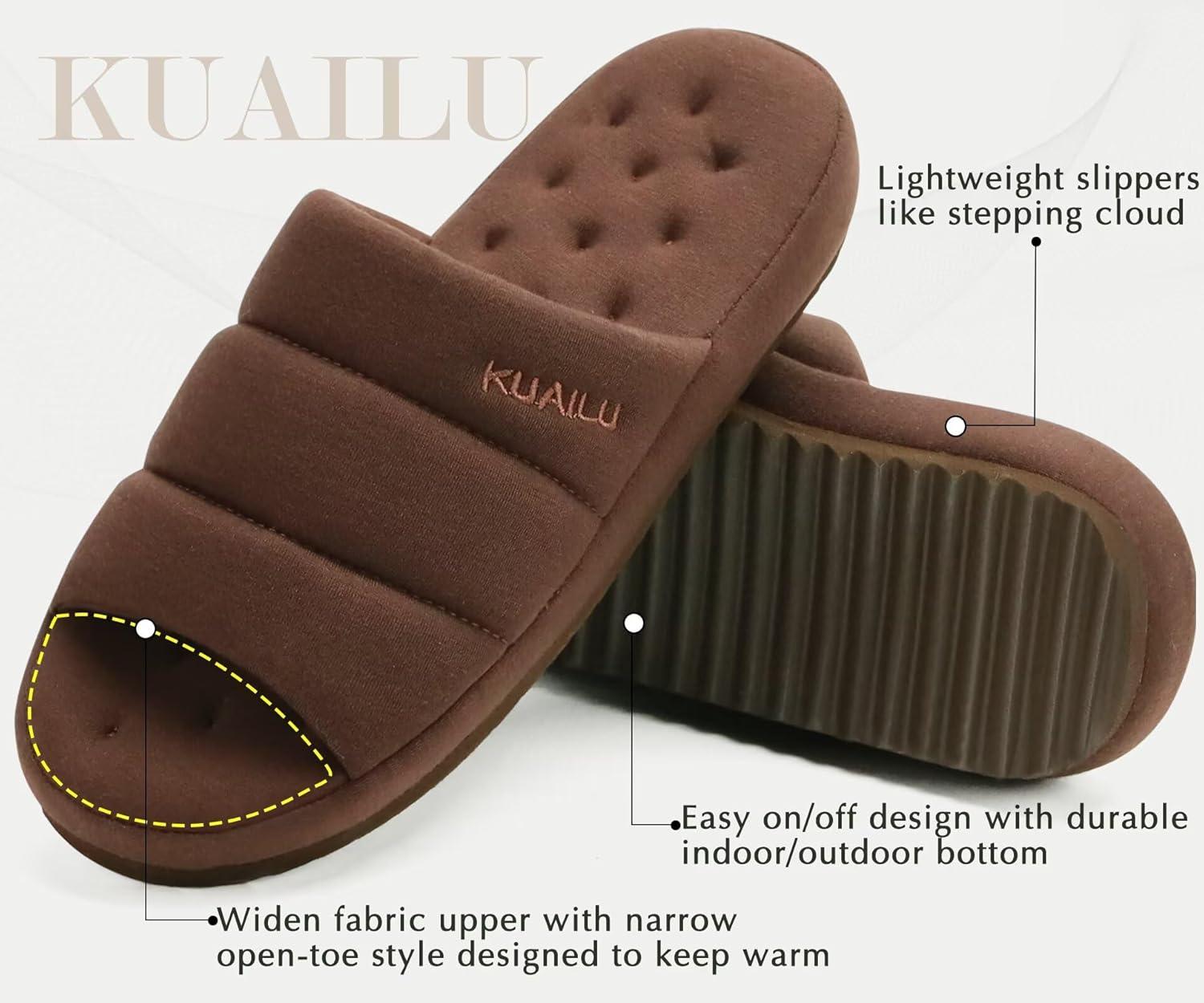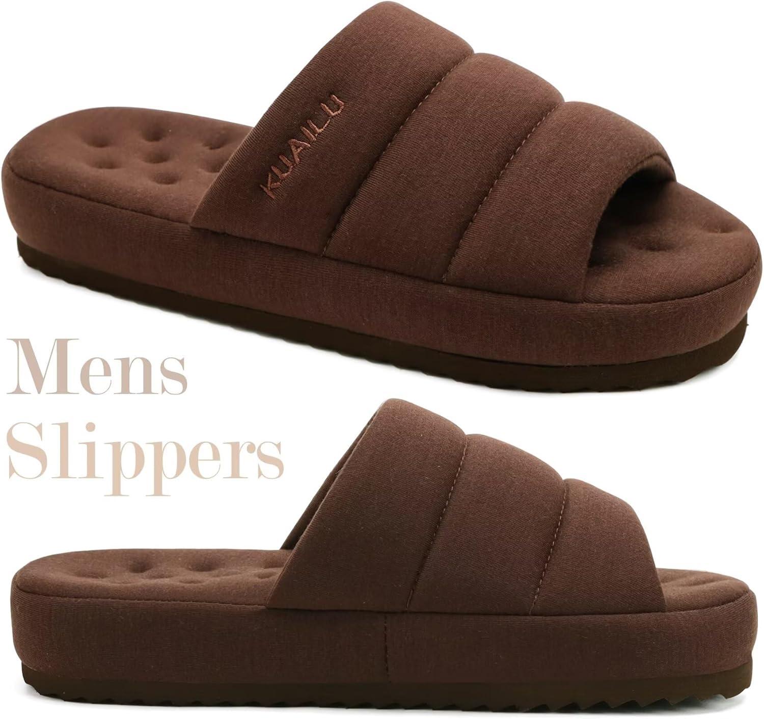 KuaiLu Men’s Slippers design with a premium upper/lining of rich, supple fabric for a luxe look and feel. Narrow open toe design + dotted quilted cotton-blend lining, and widen fabric upper perfectly wrap your feet, breathable but keep warm, suitable for wearing all year round. Each Slipper is fitted with a thick cushioned midsole and multi-layer high-density sponge insole, the platform is supported and not collapsed, paired with no-sweat cloth lined offers lasting cloud-like soft comfort and warmth for tired toes and heels. Increased heel and medium arch support cushioning adds extra comfort for slippers. The sturdy hard sole is wear-resistant and non-slip, combine easy on/off design make these slippers suitable for all scenes (indoor & outdoor friendly).