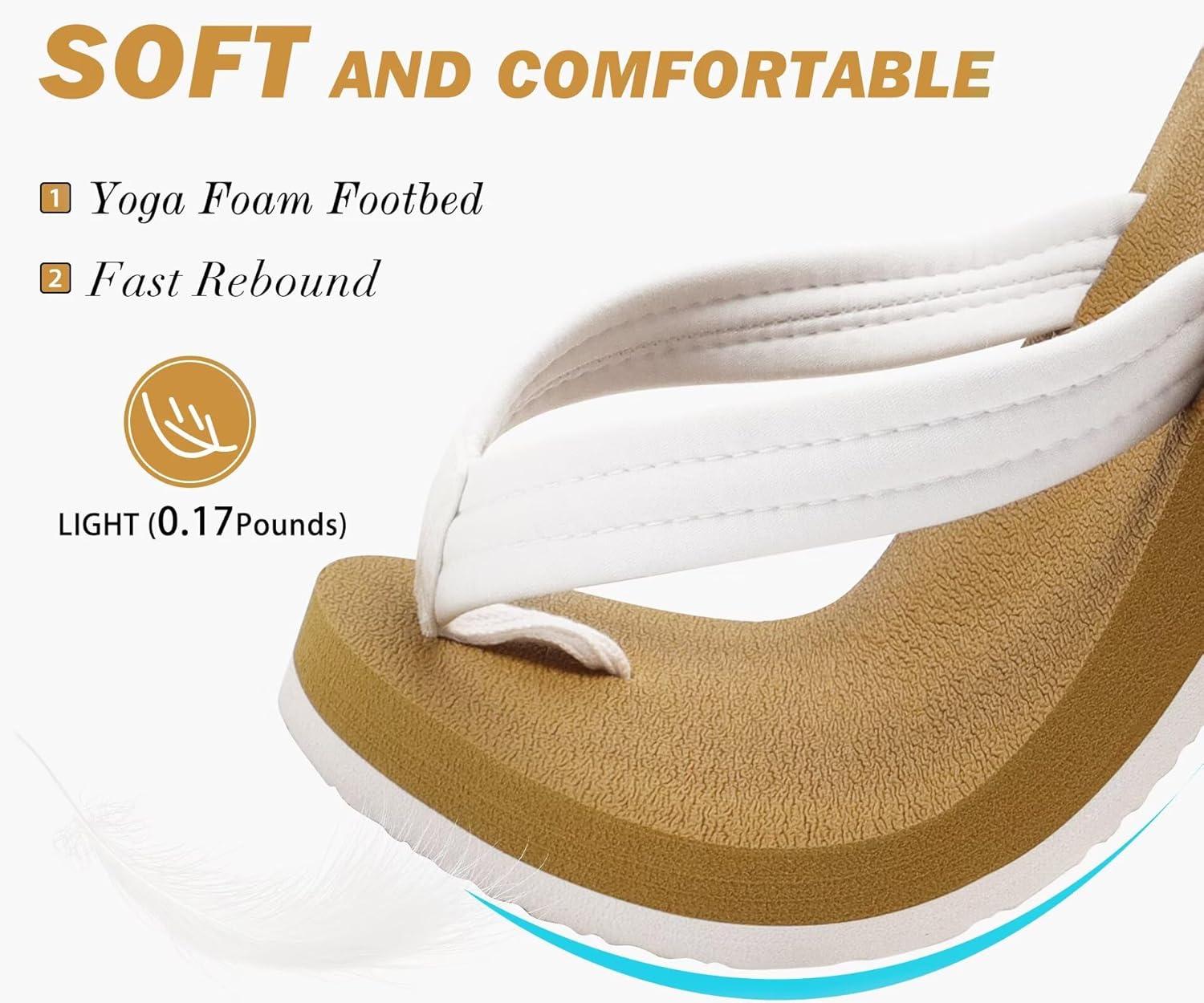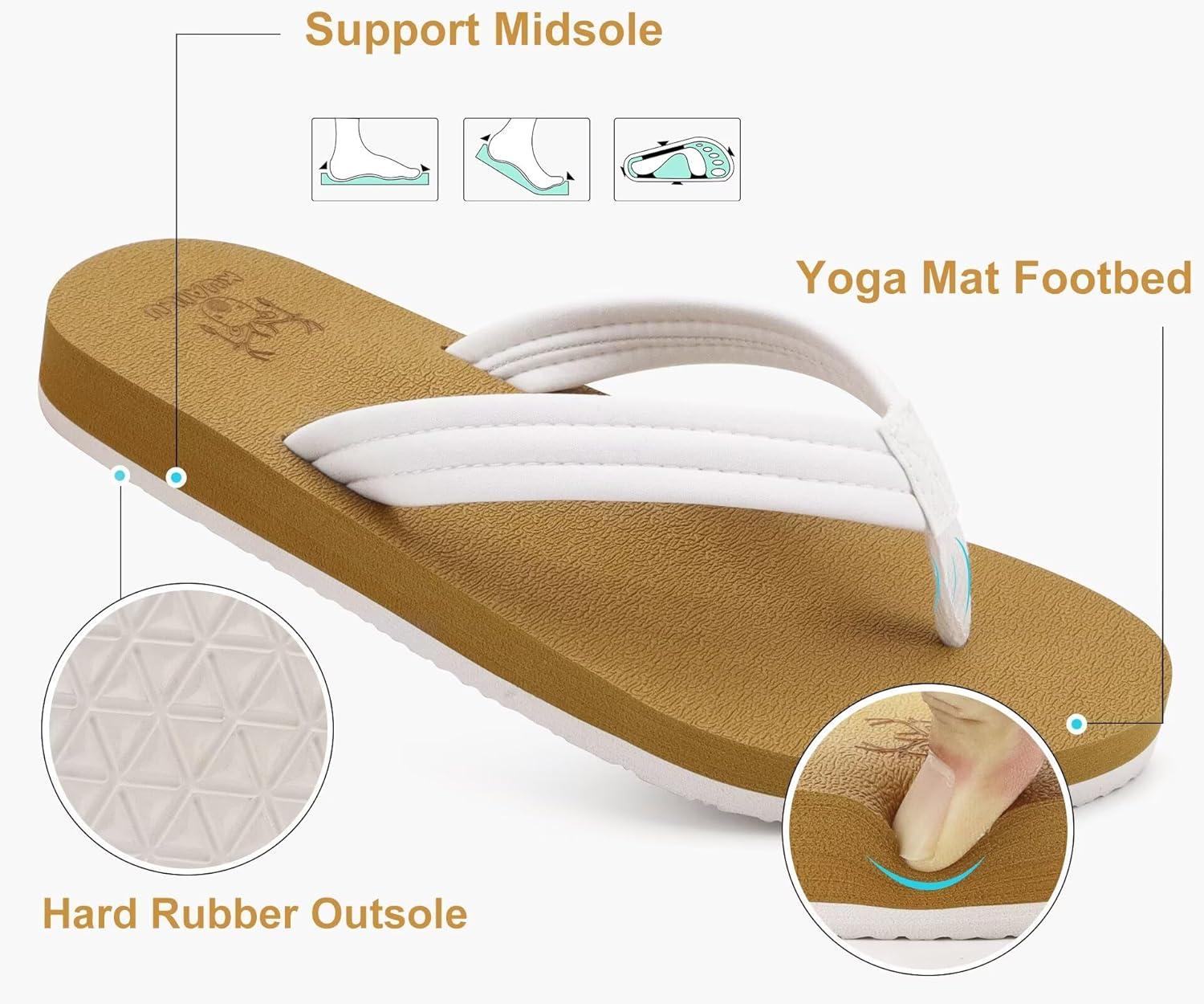 KuaiLu Womens Arch Support Flip Flops Ladies Comfort Lightweight Soft Yoga Mat Cushion Walking Thong Sandals