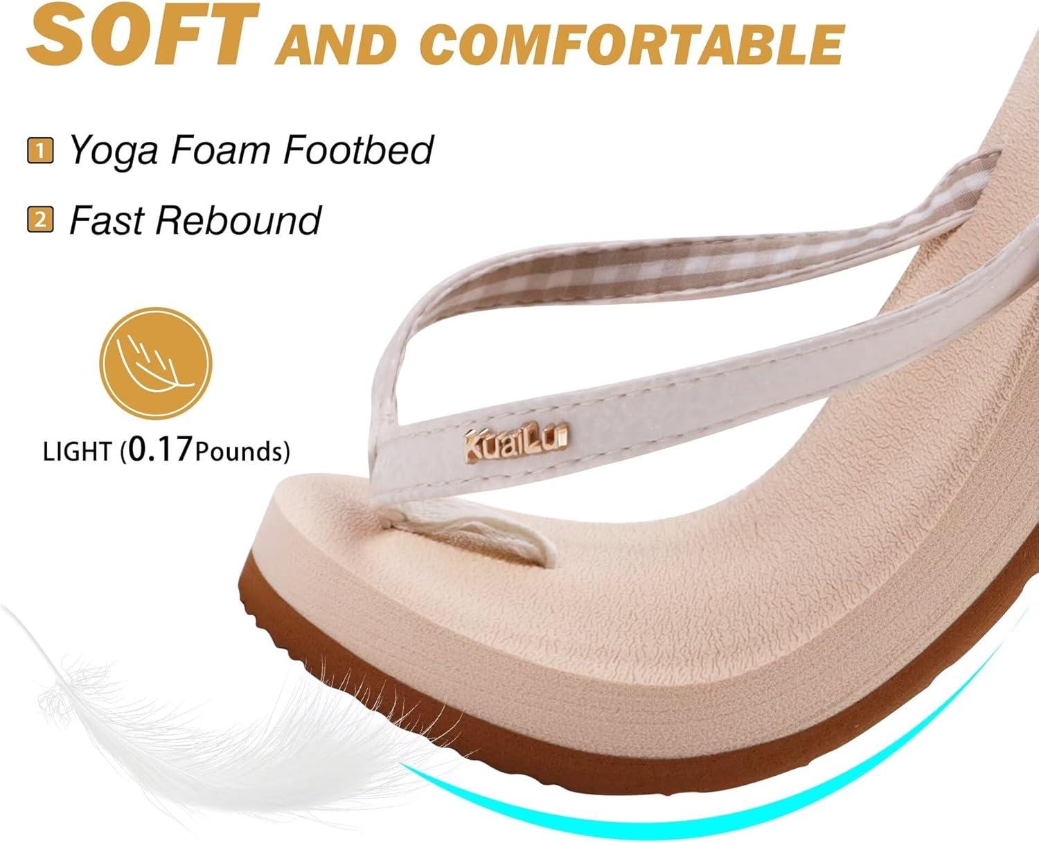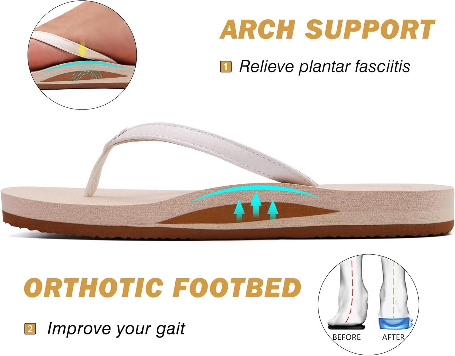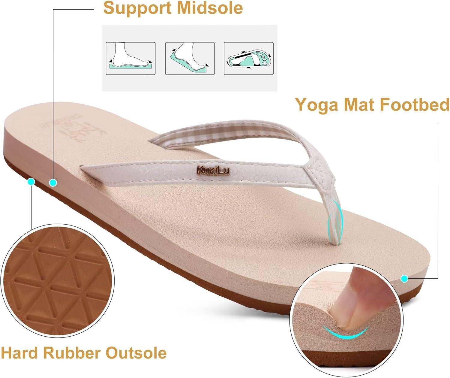 KuaiLu Womens Arch Support Flip Flops Comfortable Yoga Mat Slip on Summer Beach Walking Thong Cushion Sandals(Beige)