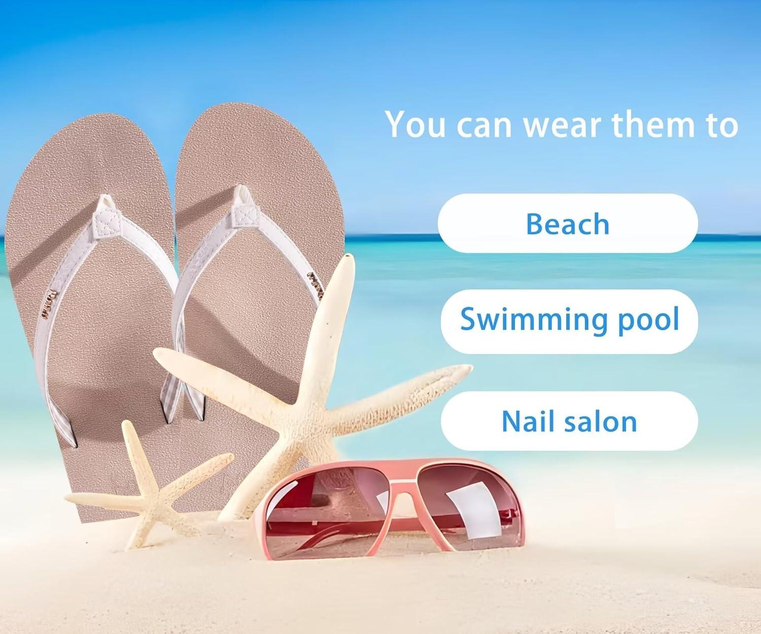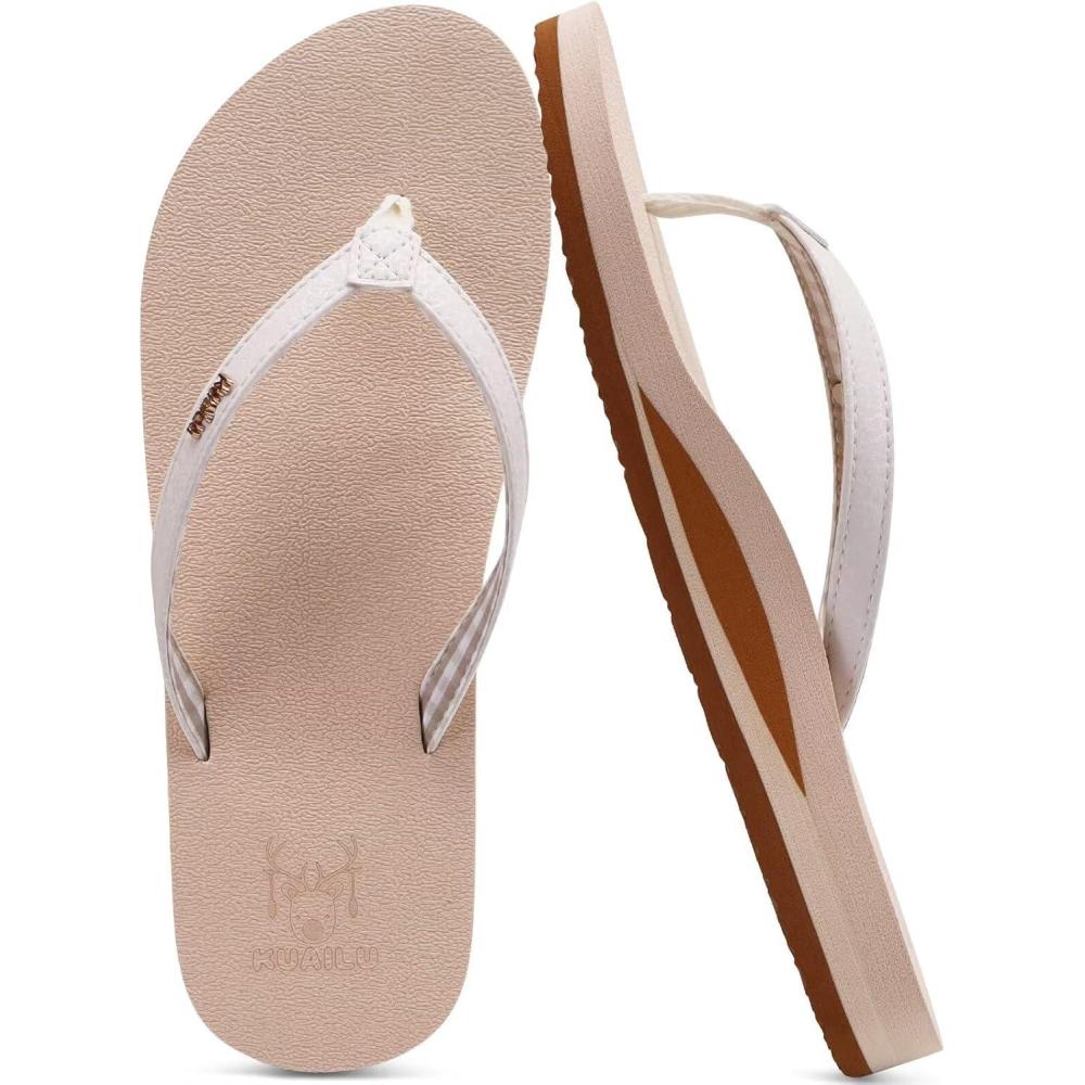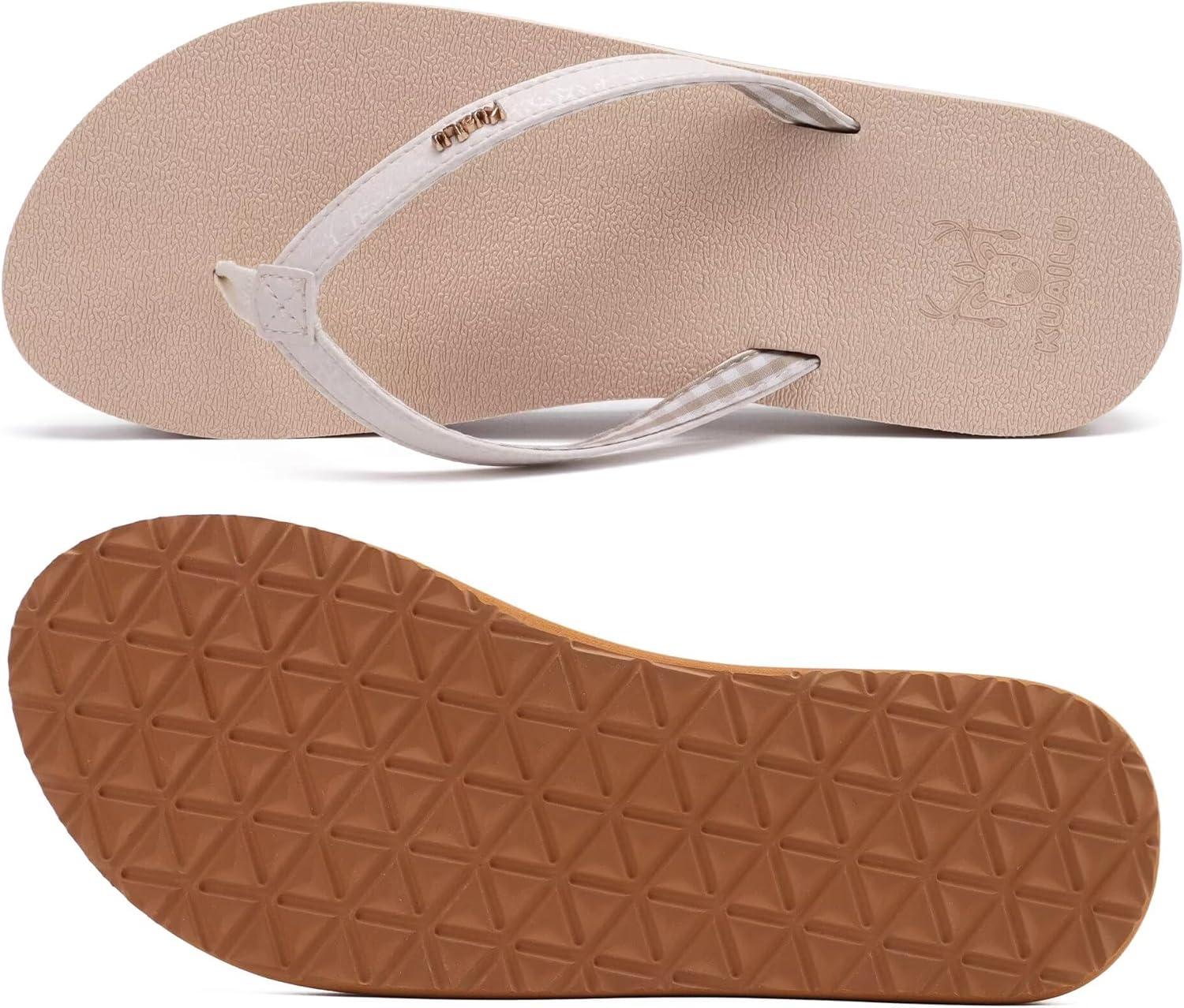 KuaiLu Womens Arch Support Flip Flops Comfortable Yoga Mat Slip on Summer Beach Walking Thong Cushion Sandals(Beige)