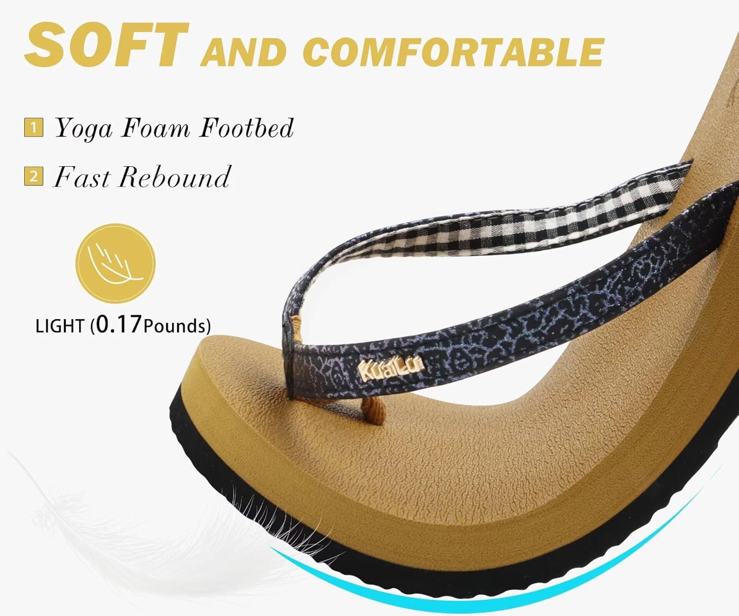 imageKuaiLu Womens Arch Support Flip Flops Comfortable Yoga Mat Slip on Summer Beach Walking Thong Cushion SandalsBlack