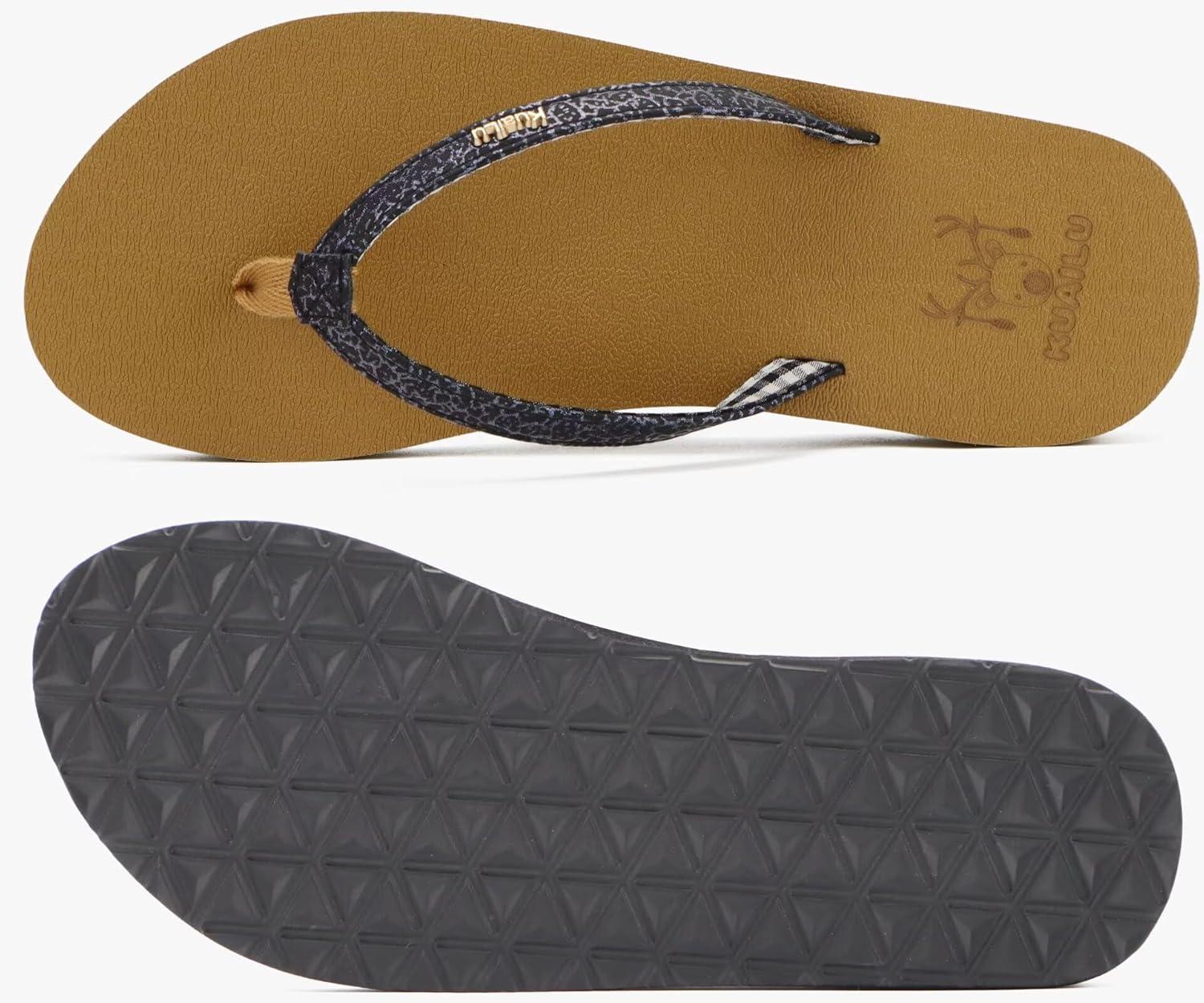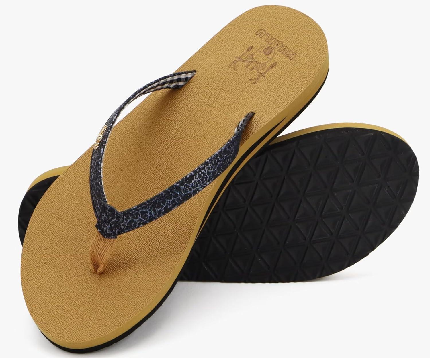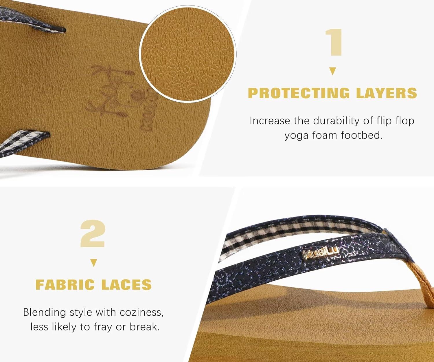 KuaiLu Womens Arch Support Flip Flops Comfortable Yoga Mat Slip on Summer Beach Walking Thong Cushion Sandals(Black Khaki)