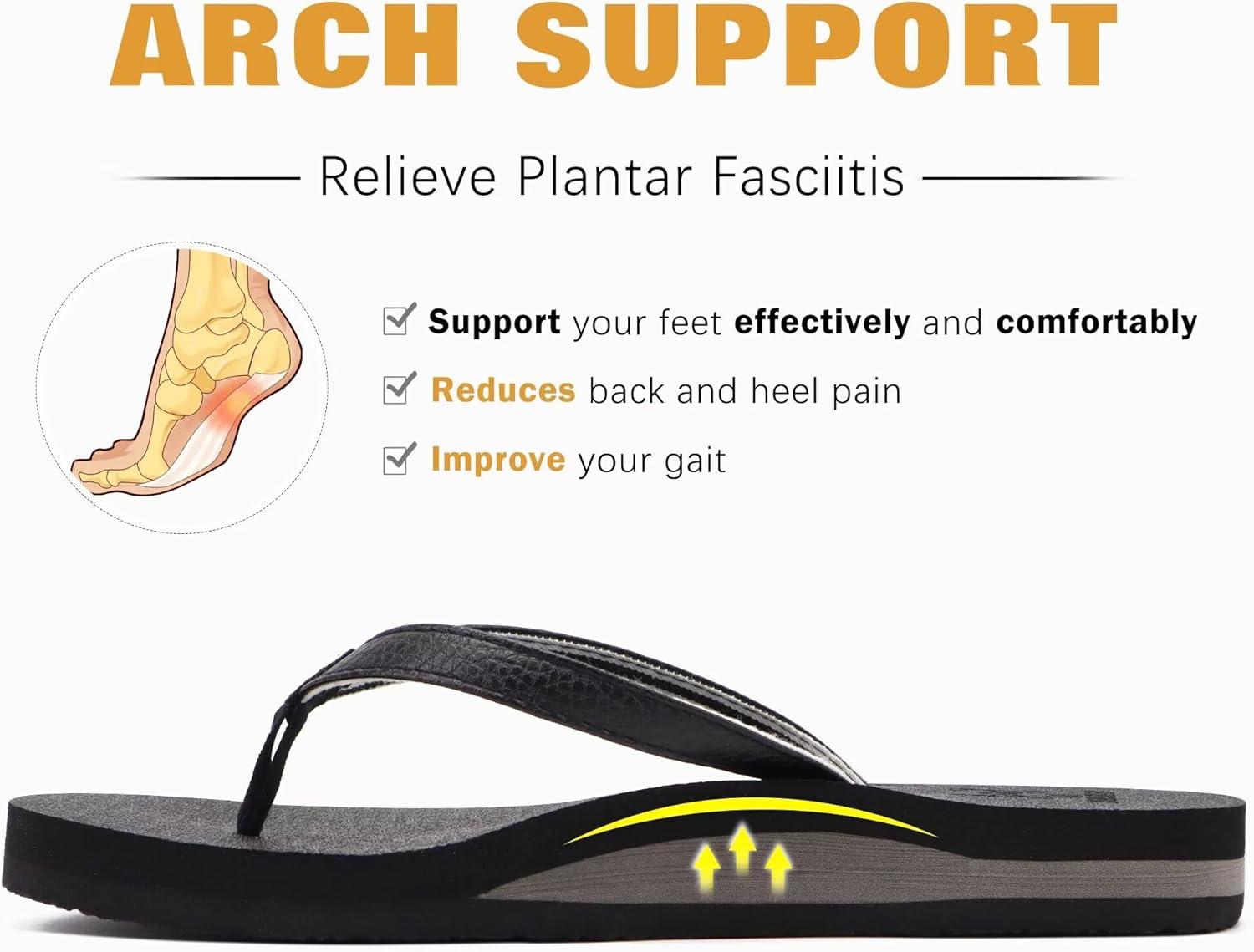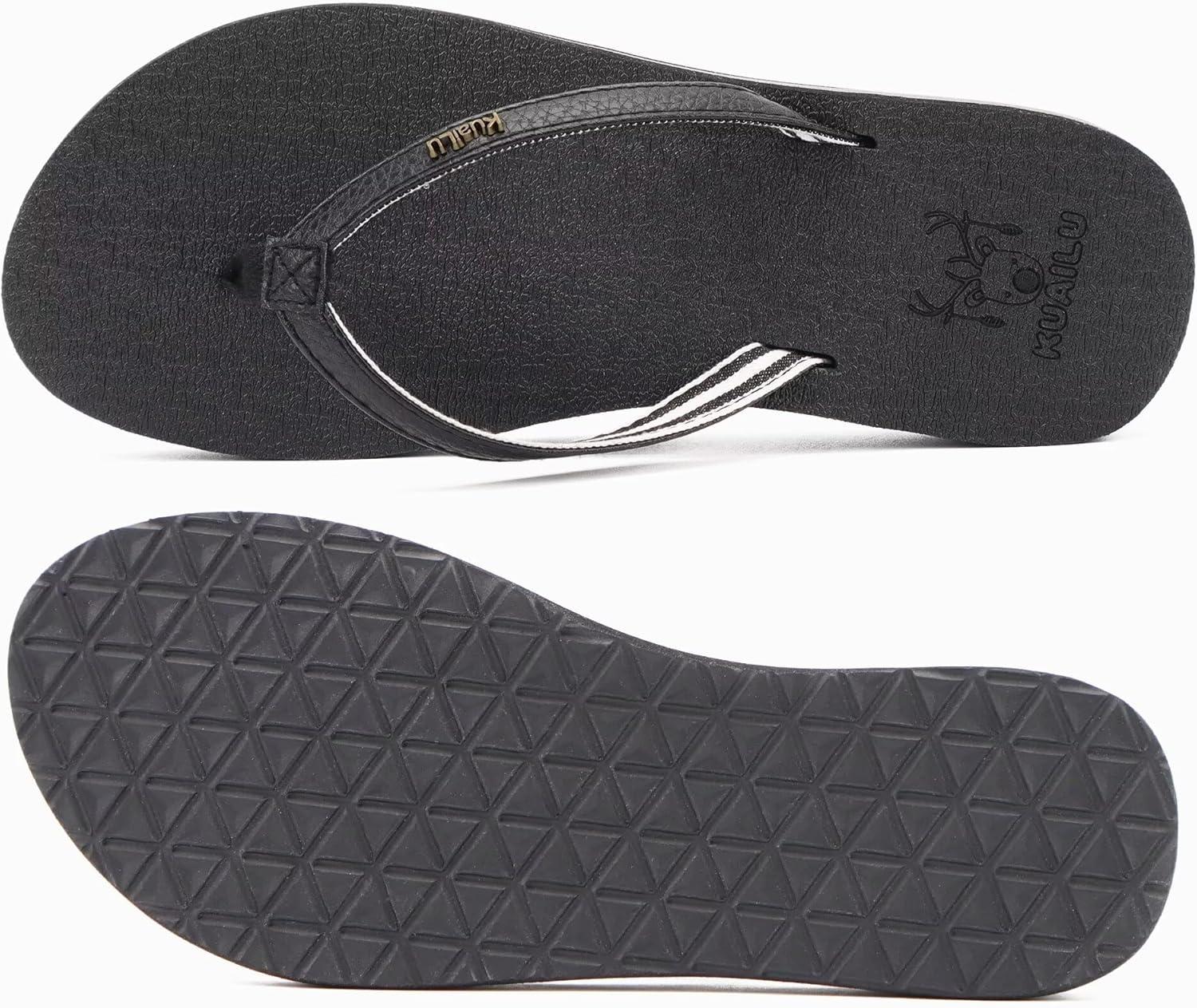 KuaiLu Womens Arch Support Flip Flops Comfortable Yoga Mat Slip on Summer Beach Walking Thong Cushion Sandals(Black)