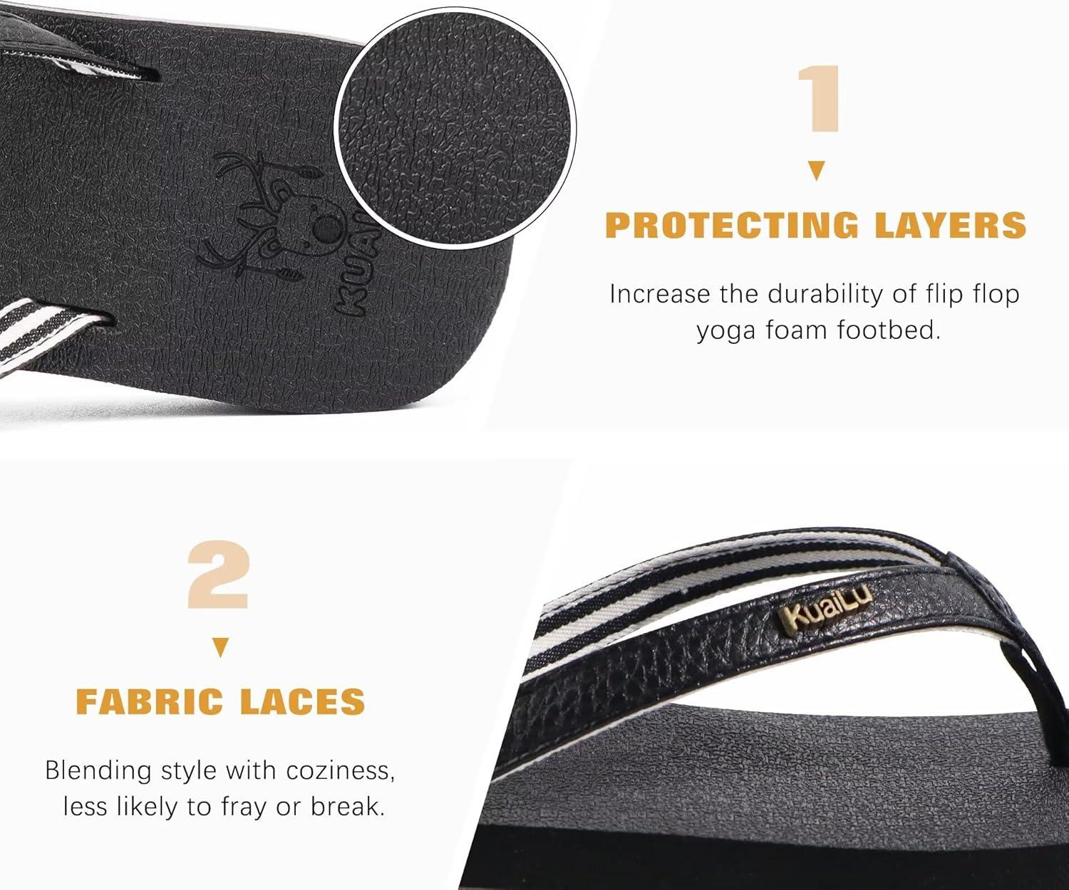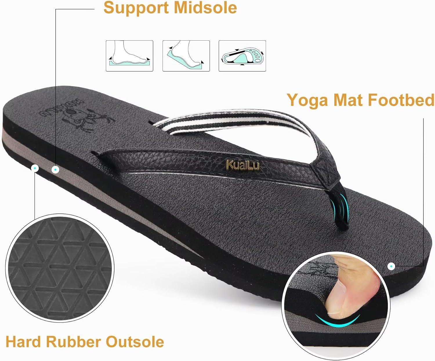 imageKuaiLu Womens Arch Support Flip Flops Comfortable Yoga Mat Slip on Summer Beach Walking Thong Cushion SandalsBlack
