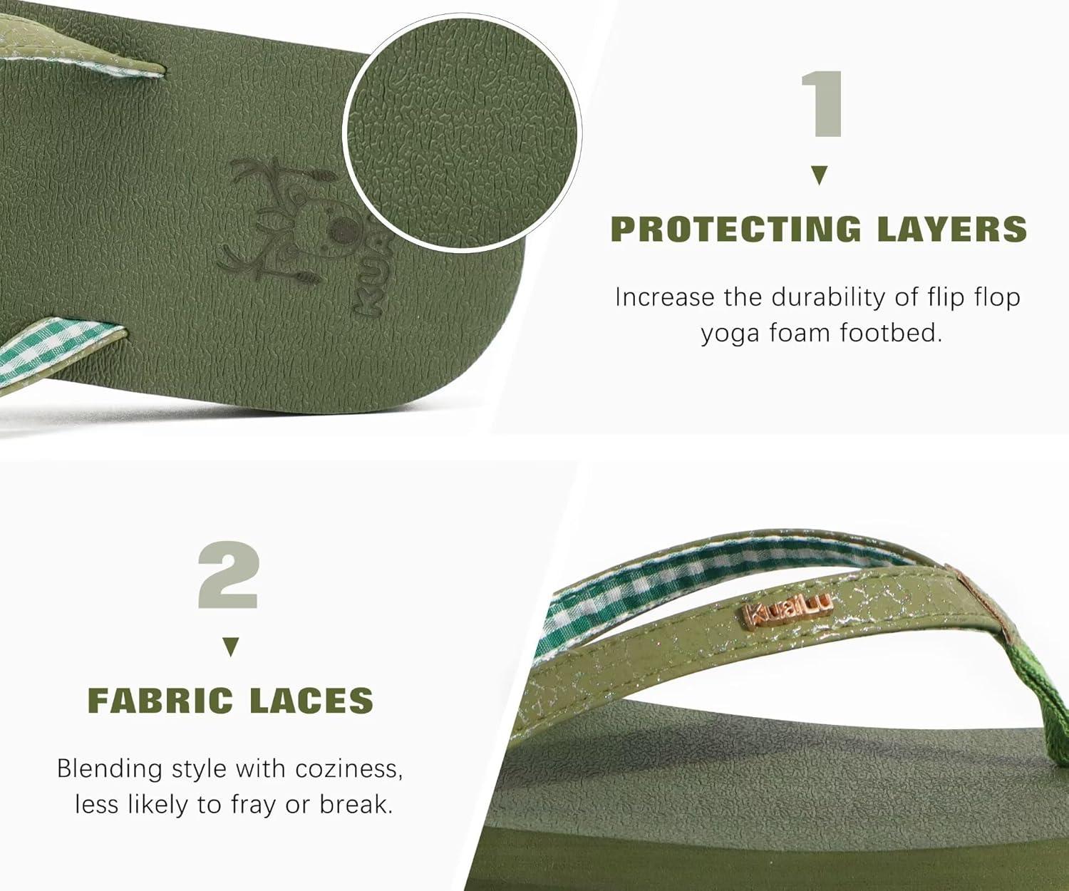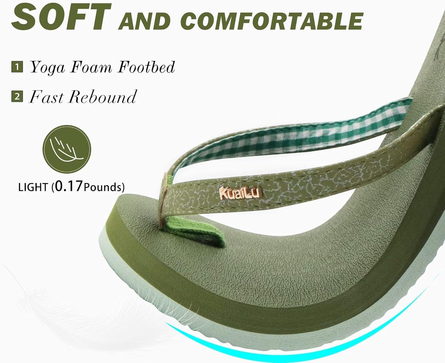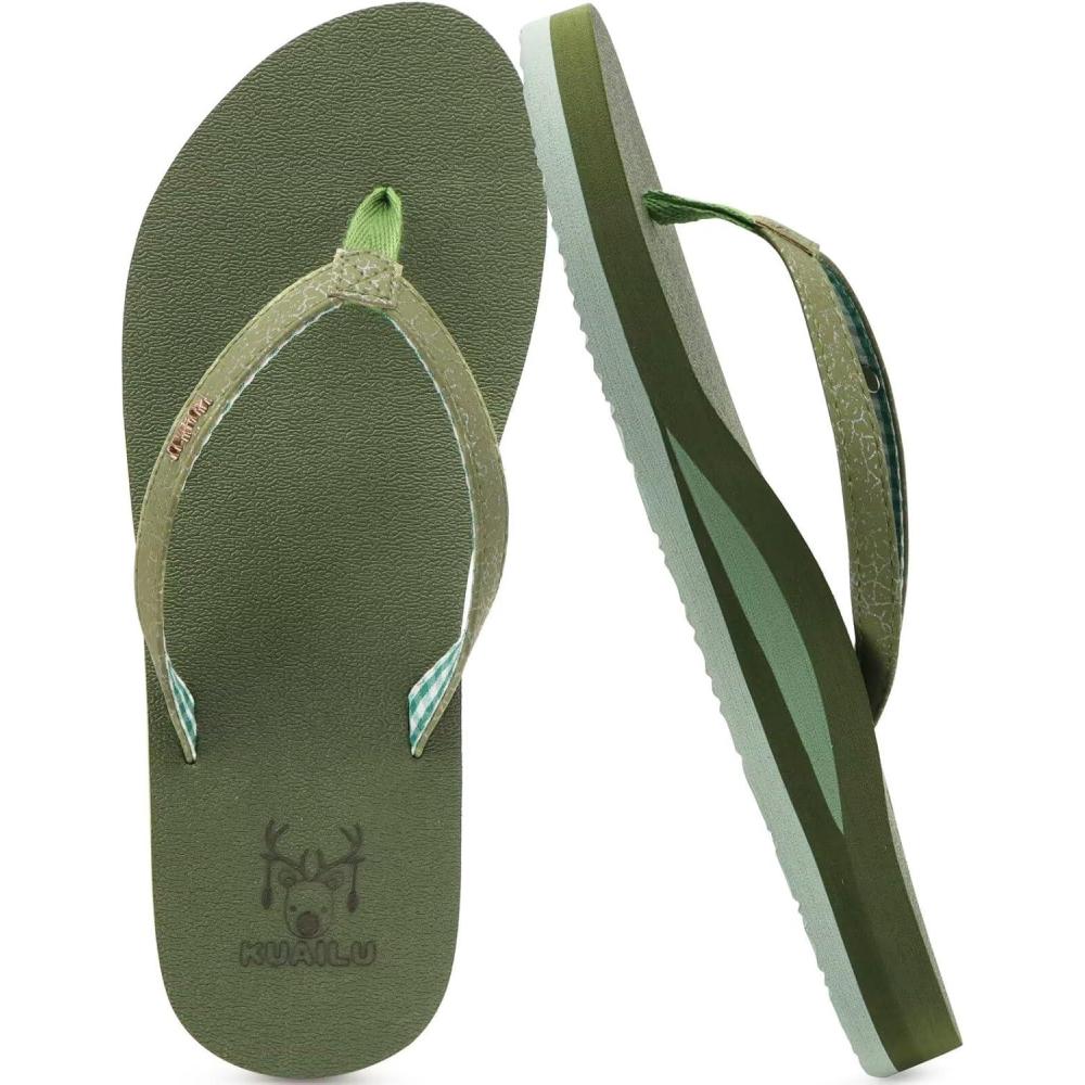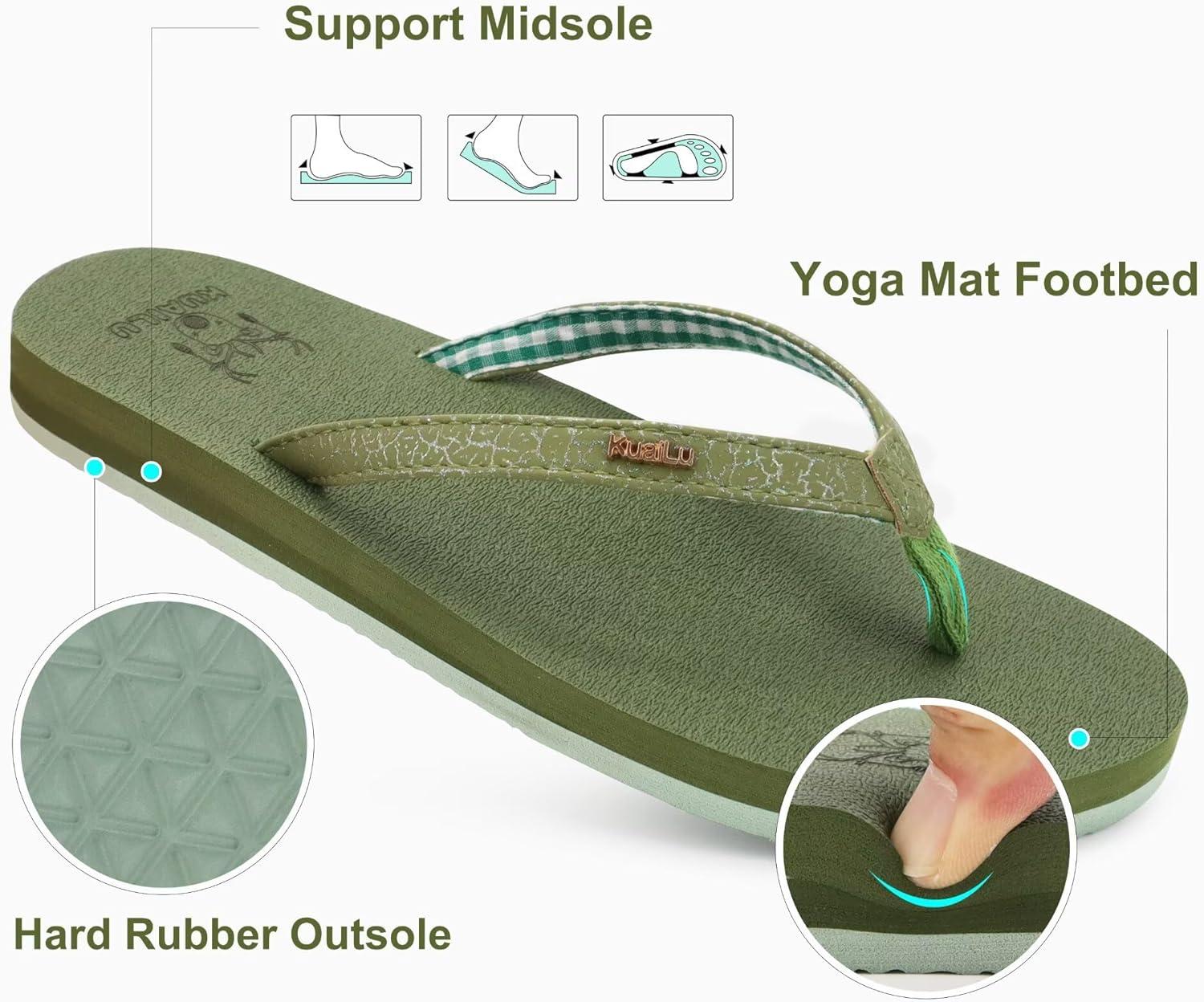 imageKuaiLu Womens Arch Support Flip Flops Comfortable Yoga Mat Slip on Summer Beach Walking Thong Cushion SandalsGreen
