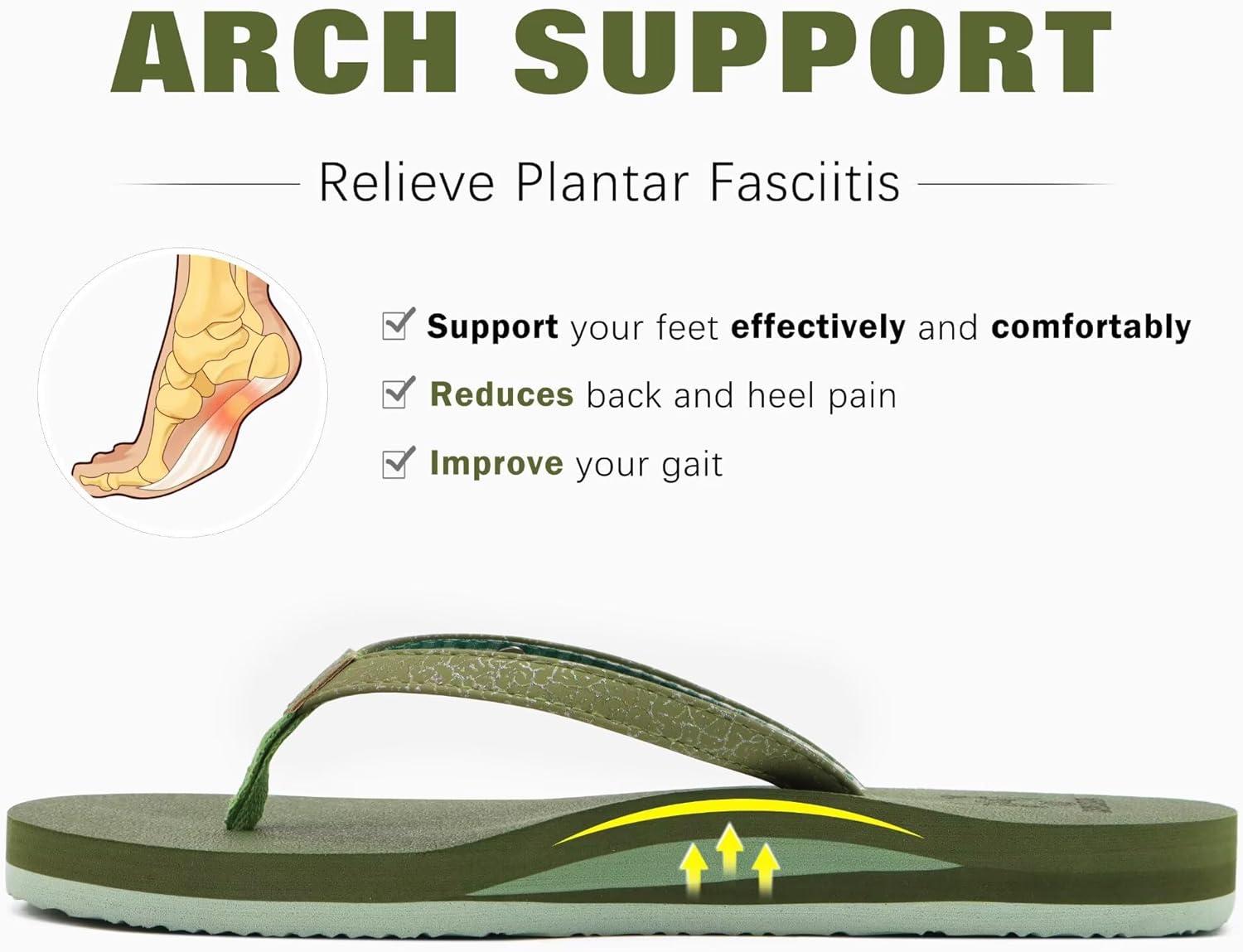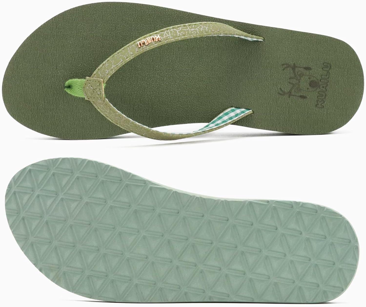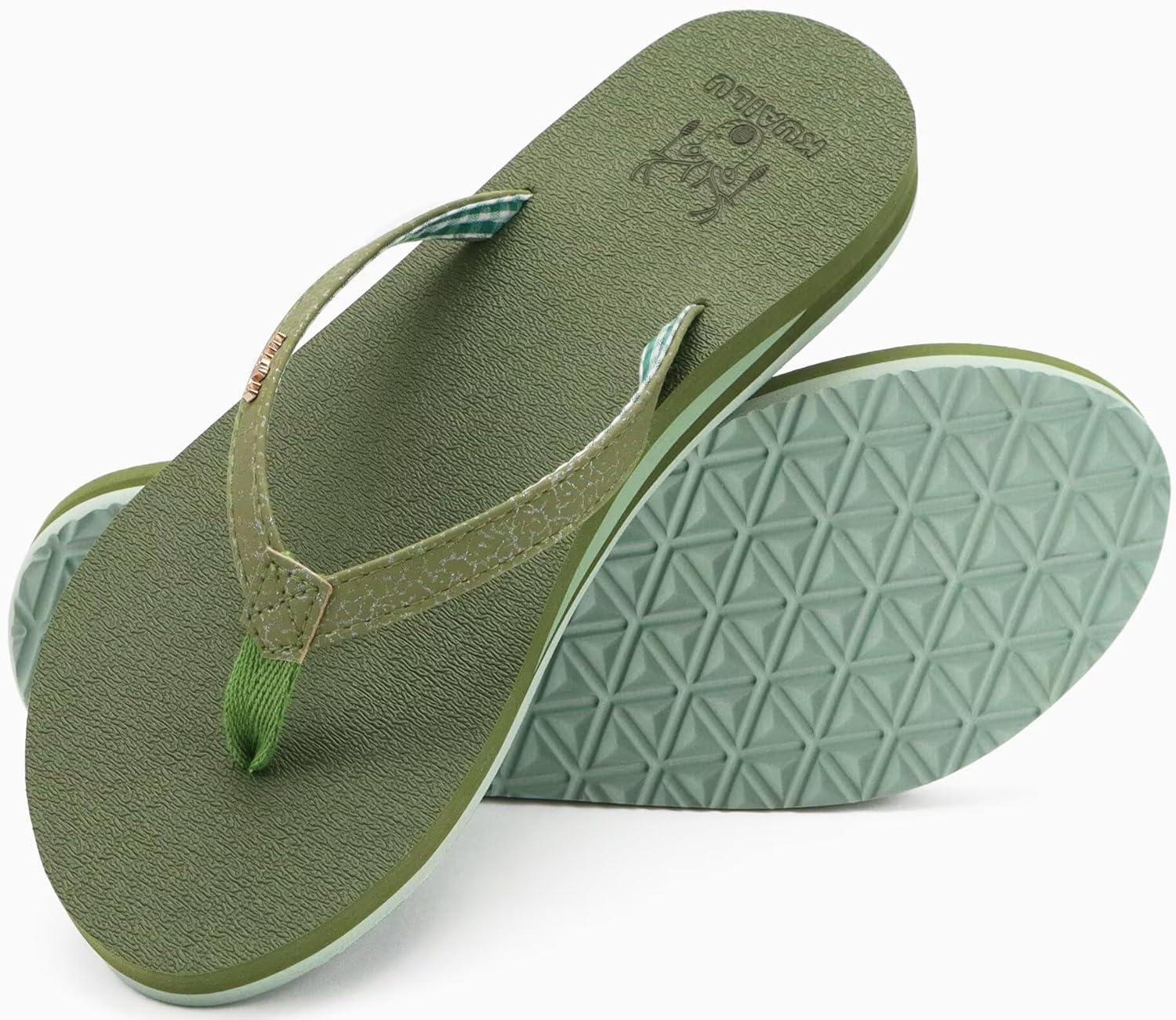 KuaiLu Womens Arch Support Flip Flops Comfortable Yoga Mat Slip on Summer Beach Walking Thong Cushion Sandals(Green)