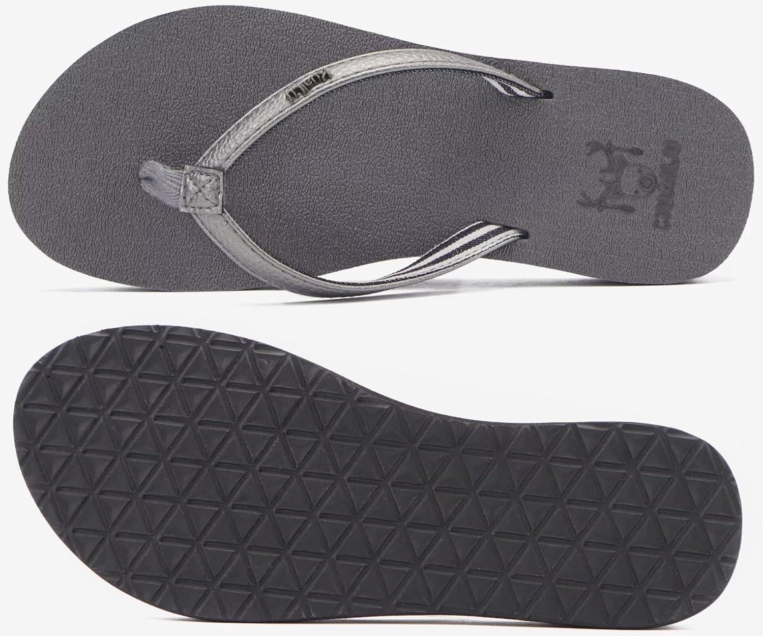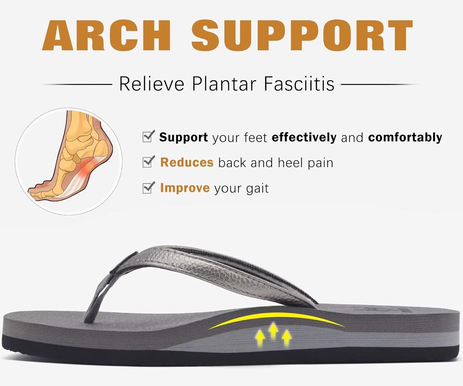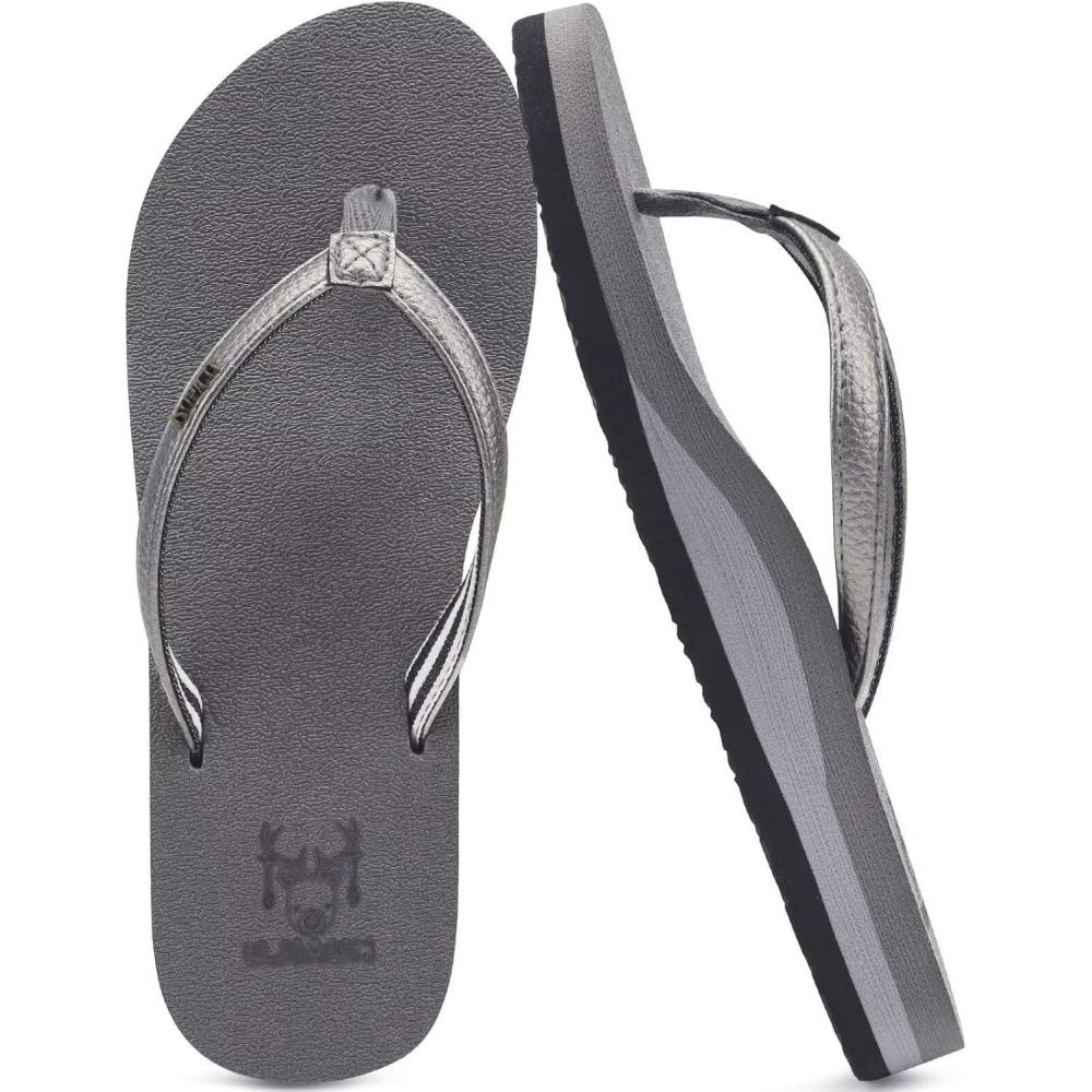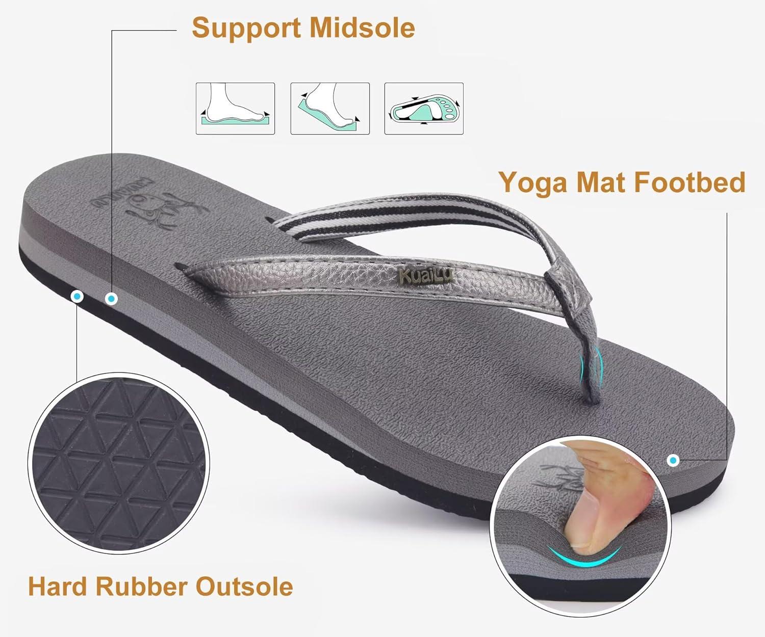 KuaiLu Womens Arch Support Flip Flops Comfortable Yoga Mat Slip on Summer Beach Walking Thong Cushion Sandals(Grey)