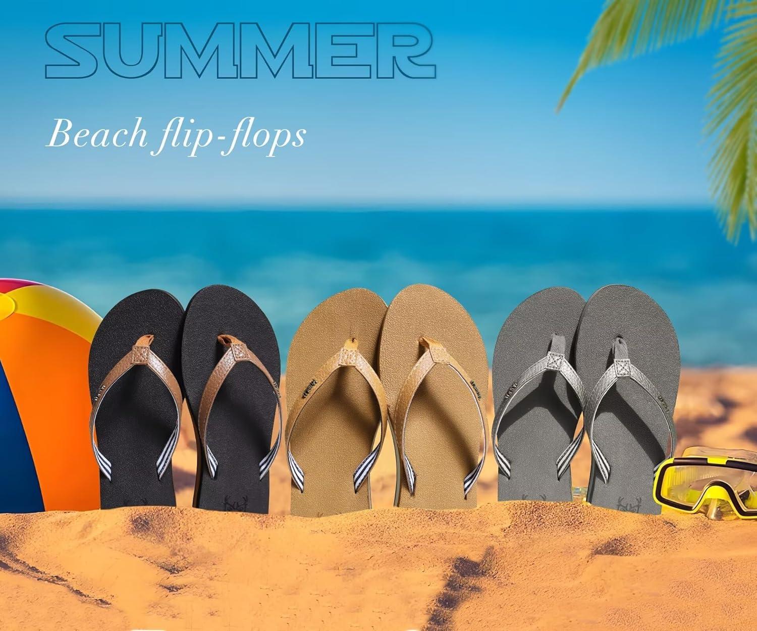 KuaiLu Womens Arch Support Flip Flops Comfortable Yoga Mat Slip on Summer Beach Walking Thong Cushion Sandals(Khaki)