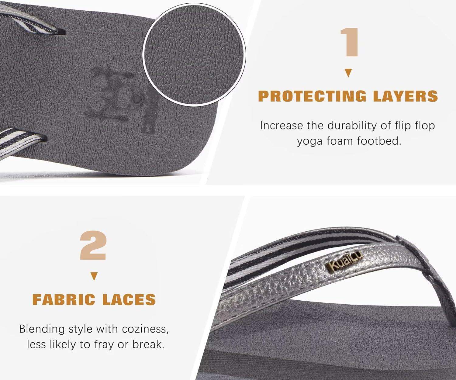 imageKuaiLu Womens Arch Support Flip Flops Comfortable Yoga Mat Slip on Summer Beach Walking Thong Cushion SandalsGrey