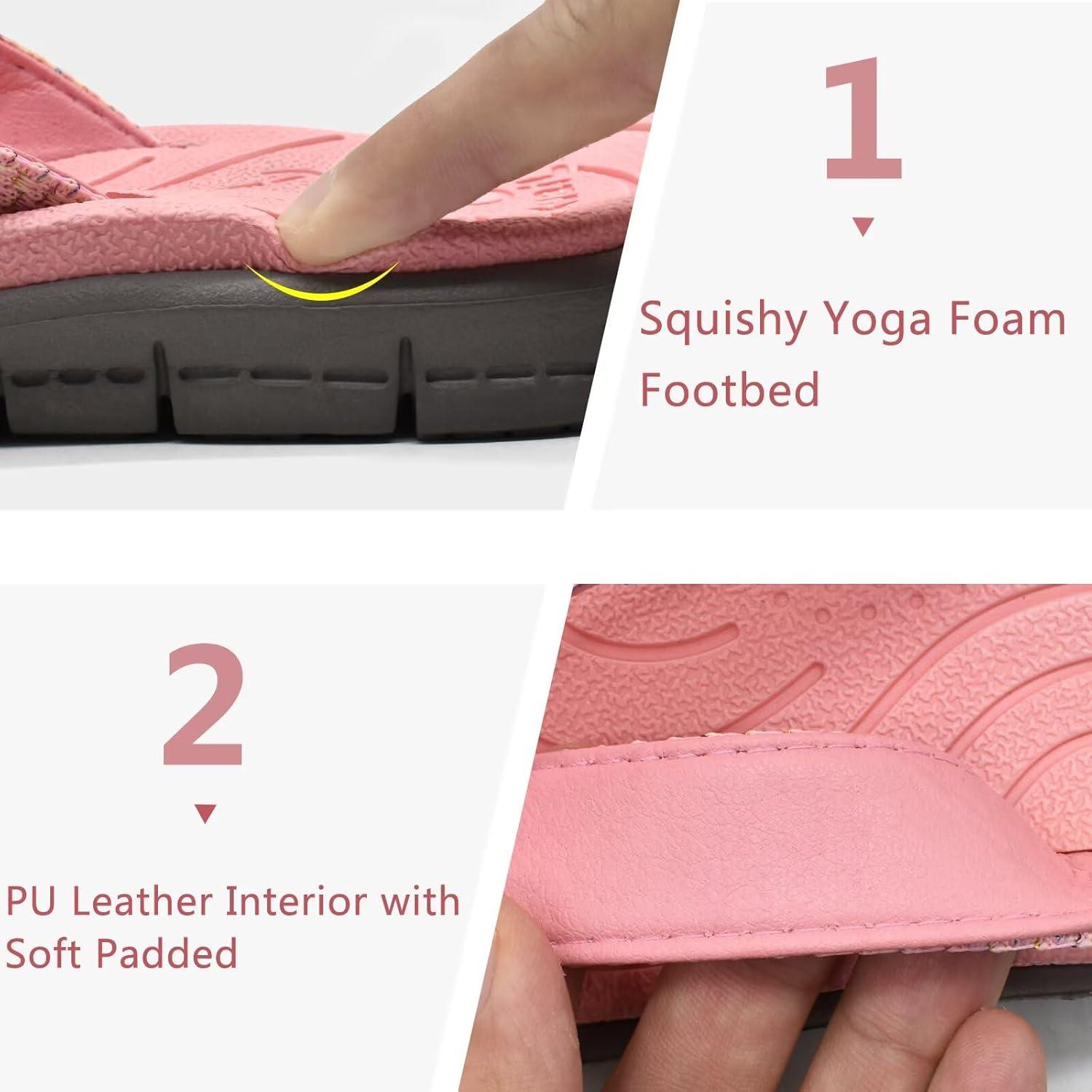 imageKuaiLu Womens Casual Flip Flops Comfortable Yoga Mat Arch Support Memory Foam Comfort Cushion Summer Beach Pool Slip on Walking Thong Sandals Ladies Orthotic Recovery Plantar Fasciitis Pink 7