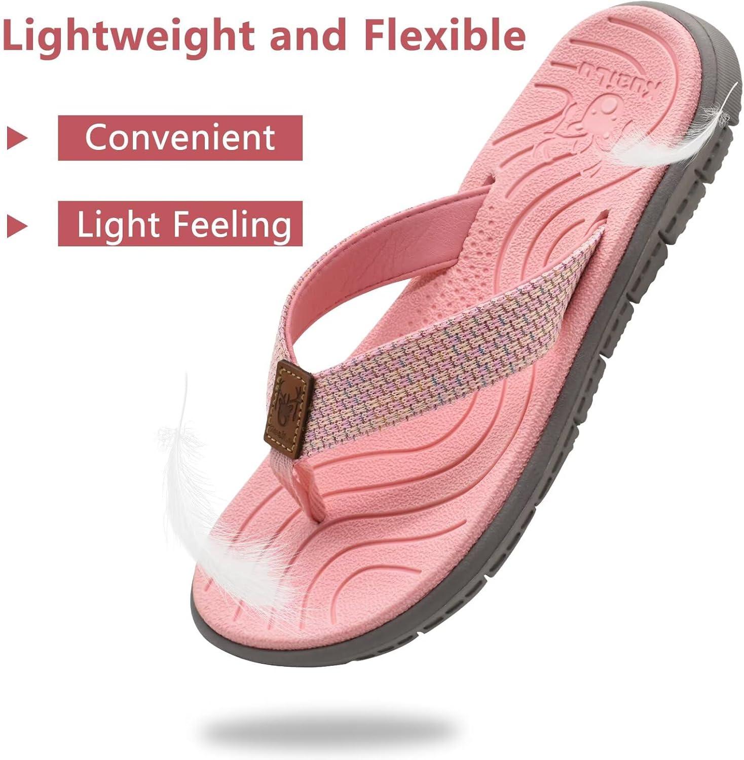 KuaiLu Womens Casual Flip Flops Comfortable Yoga Mat Arch Support Memory Foam Comfort Cushion Summer Beach Pool Slip on Walking Thong Sandals Ladies Orthotic Recovery Plantar Fasciitis Pink 7