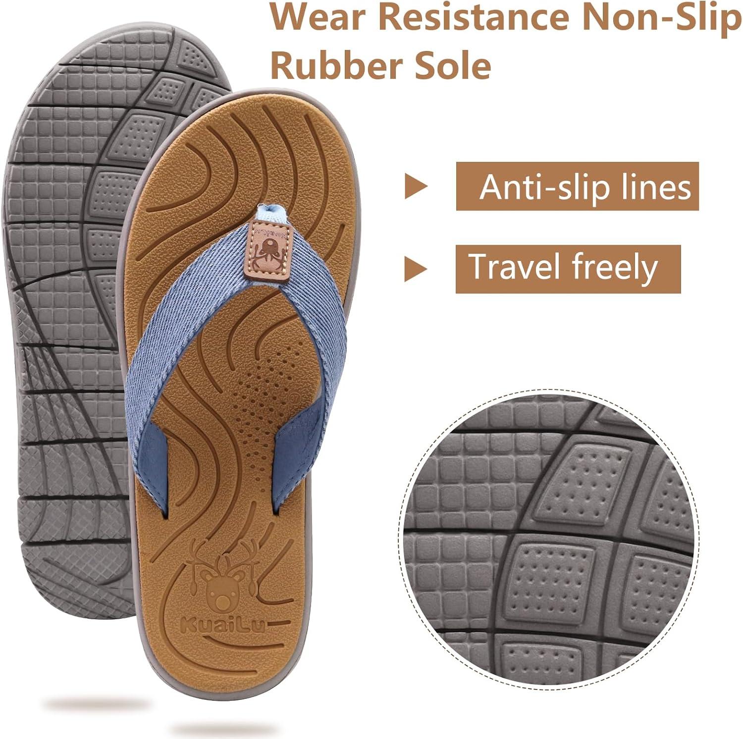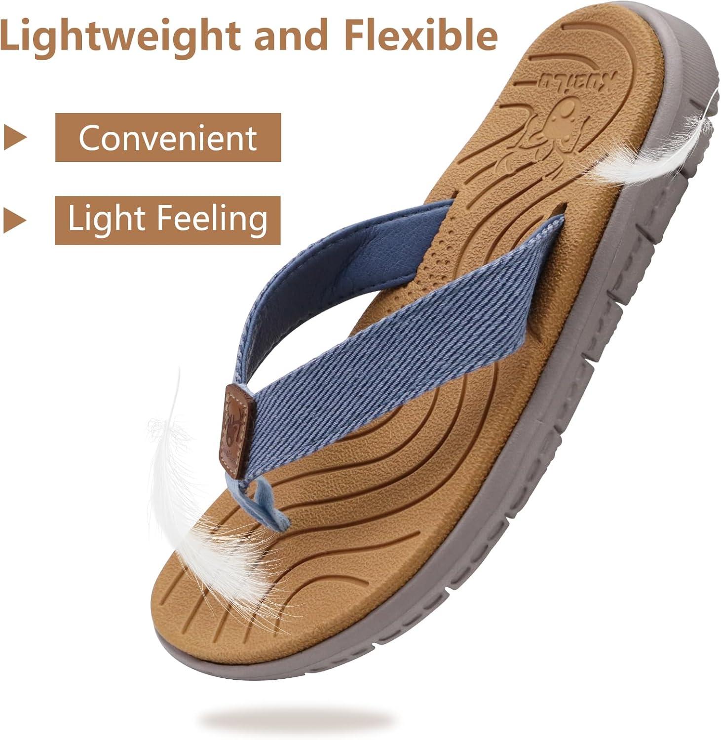 KuaiLu Womens Casual Flip Flops Yoga Mat Comfortable Cushion Arch Support Walking Thong Sandals Lightweight Non-Slip Summer Beach Slippers(Jeans Blue)