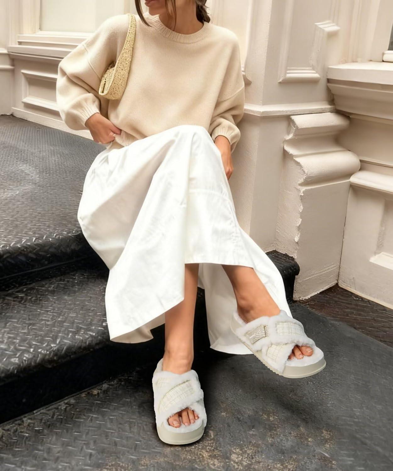 - Fuzzy cross slippers for women looks chic and gorgeous
