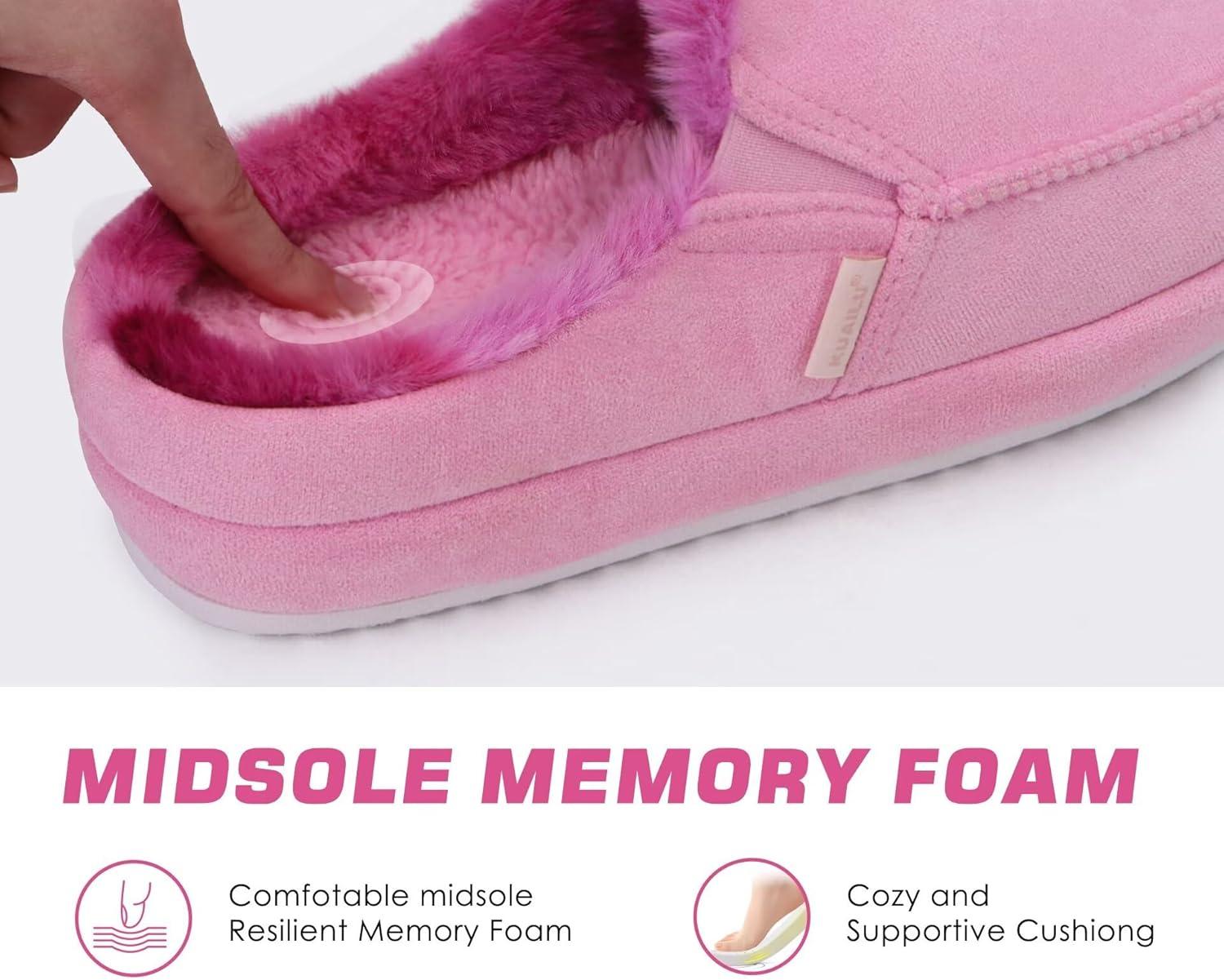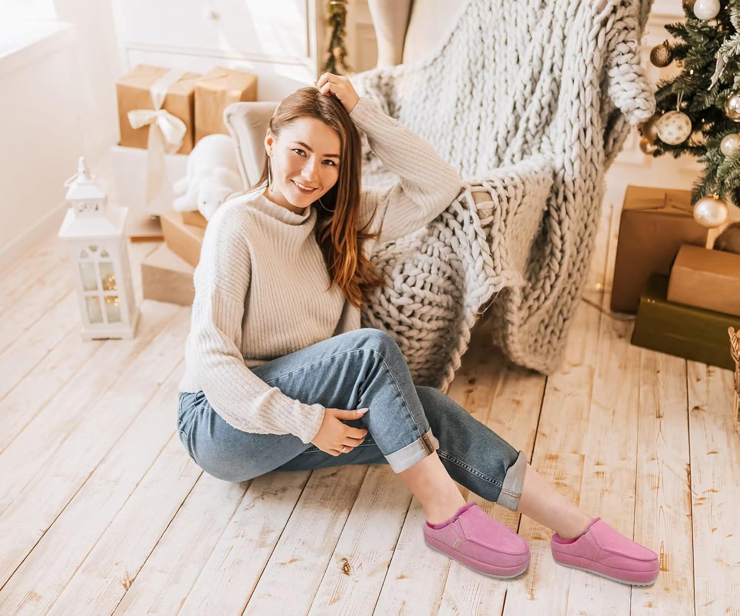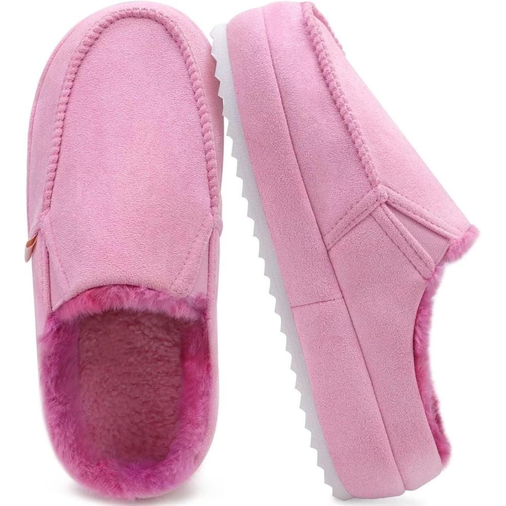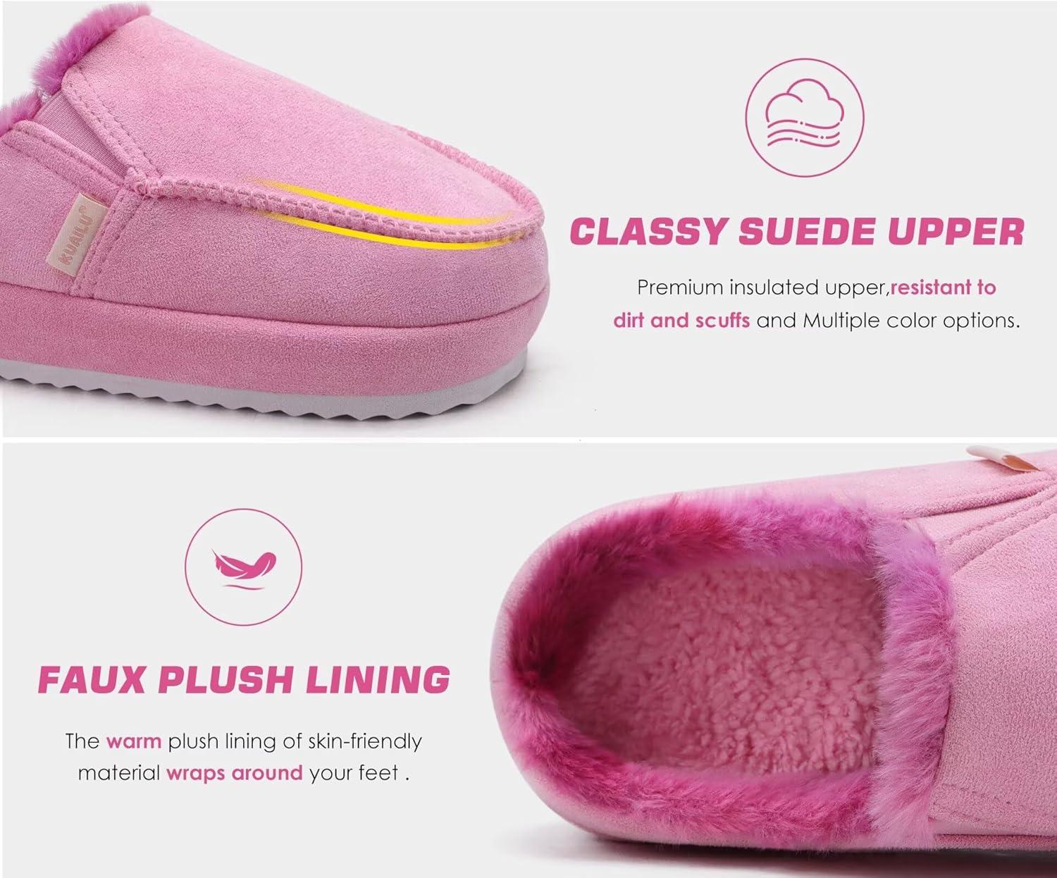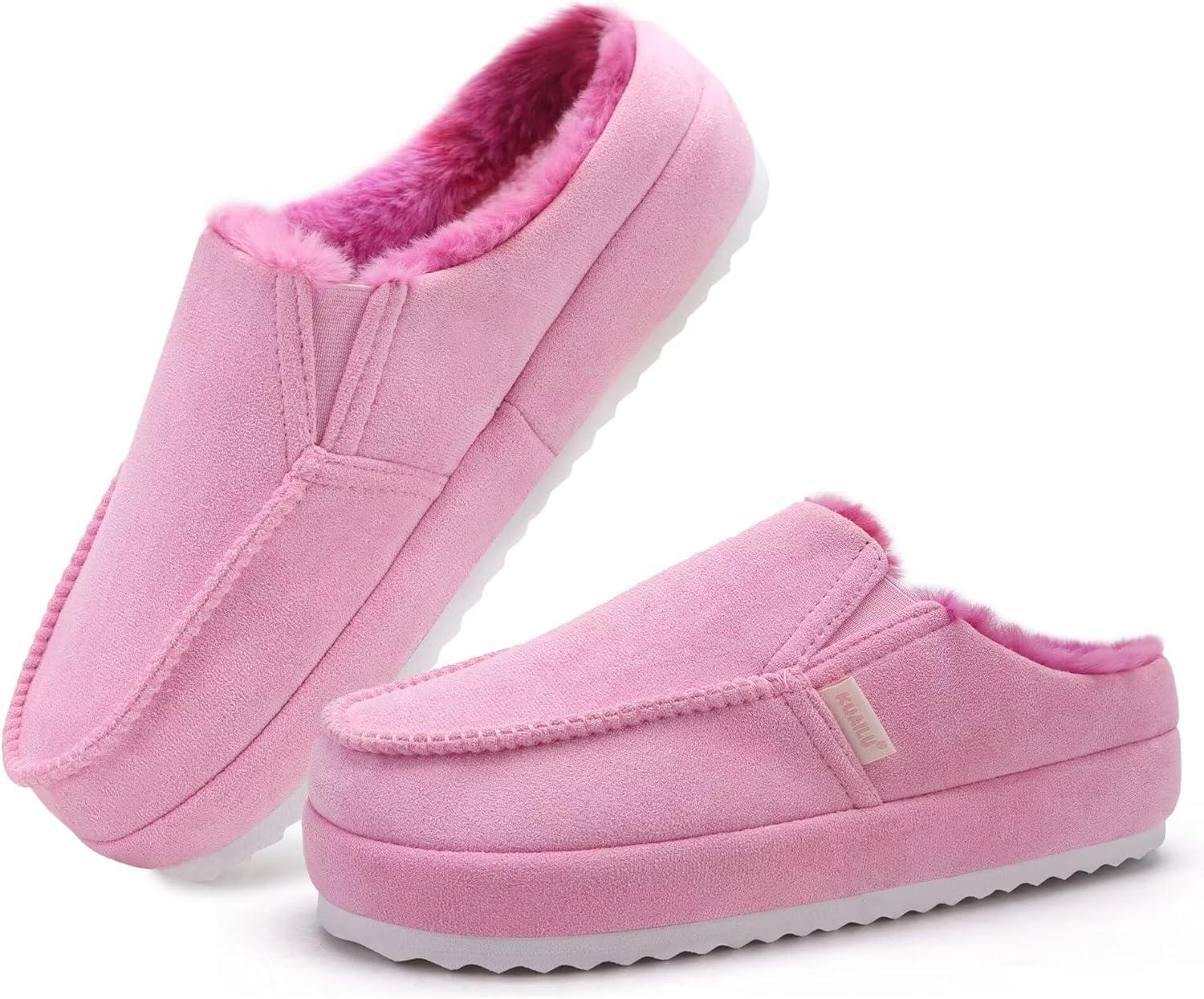 KuaiLu Womens Clog Slippers Cozy Warm Plush Lined With Arch Support Suede Faux Fur House ladies Bedroom Slippers Comfortable Memory Foam Slip-on Womans Home Shoes(Pink)