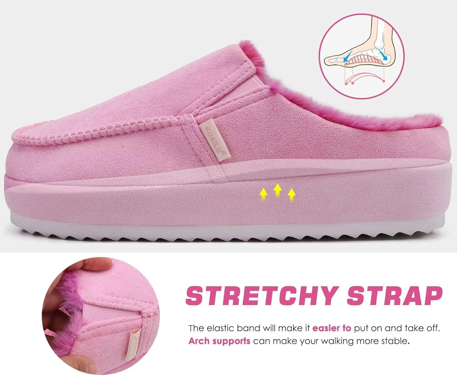 imageKuaiLu Womens Clog Slippers Cozy Warm Plush Lined With Arch Support Suede Faux Fur House ladies Bedroom Slippers Comfortable Memory Foam Slipon Womans Home ShoesPink