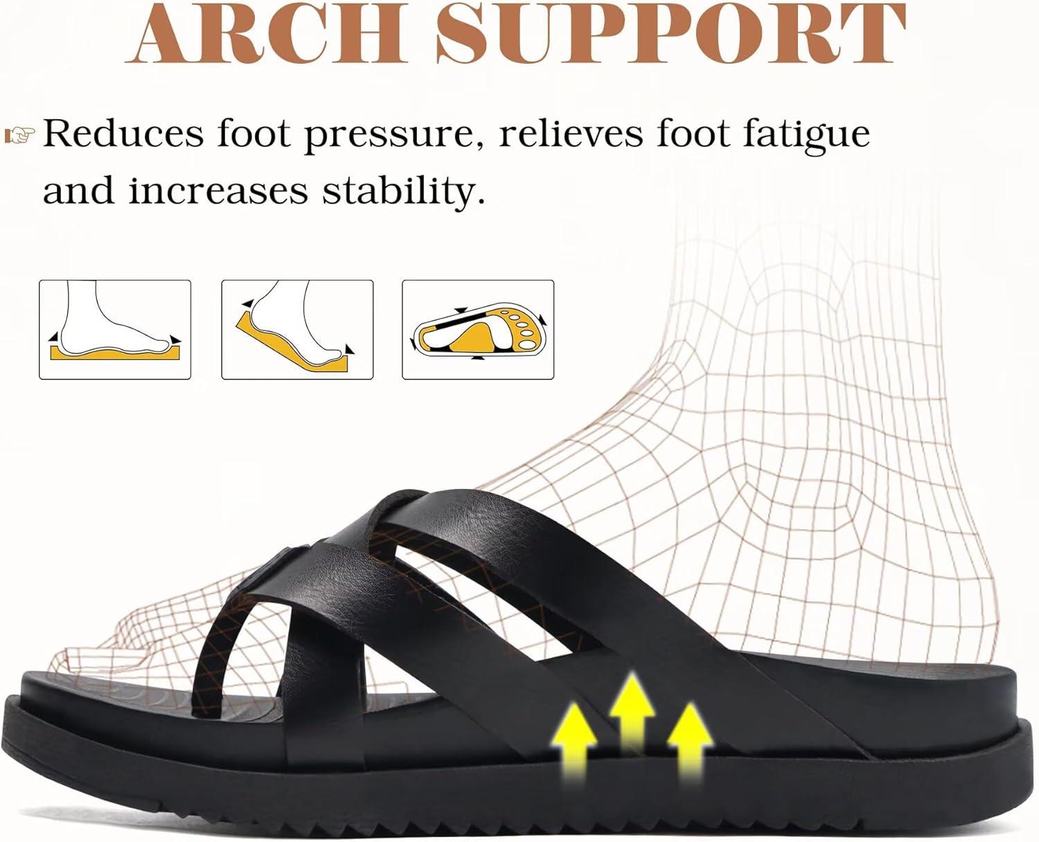 imageKuaiLu Womens Dressy Orthotic Flip Flops Trendy Comfortable Cushion Recovery Walking Criss Cross Thong Sandals Lightweight Yoga Foam Summer Slides with Plantar Fasciitis Arch SupportBlack