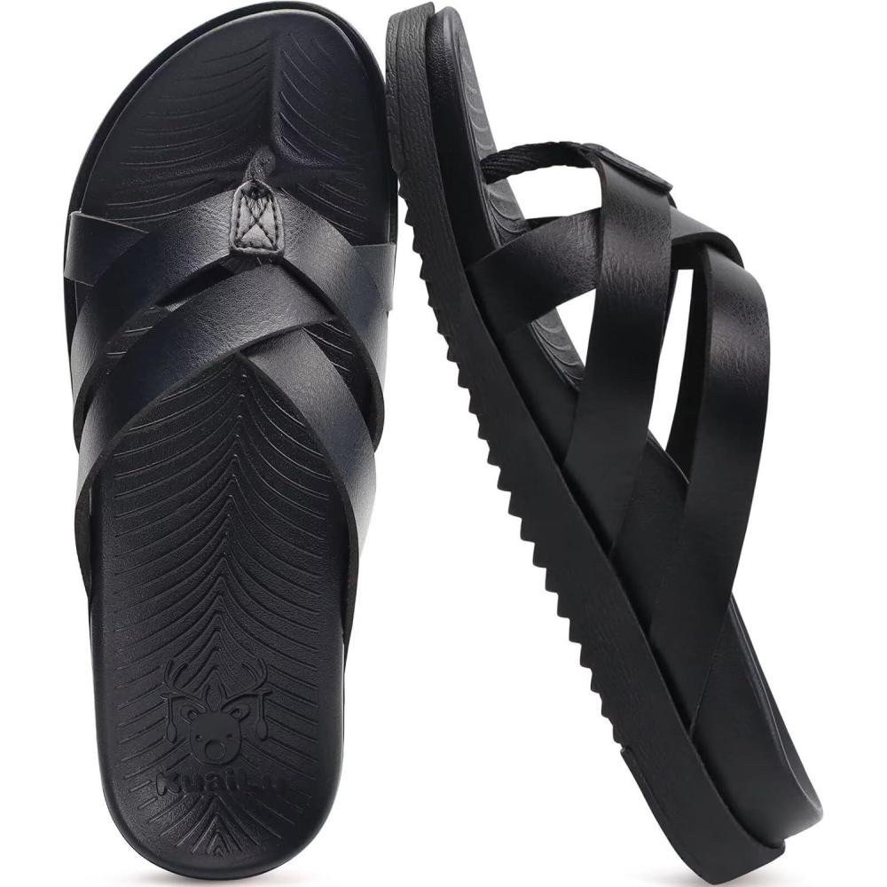 KuaiLu Womens Dressy Orthotic Flip Flops Trendy Comfortable Cushion Recovery Walking Criss Cross Thong Sandals Lightweight Yoga Foam Summer Slides with Plantar Fasciitis Arch Support(Black)