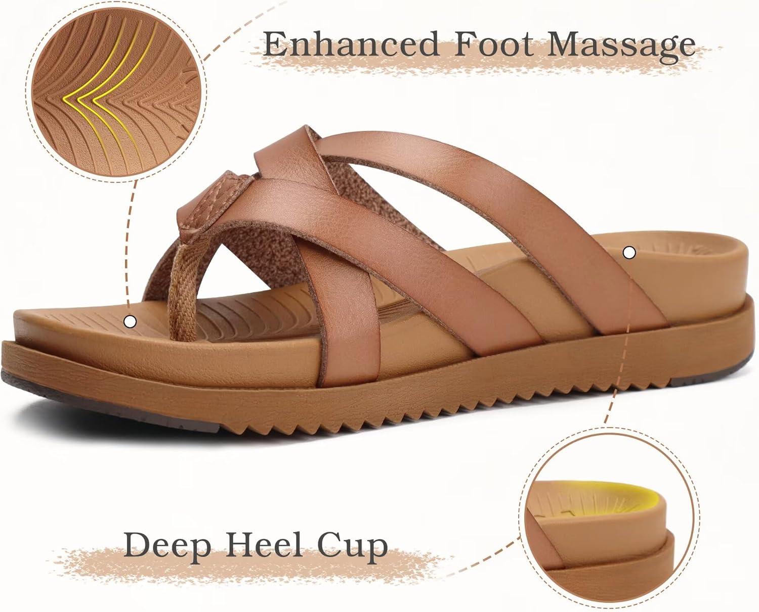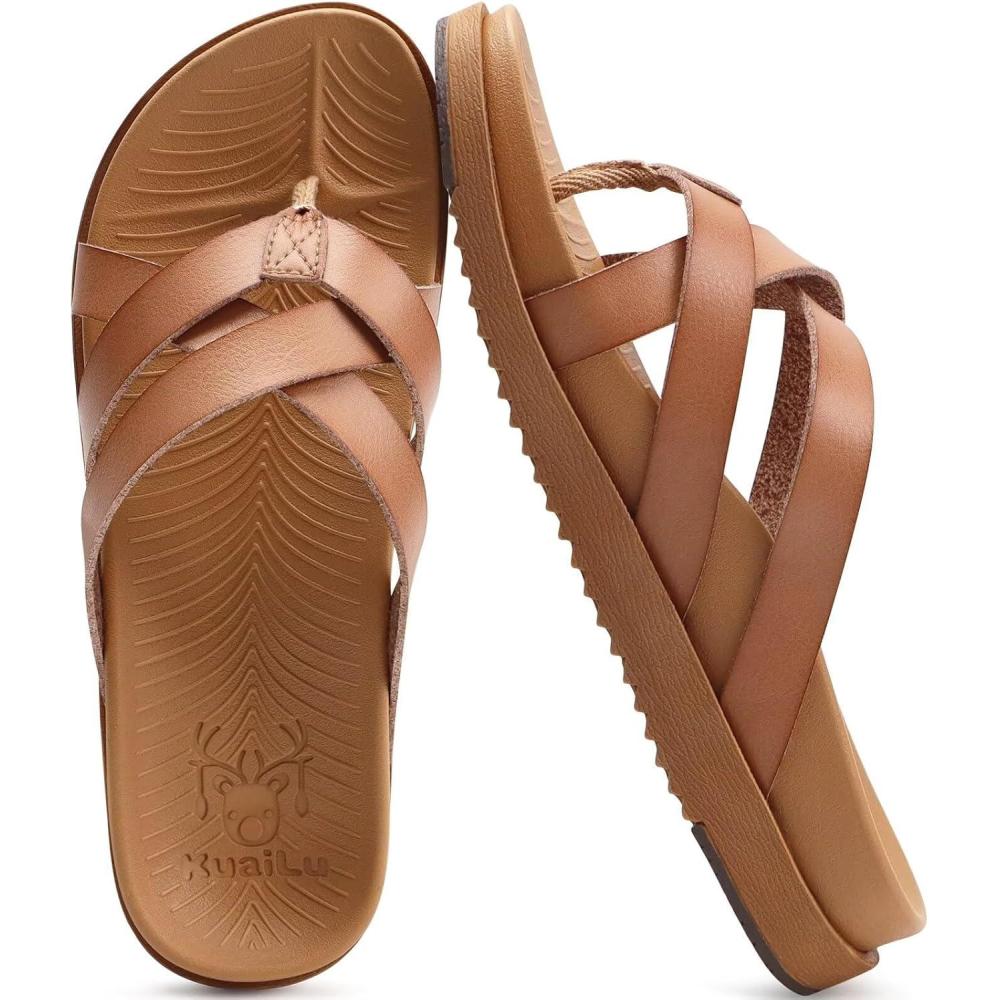 KuaiLu Womens Dressy Orthotic Flip Flops Trendy Comfortable Cushion Recovery Walking Criss Cross Thong Sandals Lightweight Yoga Foam Summer Slides with Plantar Fasciitis Arch Support(Brown)