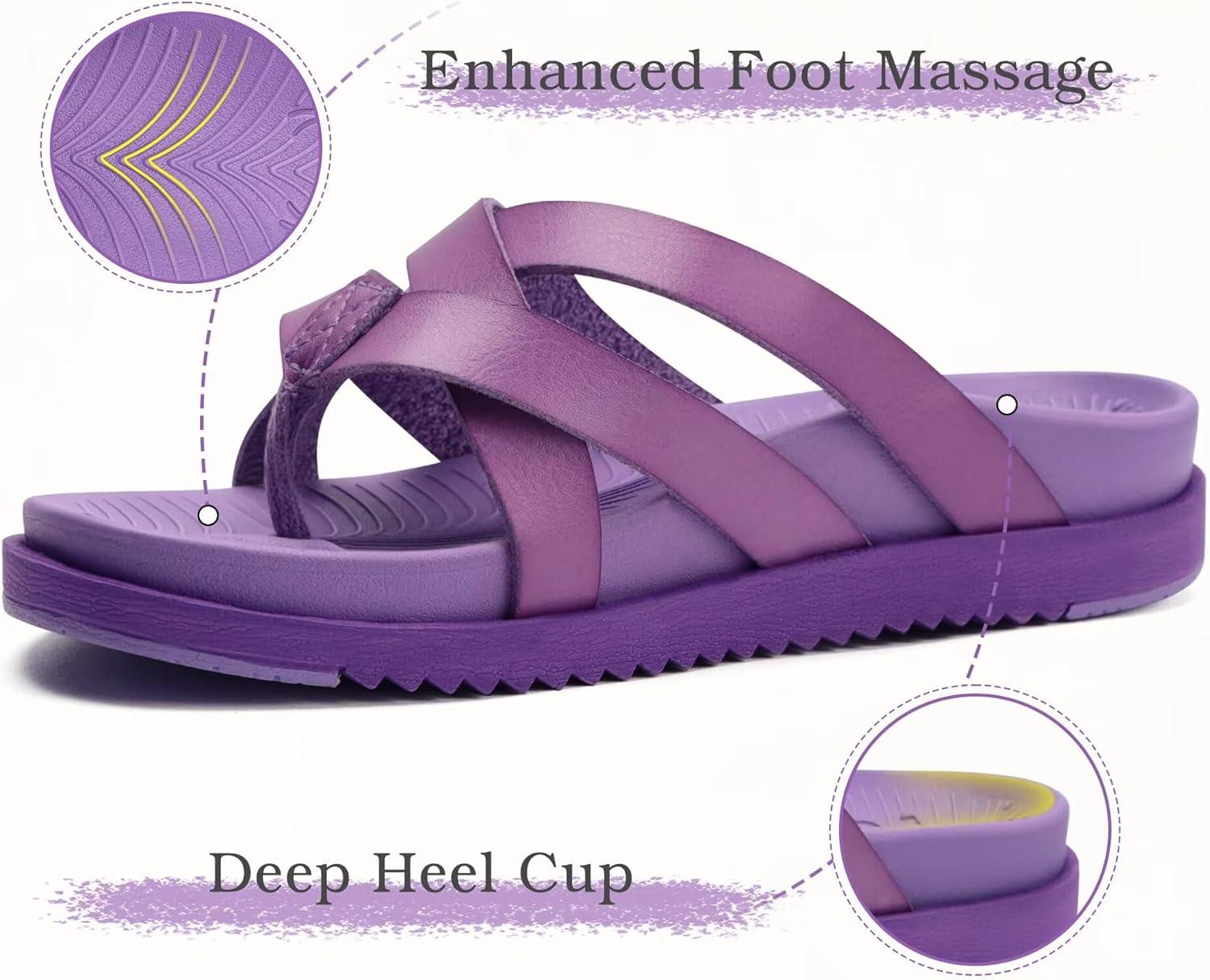 KuaiLu Womens Dressy Orthotic Flip Flops Trendy Comfortable Cushion Recovery Walking Criss Cross Thong Sandals Lightweight Yoga Foam Summer Slides with Plantar Fasciitis Arch Support(Purple)