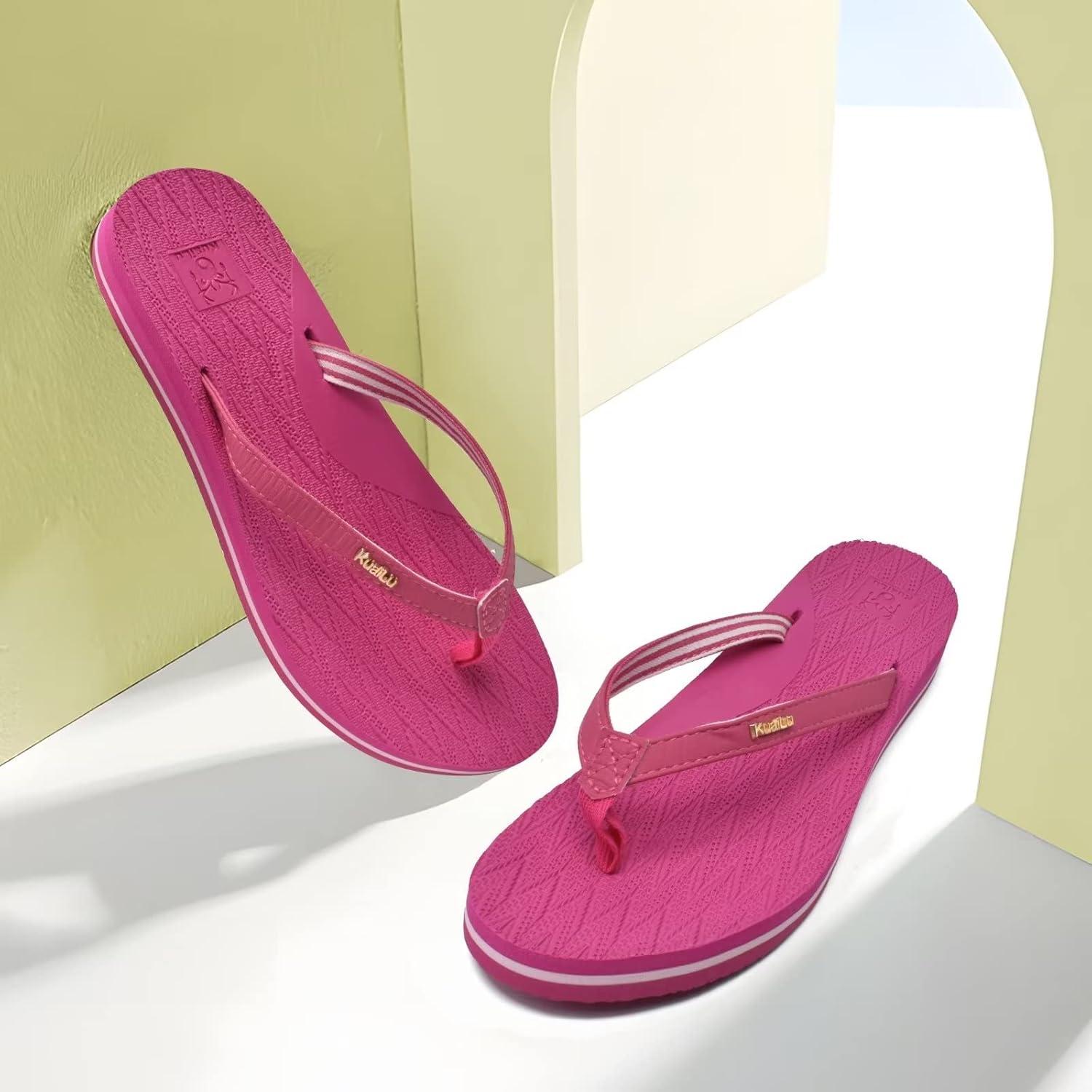 KuaiLu Womens Fashion Flip Flops Ladies Lightweight Summer Beach Yoga Mat Thong Sandals with Comfortable Arch Support(Bright Pink)