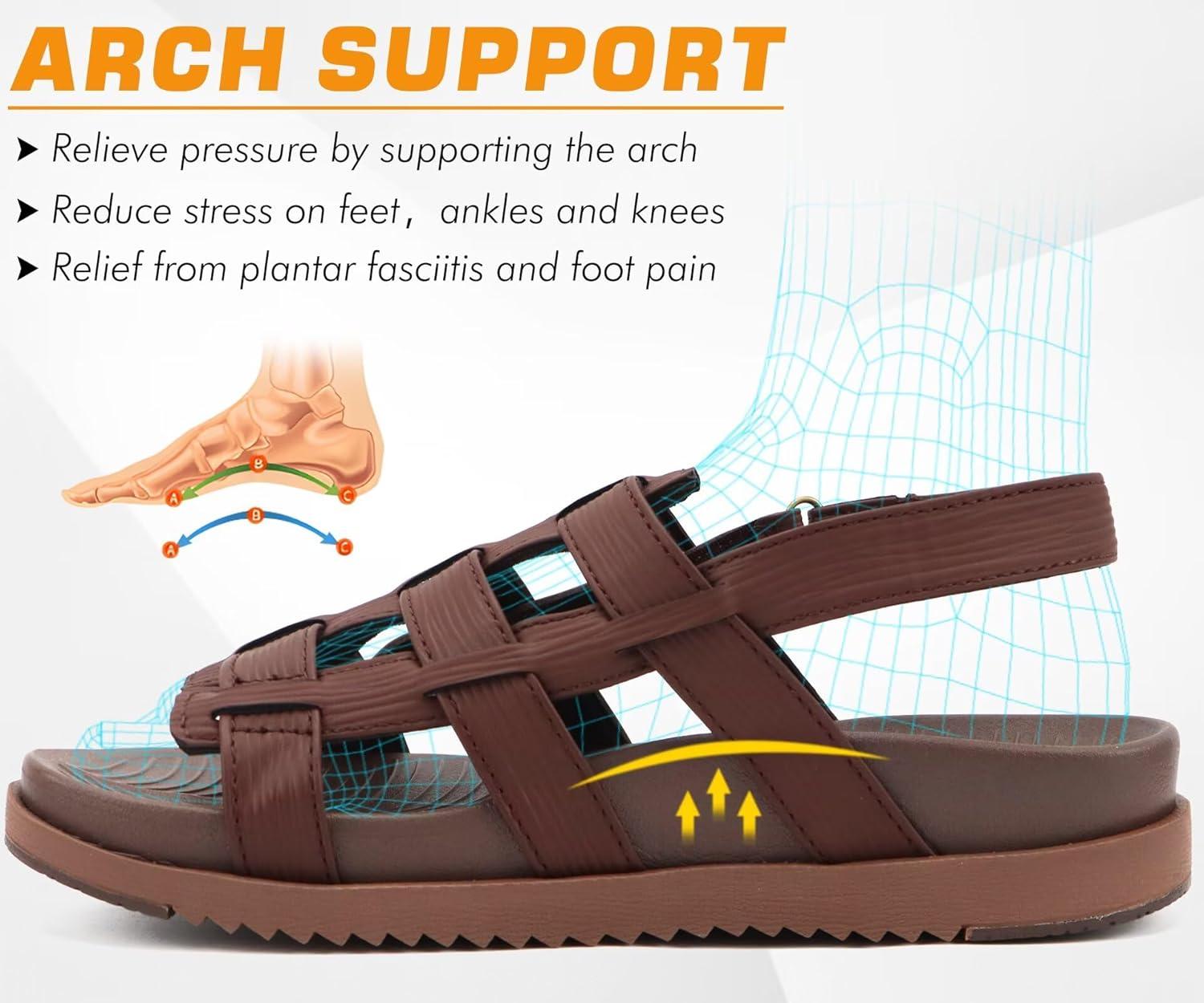 KuaiLu Womens Fashion Orthopedic Walking Sandals for Women 2025 Arch Support Sandles Comfort Plantar Fasciitis Recovery Cushion Summer Travel Outdoor Hiking Open Toe Water Shoes Woman Size US5-11(Brown)