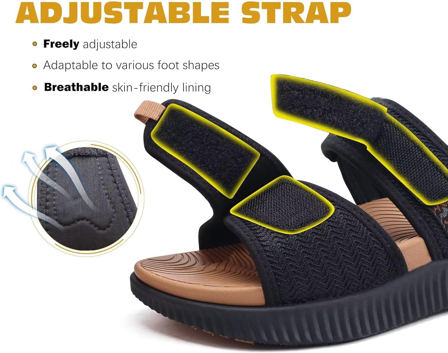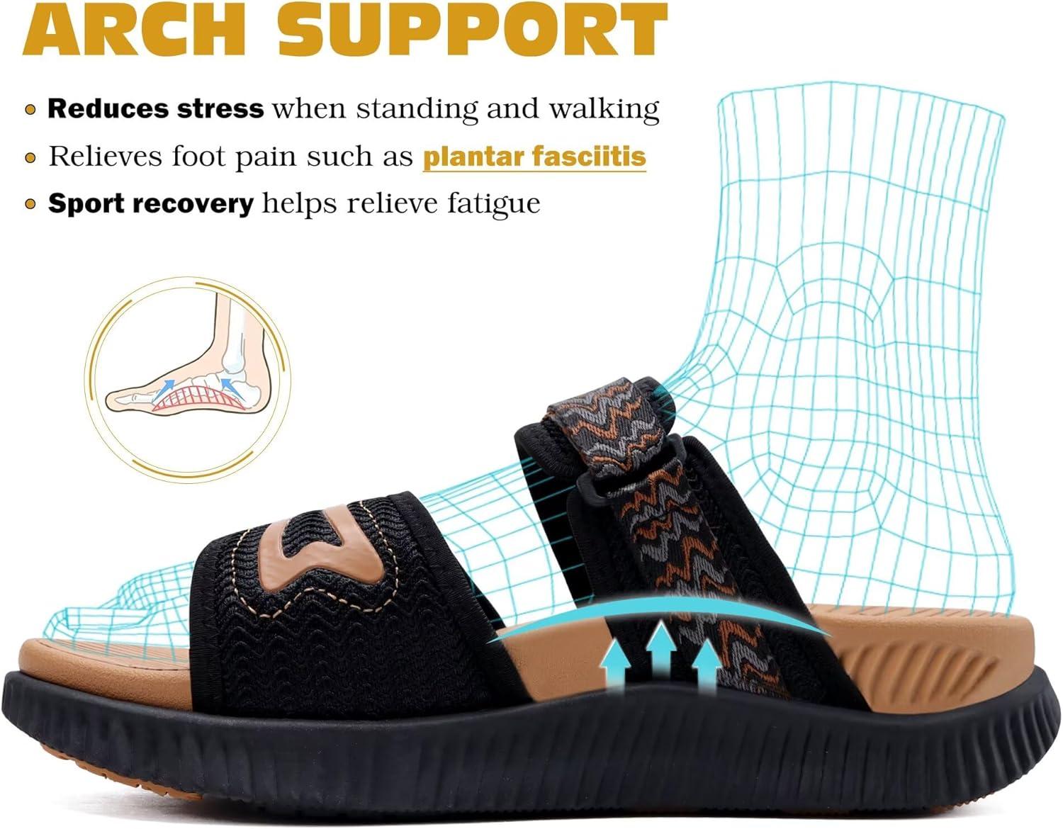 KuaiLu Womens Fashion Orthotic Slides Ladies Athletic Thick Cushion Recovery Sandals Adjustable Strap Slip On Walking Sandles With Comfortable Plantar Fasciitis Arch Support(Black Khaki)