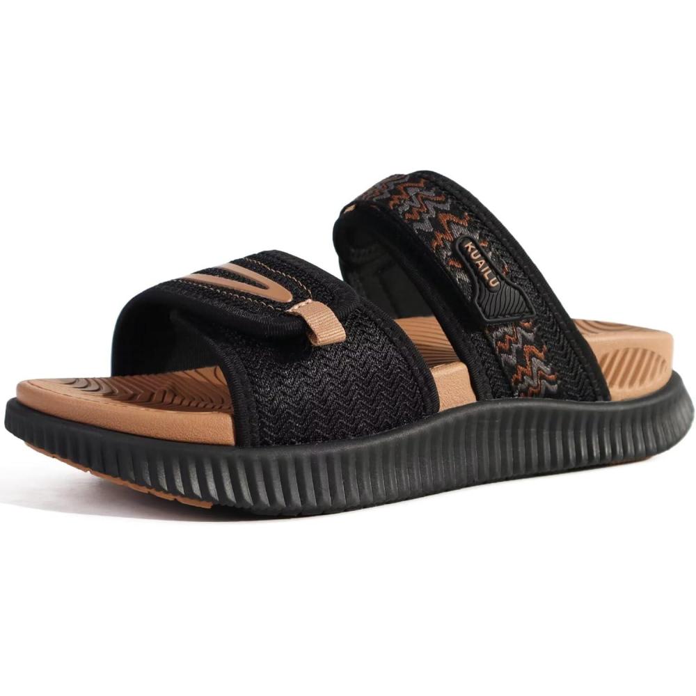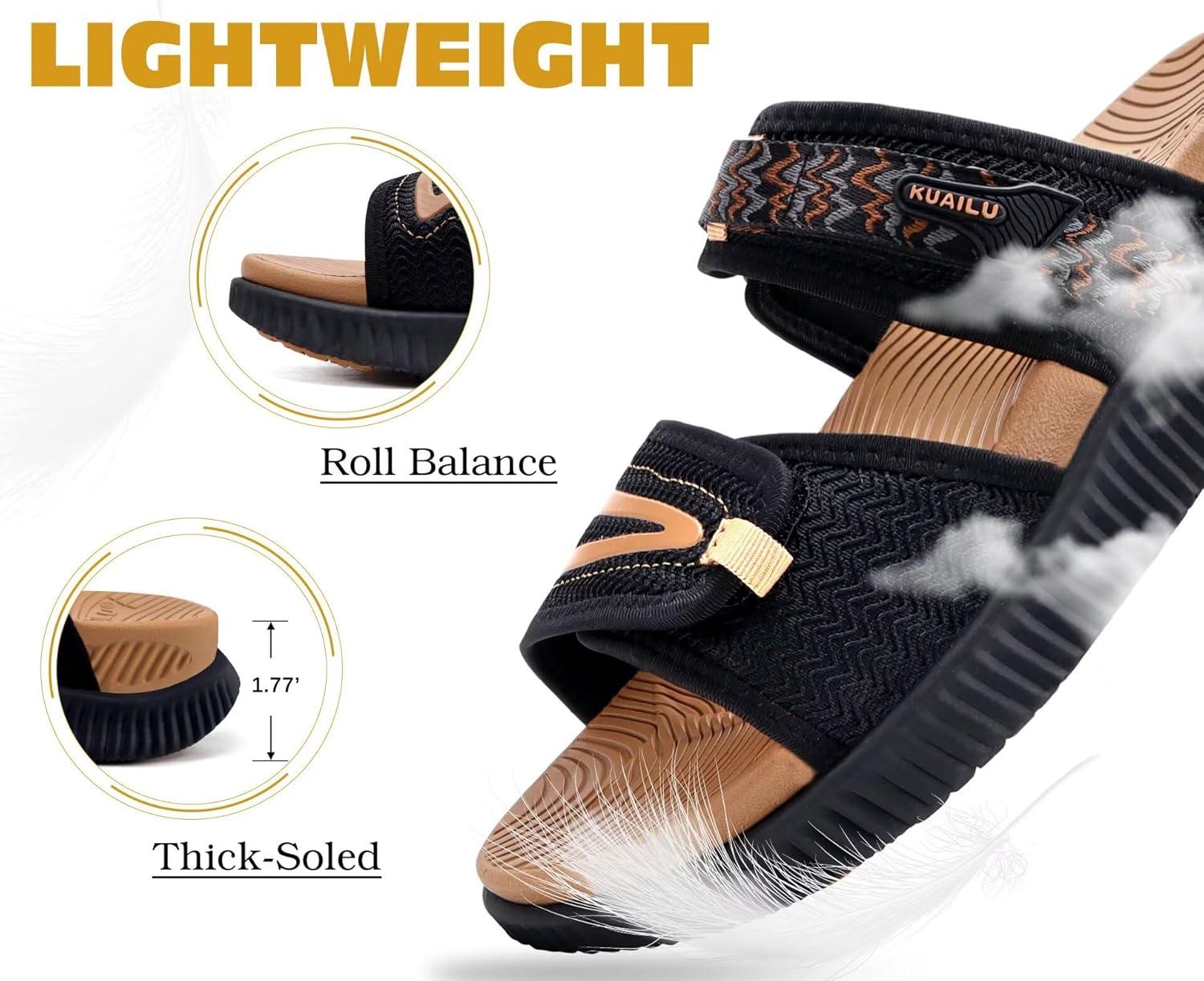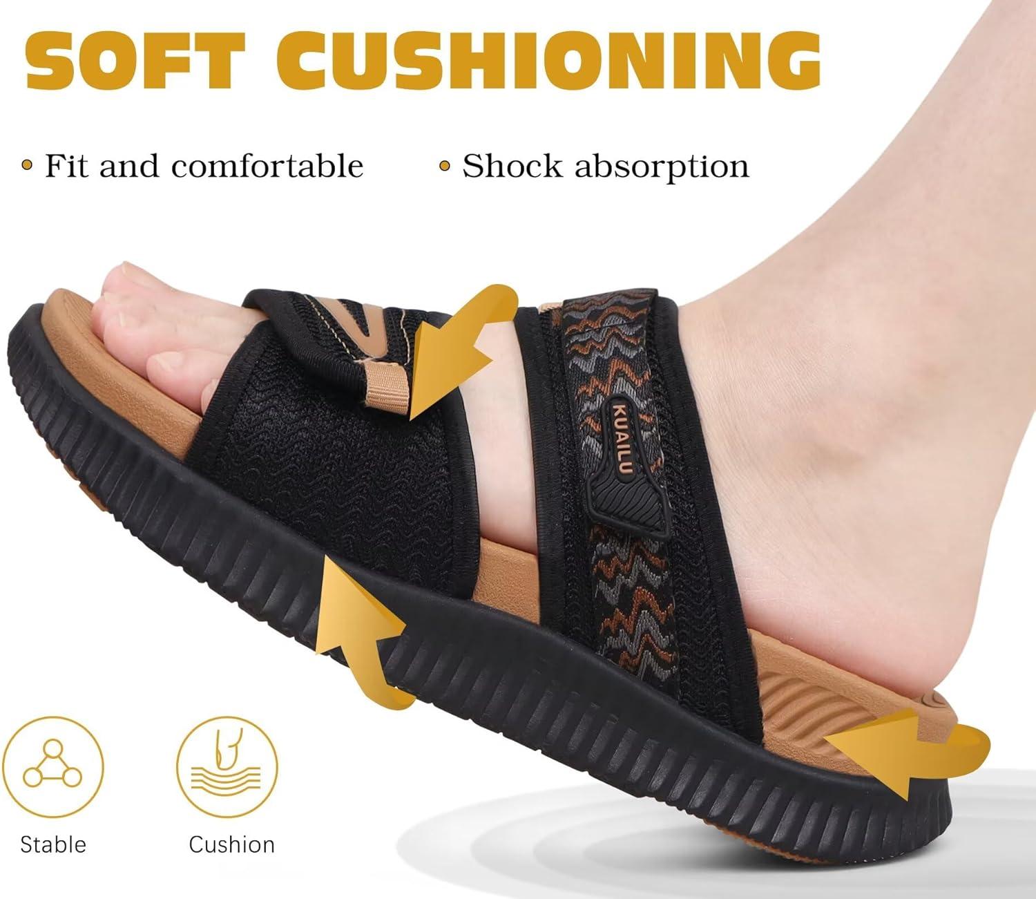 imageKuaiLu Womens Fashion Orthotic Slides Ladies Athletic Thick Cushion Recovery Sandals Adjustable Strap Slip On Walking Sandles With Comfortable Plantar Fasciitis Arch SupportBlack Khaki