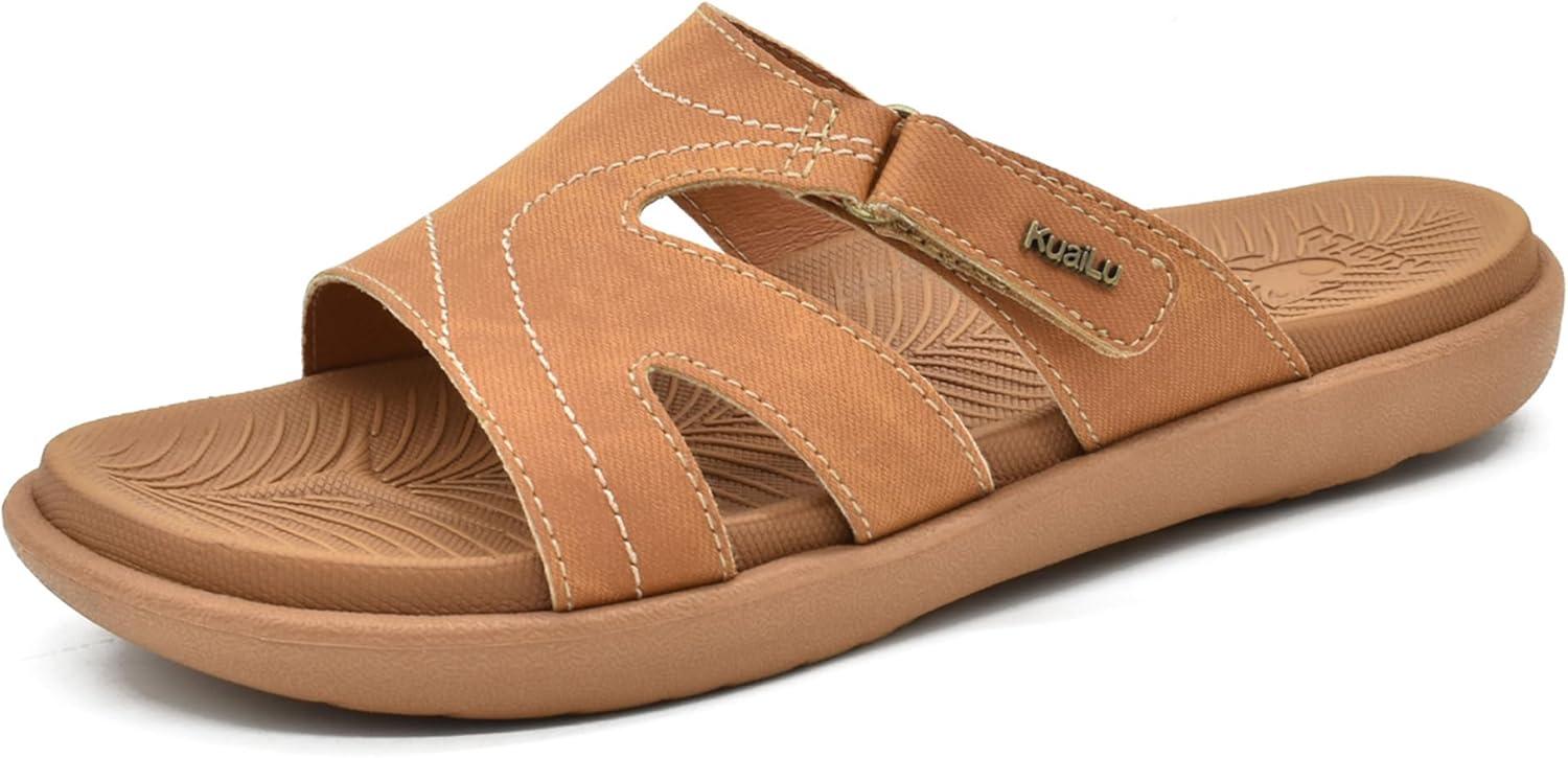 imageKuaiLu Womens Fashion Orthotic Slides Ladies Lightweight Athletic Yoga Mat Sandals Slip On Thick Cushion Slippers Sandals With Comfortable Plantar Fasciitis Arch SupportAllkhaki