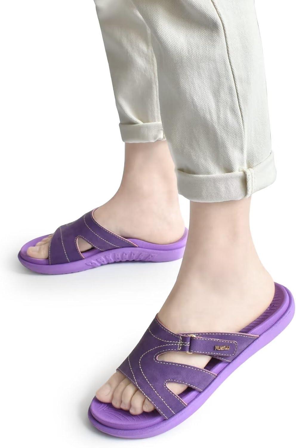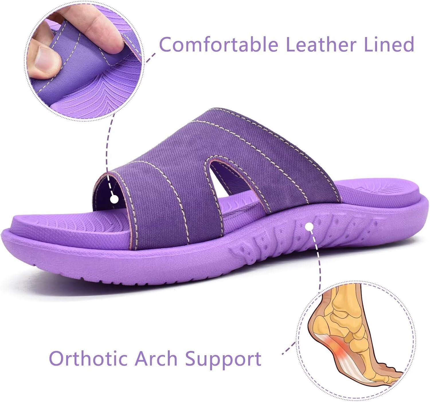 KuaiLu Womens Fashion Orthotic Slides Ladies Lightweight Athletic Yoga Mat Sandals Slip On Thick Cushion Slippers Sandals With Comfortable Plantar Fasciitis Arch Support(Purple)