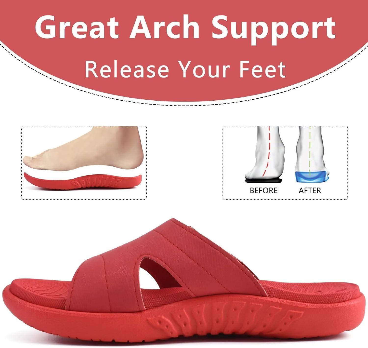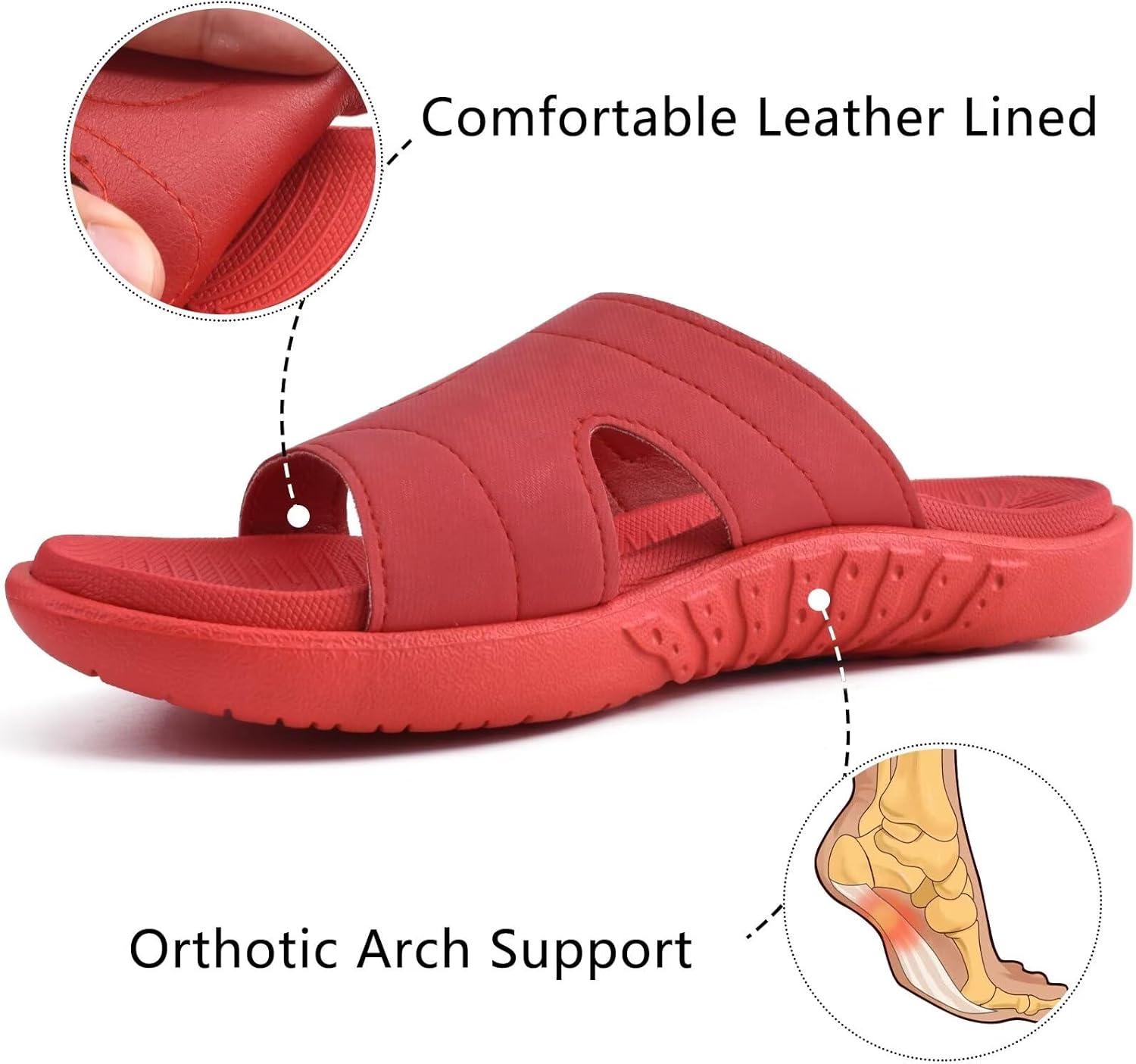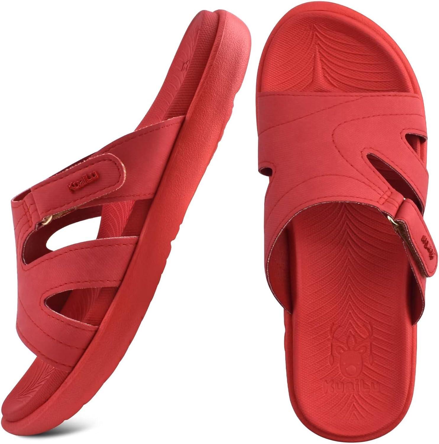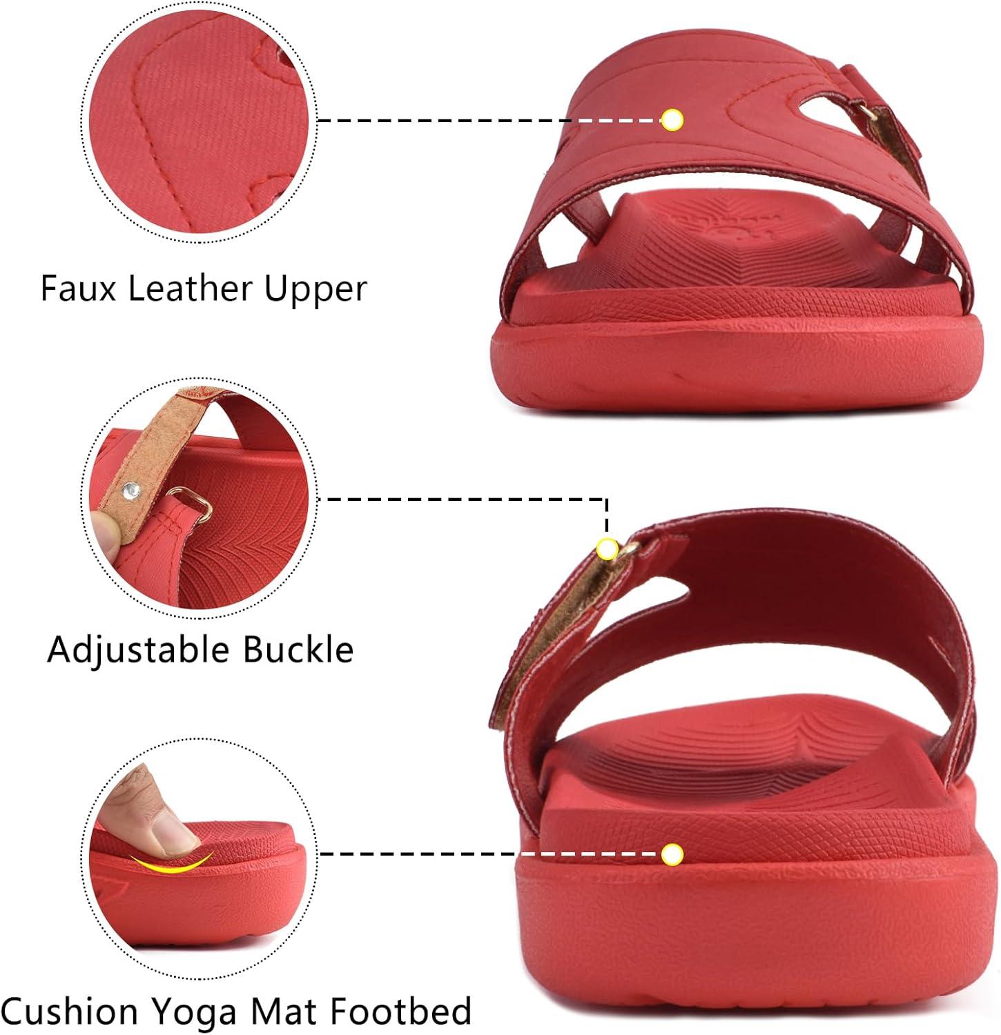 KuaiLu Womens Fashion Orthotic Slides Ladies Lightweight Athletic Yoga Mat Sandals Slip On Thick Cushion Slippers Sandals With Comfortable Plantar Fasciitis Arch Support(Red)