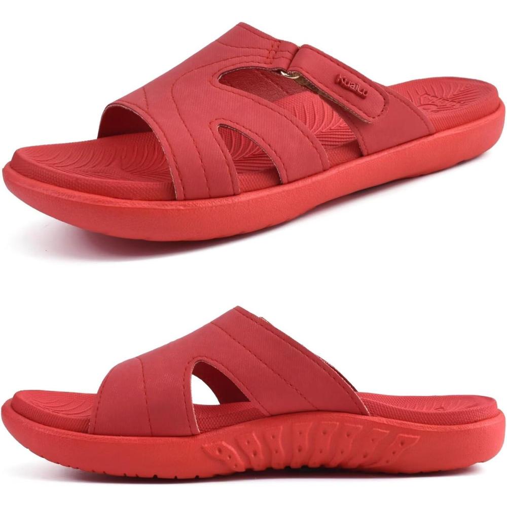 Get the KuaiLu Womens Fashion Orthotic Slides Ladies Lightweight Athletic Yoga Mat Sandals Slip On Thick Cushion Slippers Sandals With Comfortable Plantar Fasciitis Arch Support(Red) you’ve been eyeing at a discounted price during our seasonal sale event.