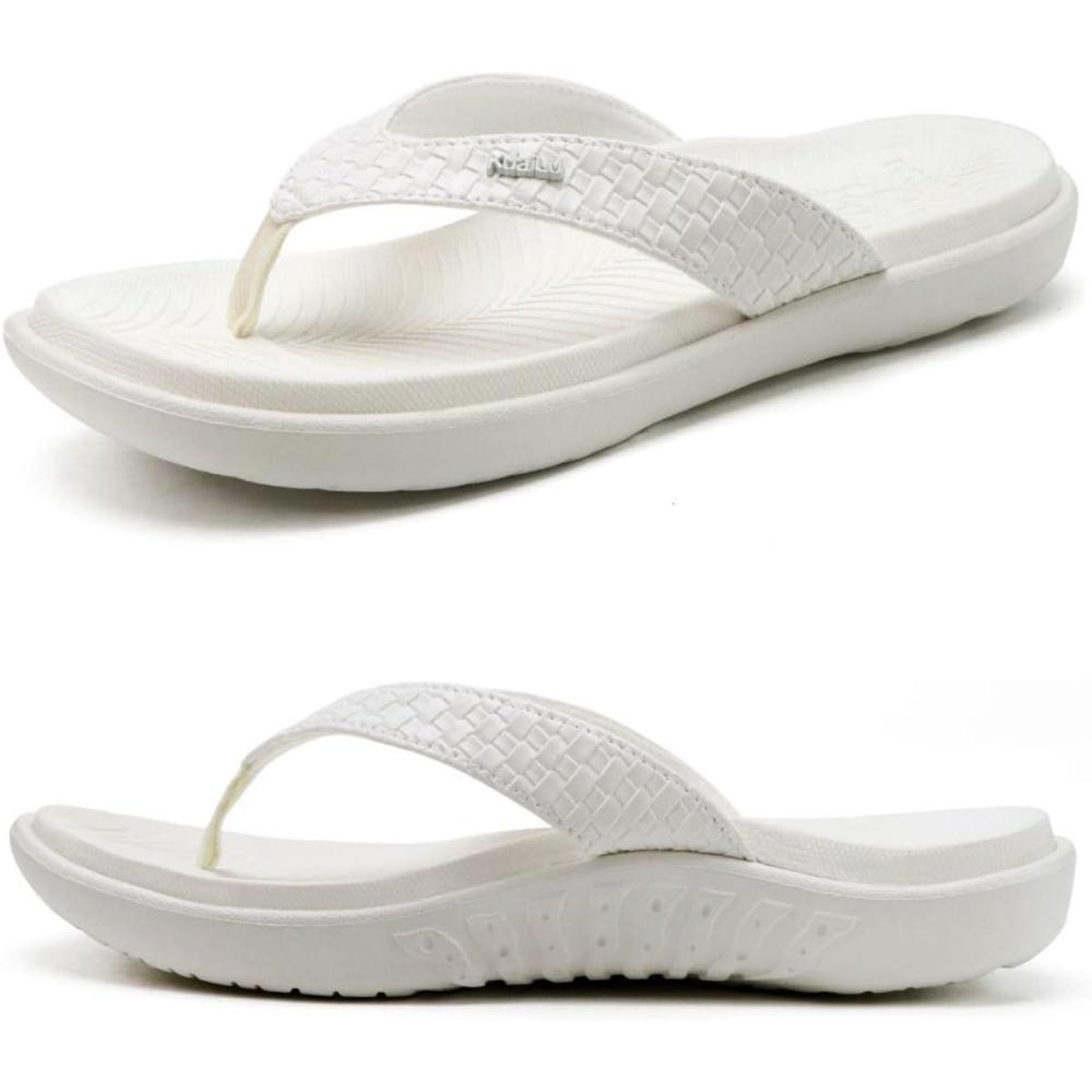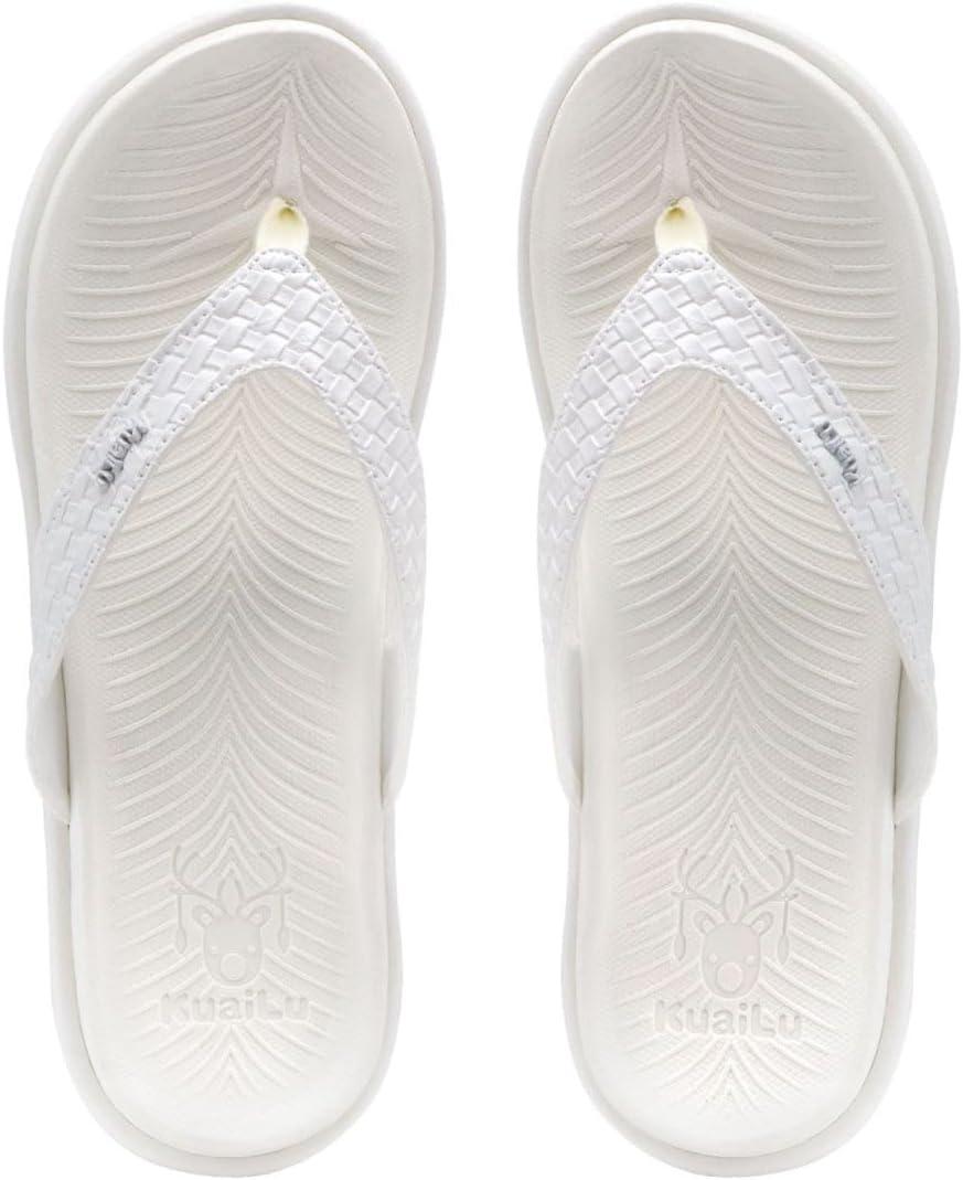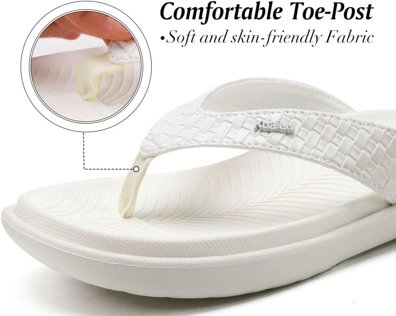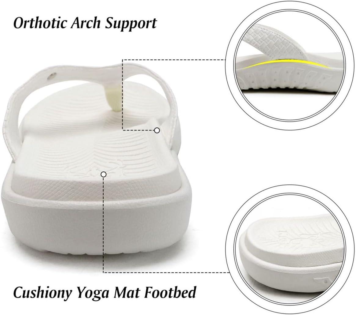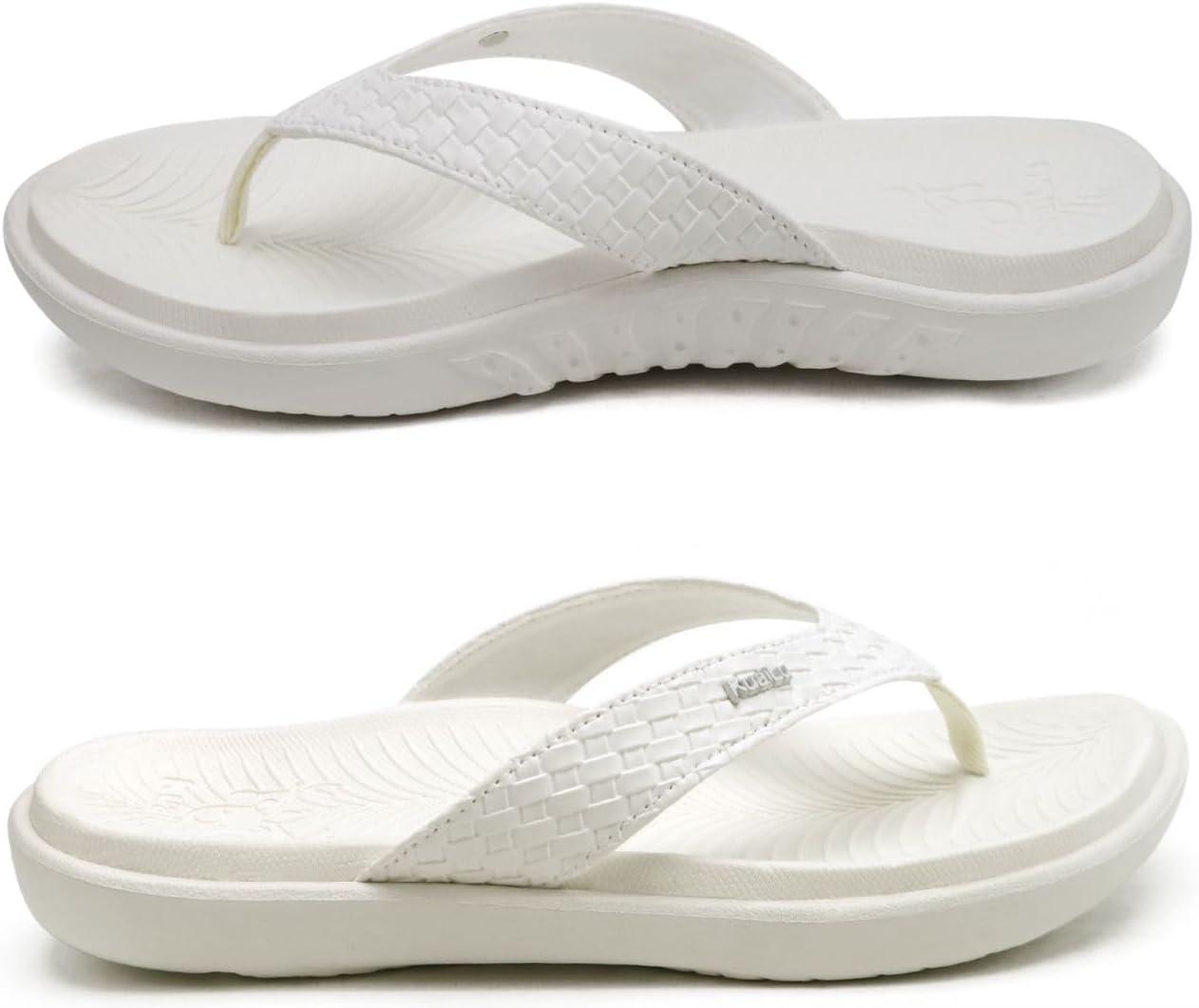 KuaiLu Womens Flip Flops Ladies Yoga Mat Comfortable Walking Thong Sandals With Plantar Fasciitis Arch Support Slip On Indoor Outdoor For Summer(All White)