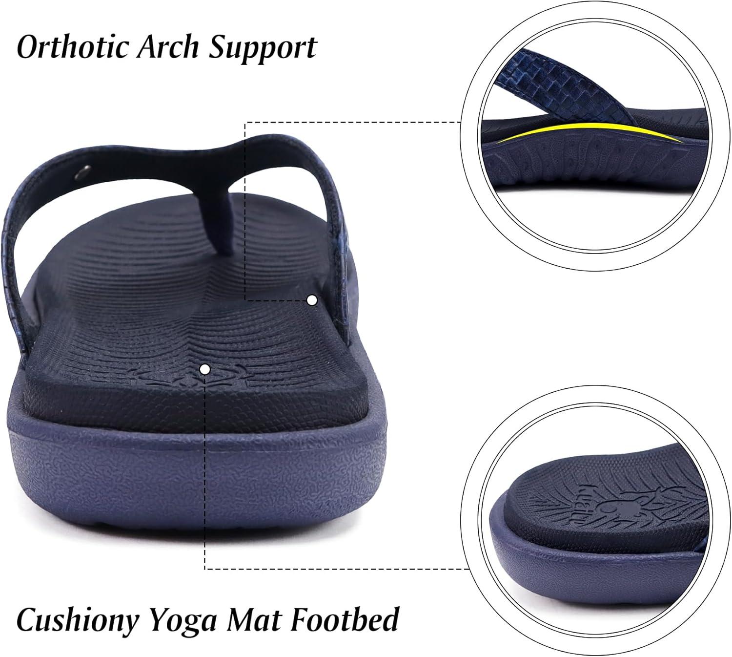 KuaiLu Womens Flip Flops Ladies Yoga Mat Comfortable Walking Thong Sandals With Plantar Fasciitis Arch Support Slip On Indoor Outdoor For Summer(Dark Blue)