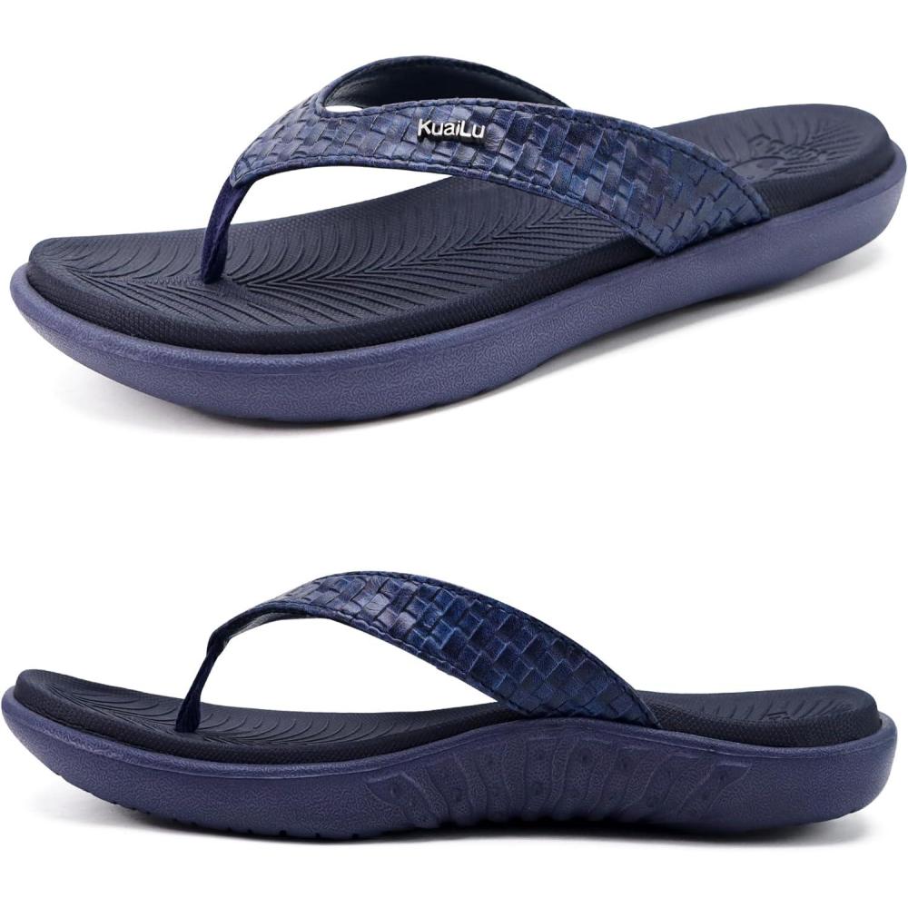 Get up to 70% off on KuaiLu Womens Flip Flops Ladies Yoga Mat Comfortable Walking Thong Sandals With Plantar Fasciitis Arch Support Slip On Indoor Outdoor For Summer(Dark Blue) styles during our end-of-season clearance event.