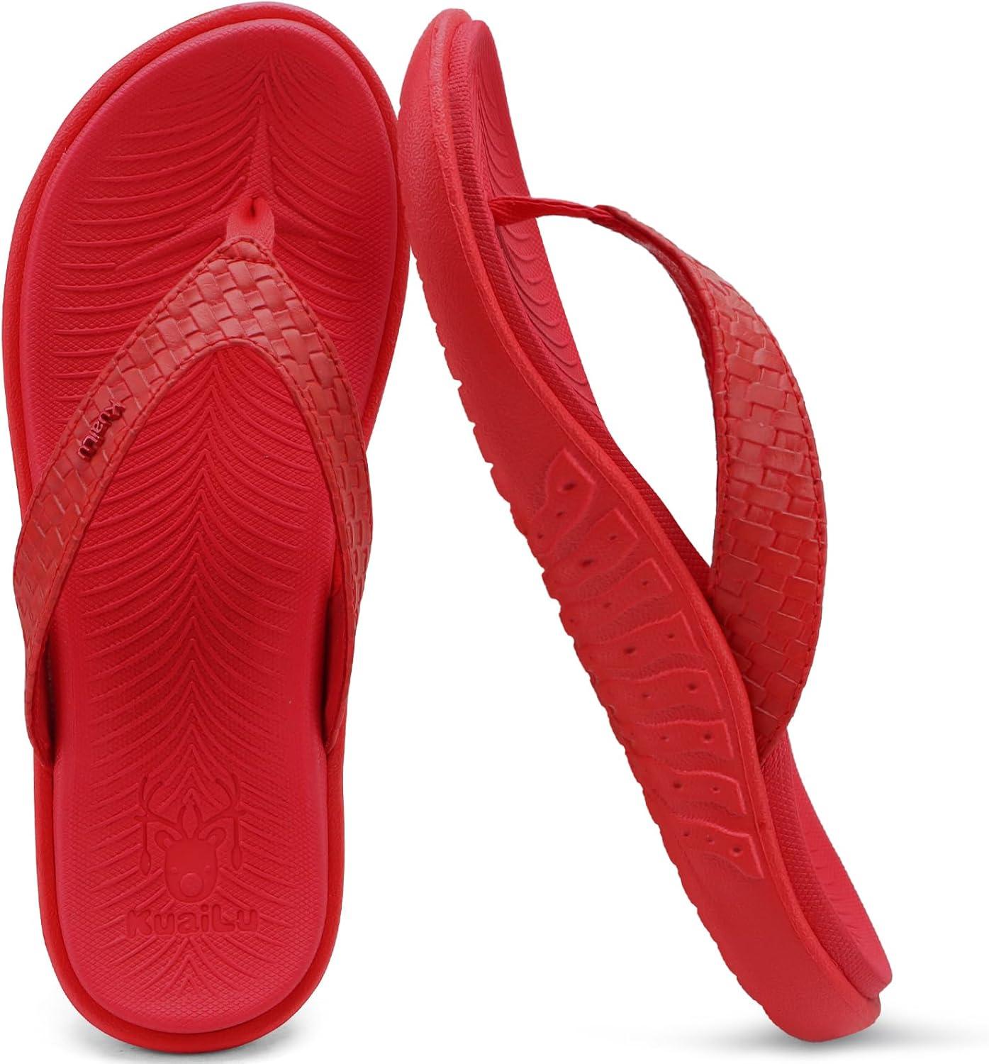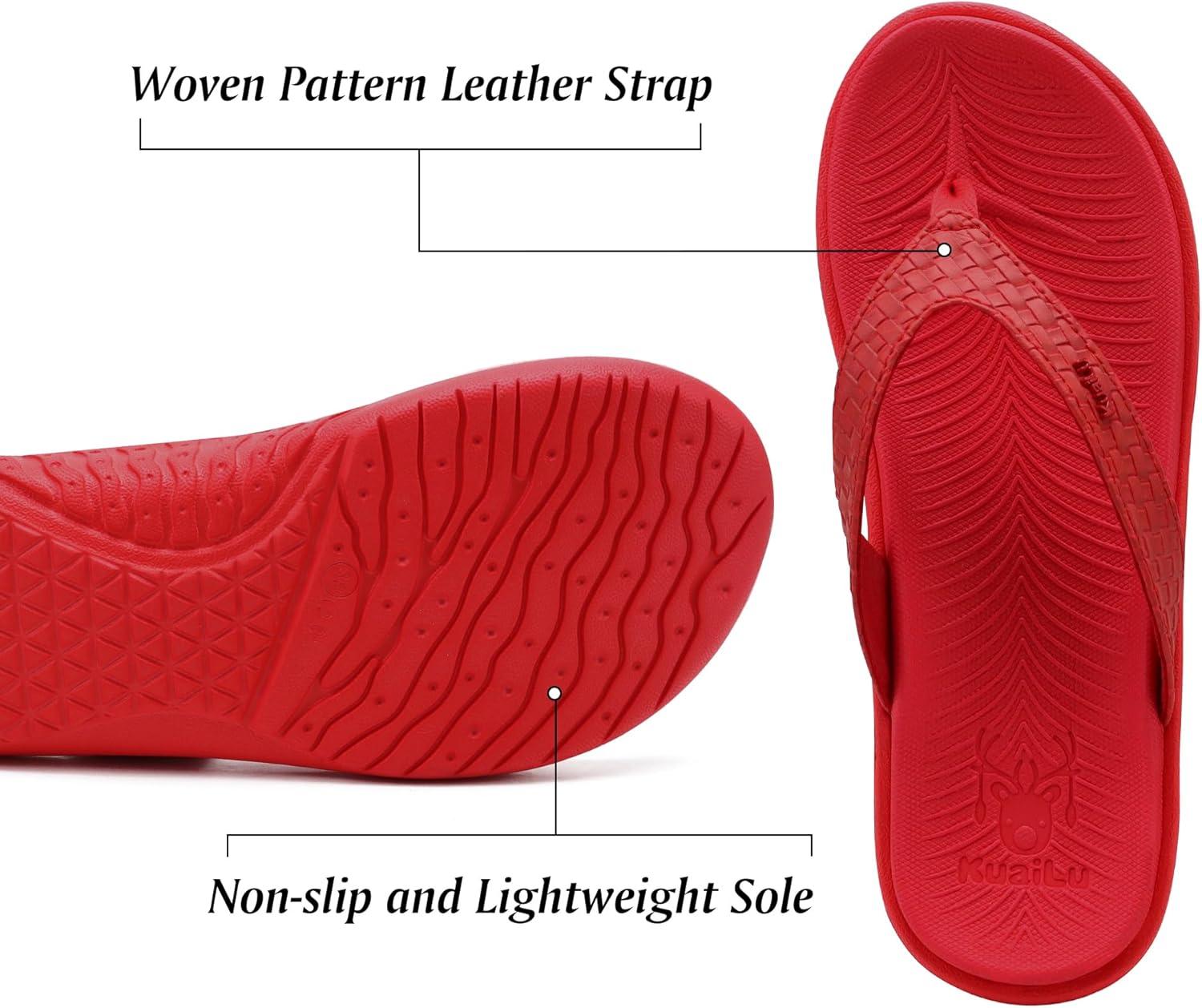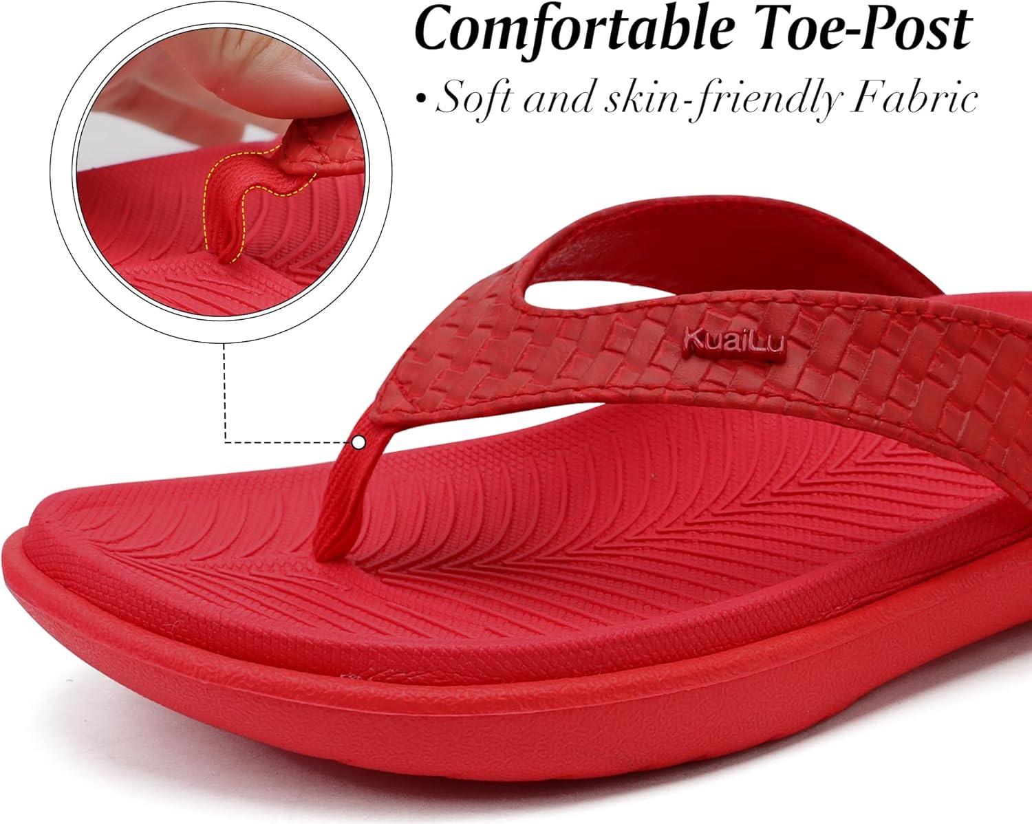 KuaiLu Womens Flip Flops Ladies Yoga Mat Comfortable Walking Thong Sandals With Plantar Fasciitis Arch Support Slip On Indoor Outdoor For Summer(Pure Red)