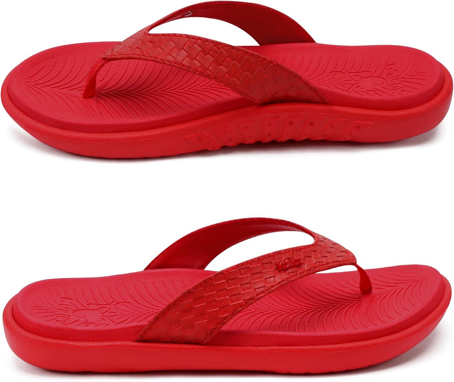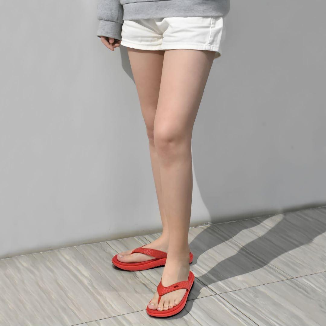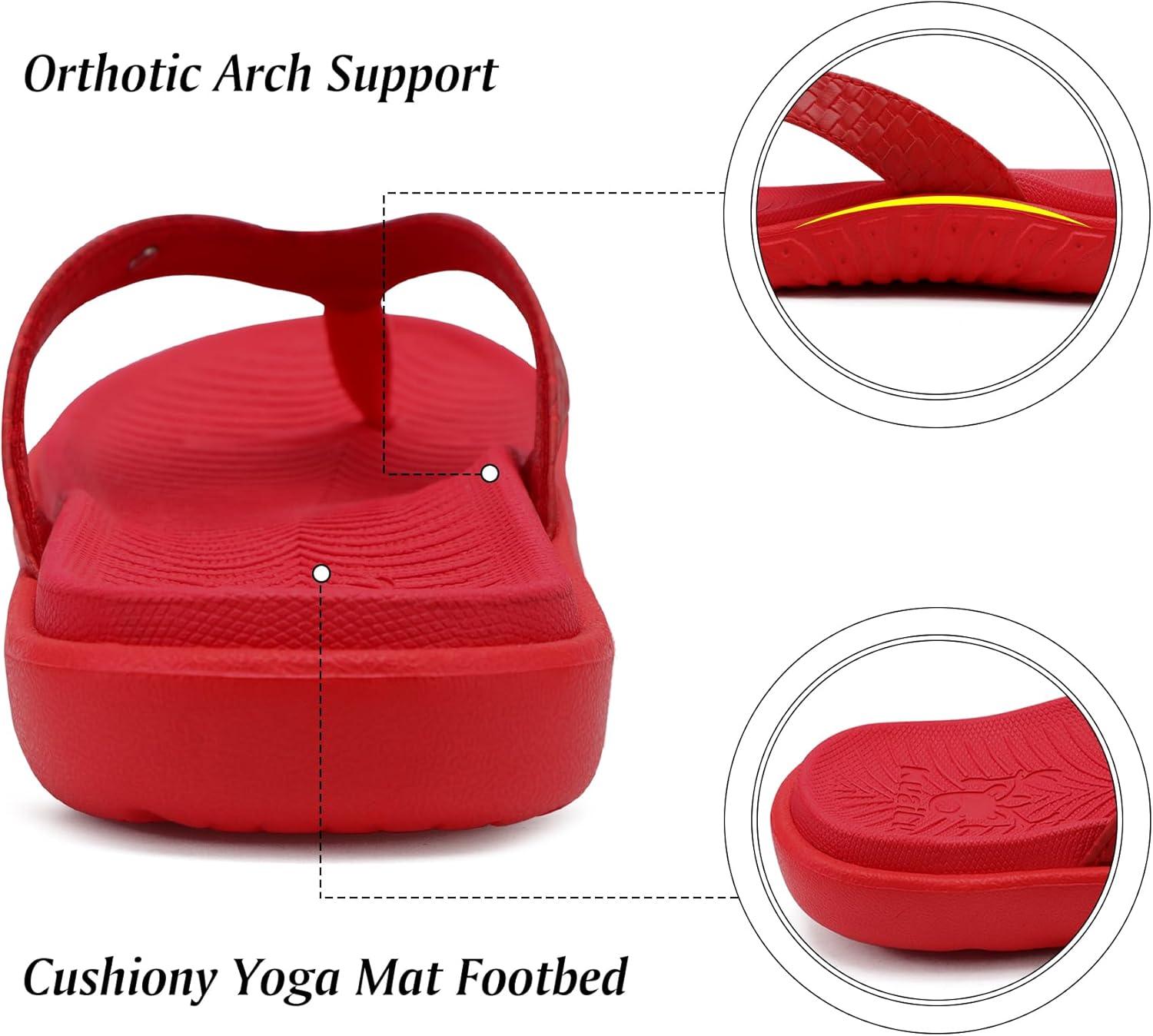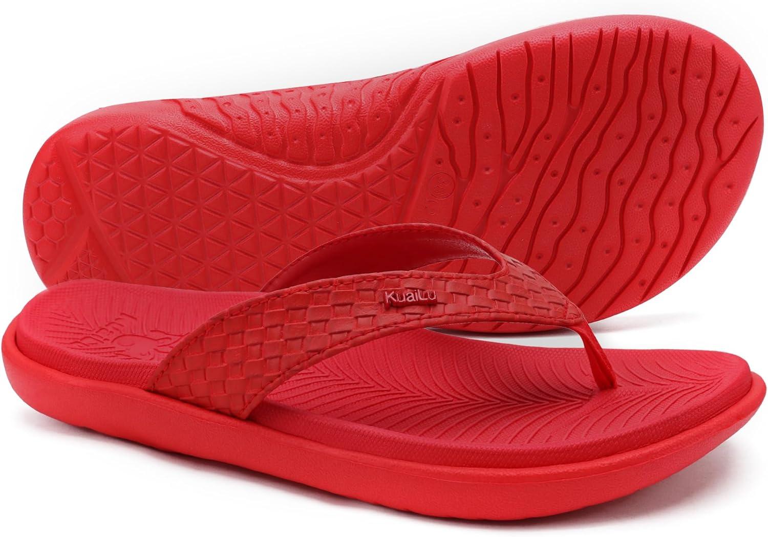 KuaiLu Womens Flip Flops Ladies Yoga Mat Comfortable Walking Thong Sandals With Plantar Fasciitis Arch Support Slip On Indoor Outdoor For Summer(Pure Red)