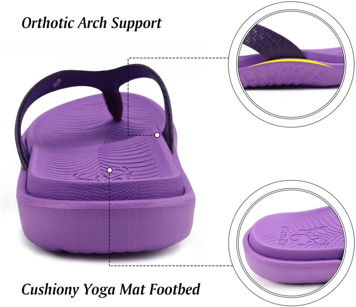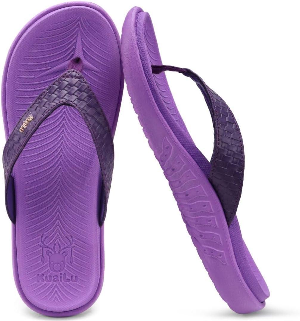 KuaiLu Womens Flip Flops Ladies Yoga Mat Comfortable Walking Thong Sandals With Plantar Fasciitis Arch Support Slip On Indoor Outdoor For Summer(Violet Purple)