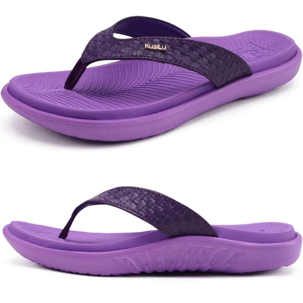 imageKuaiLu Womens Flip Flops Ladies Yoga Mat Comfortable Walking Thong Sandals With Plantar Fasciitis Arch Support Slip On Indoor Outdoor For SummerViolet Purple