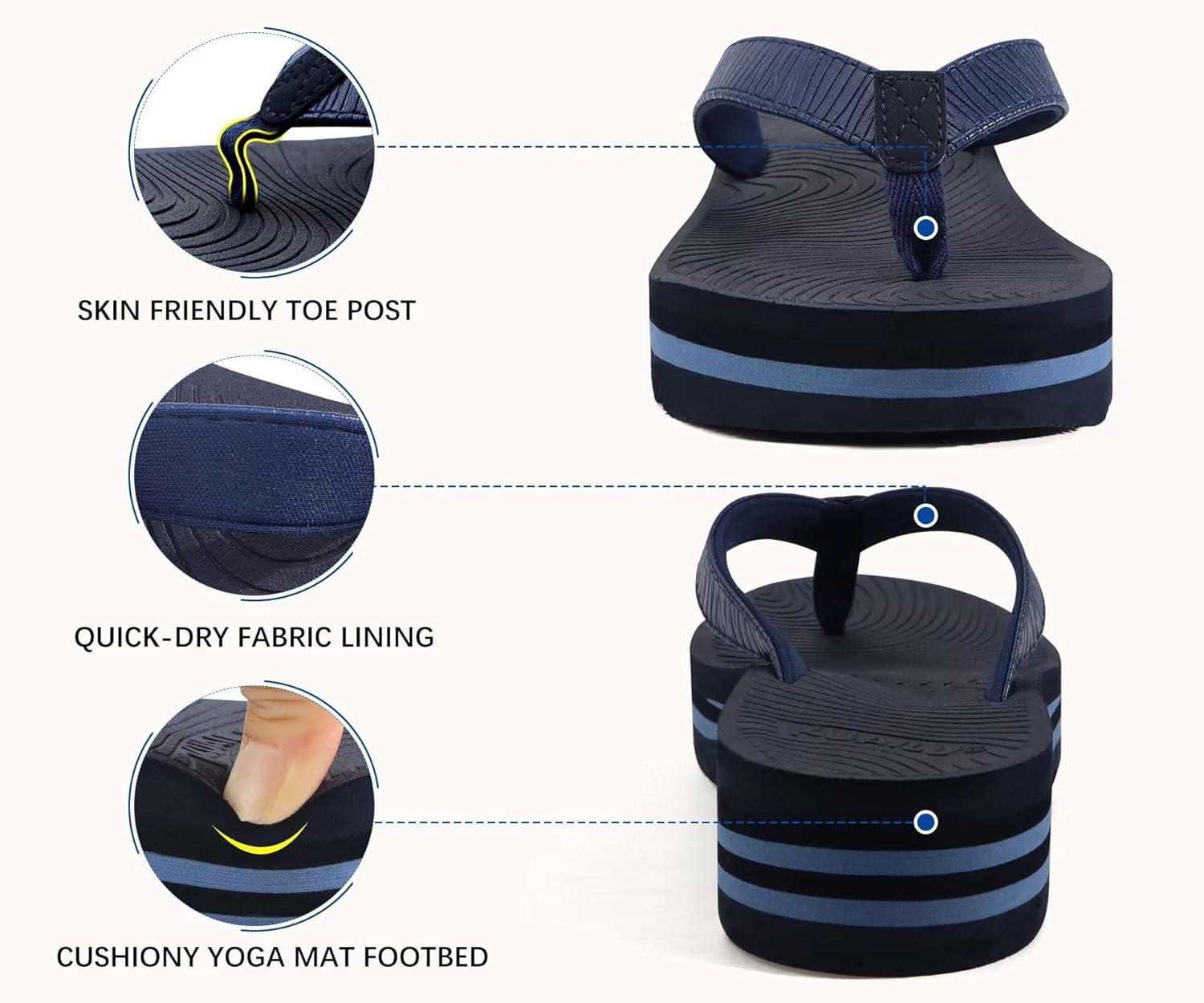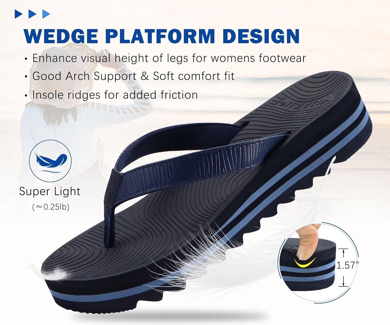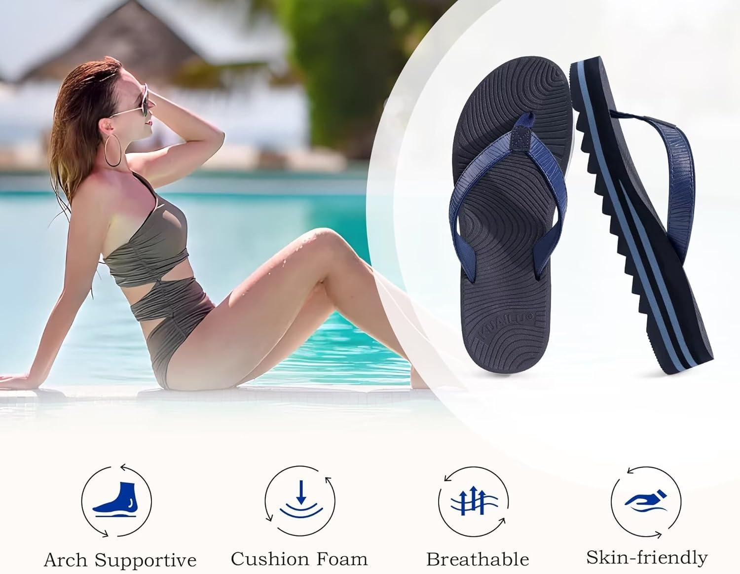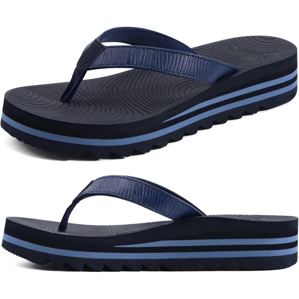 KuaiLu Women’s Flip Flops Ladies Yoga Mat Platform Thong Sandals Dressy Womans Lightweight Summer Slip On Beach Flip Flop Sandles, Soft Cushion Footbed, Arch Support(Dark Blue(choose a Smaller Size))