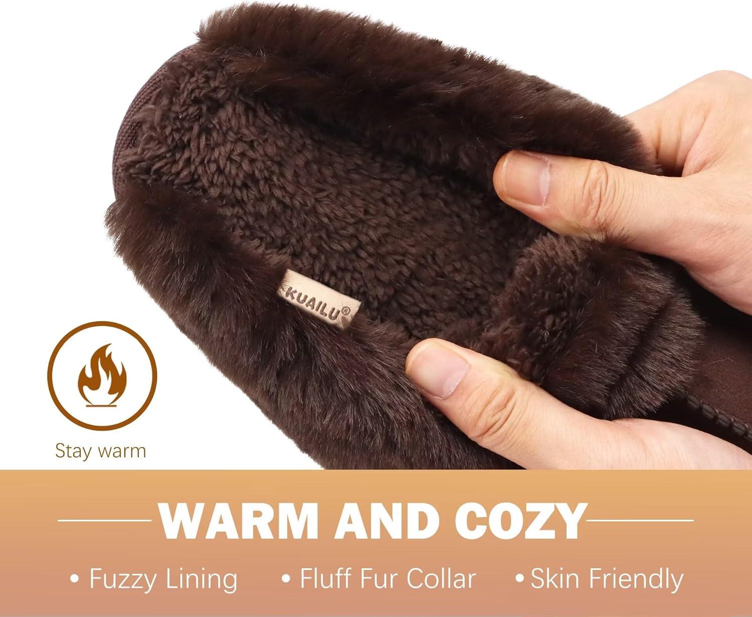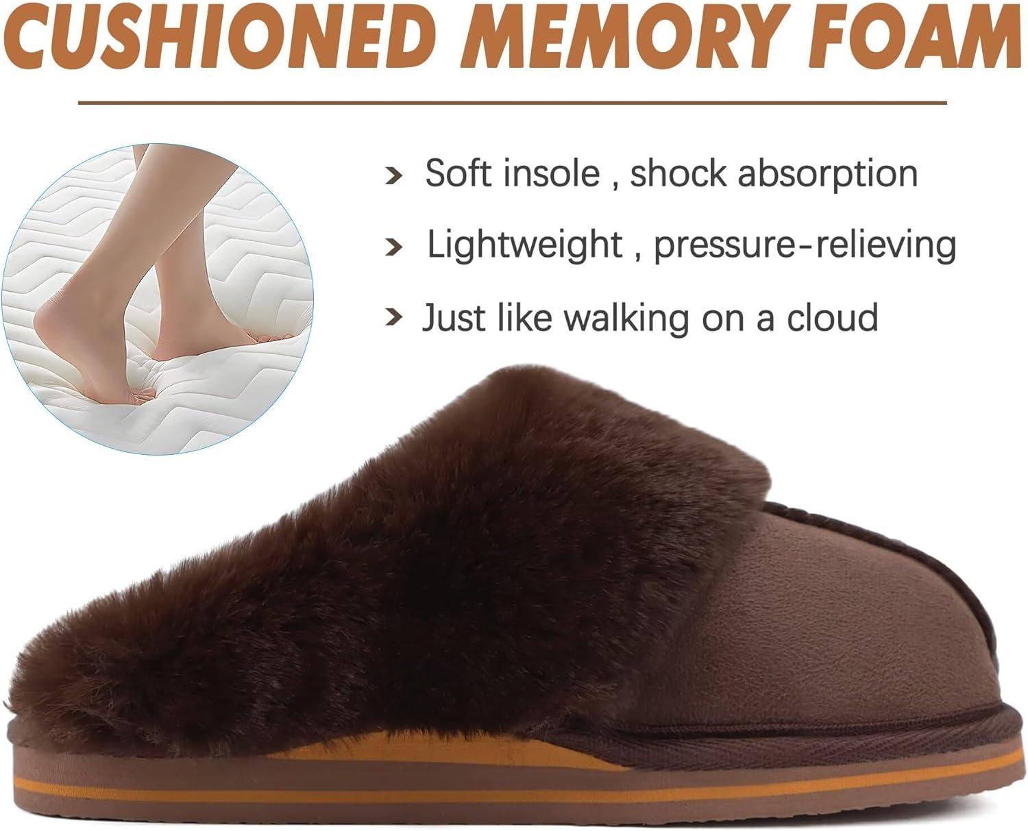 KuaiLu Womens Fluff Dual Memory Foam Slippers Ladies Cozy Arch Support Warm Scuff Slippers Slip on Comfy Winter House Shoes with Non-Slip Indoor Outdoor Hard Sole(Dark Brown)