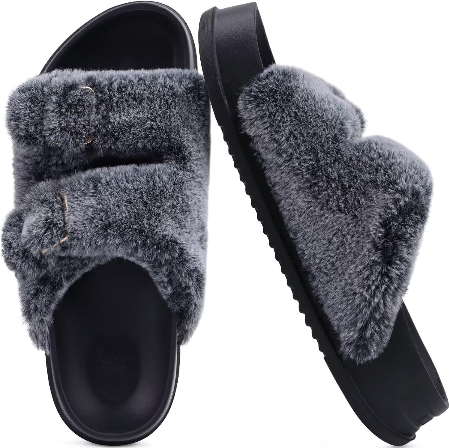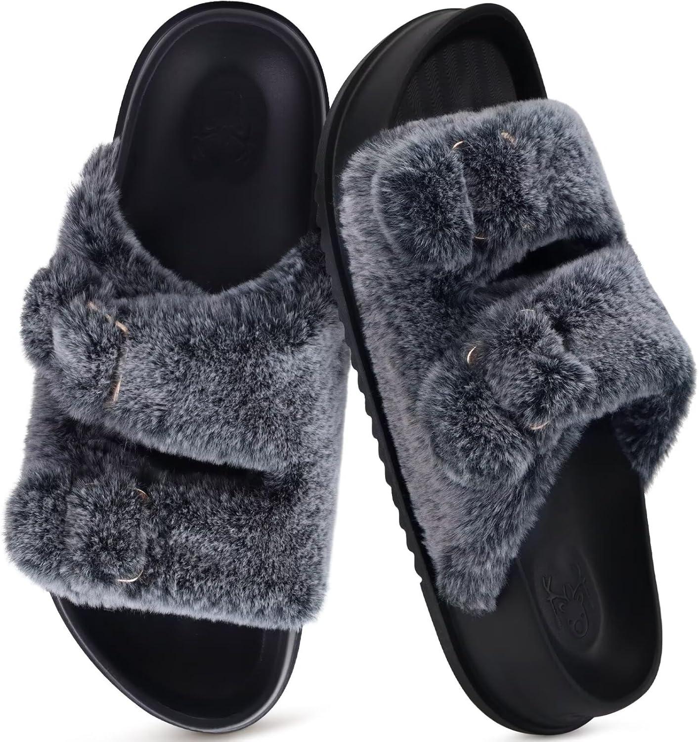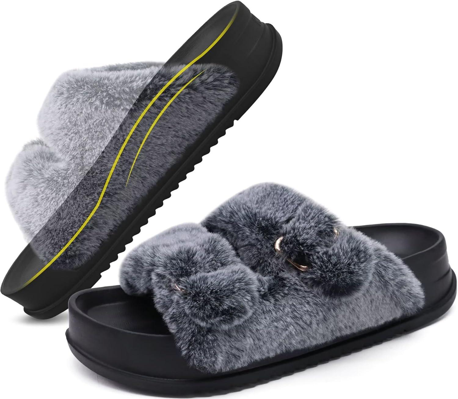 Get up to 70% off on KuaiLu Women’s Fluff Slippers Black Size 9, Plantar Fasciitis Arch Support Platform Slippers Ladies Fashion Open Toe Faux Fur Sliders House Slipper styles during our end-of-season clearance event.