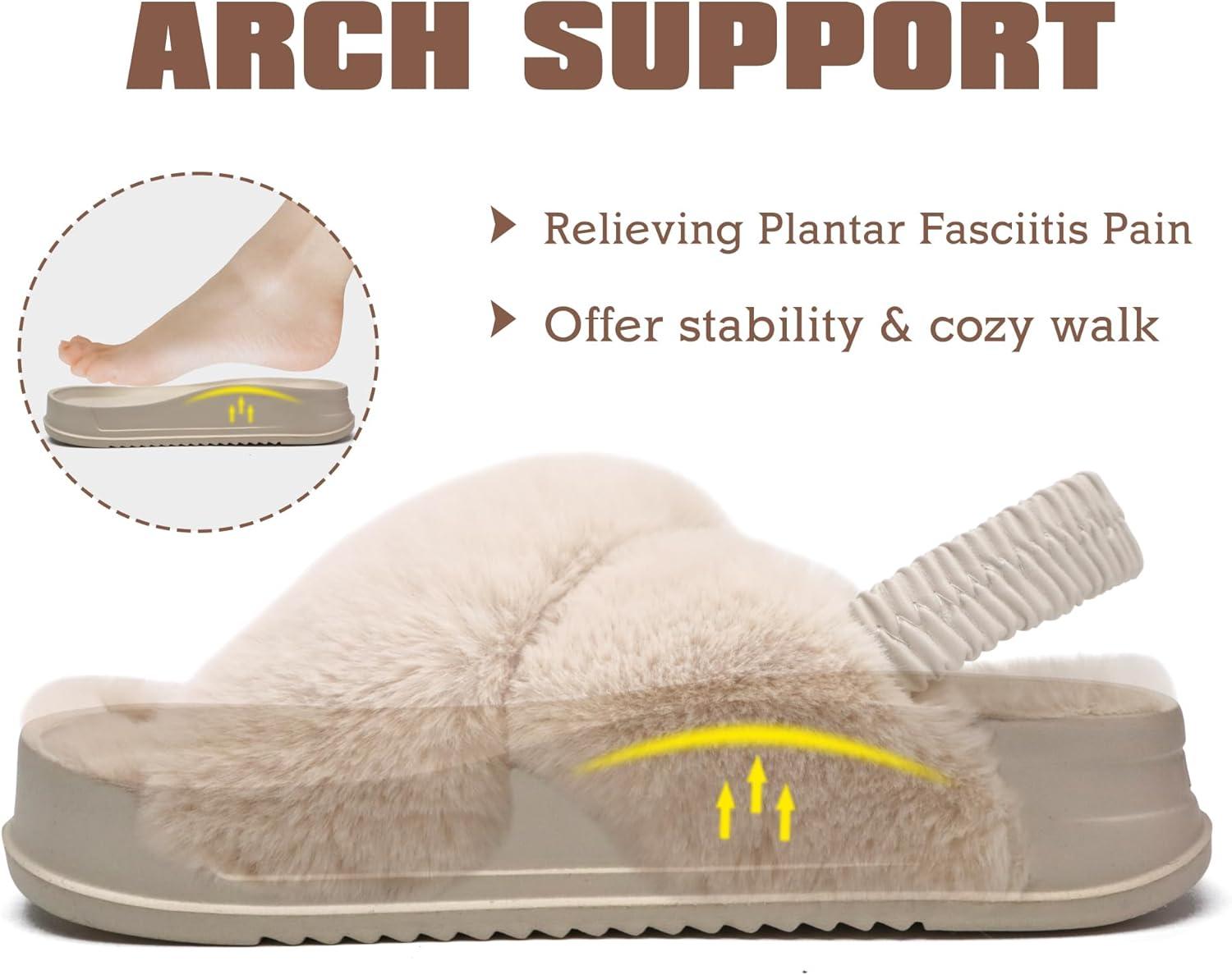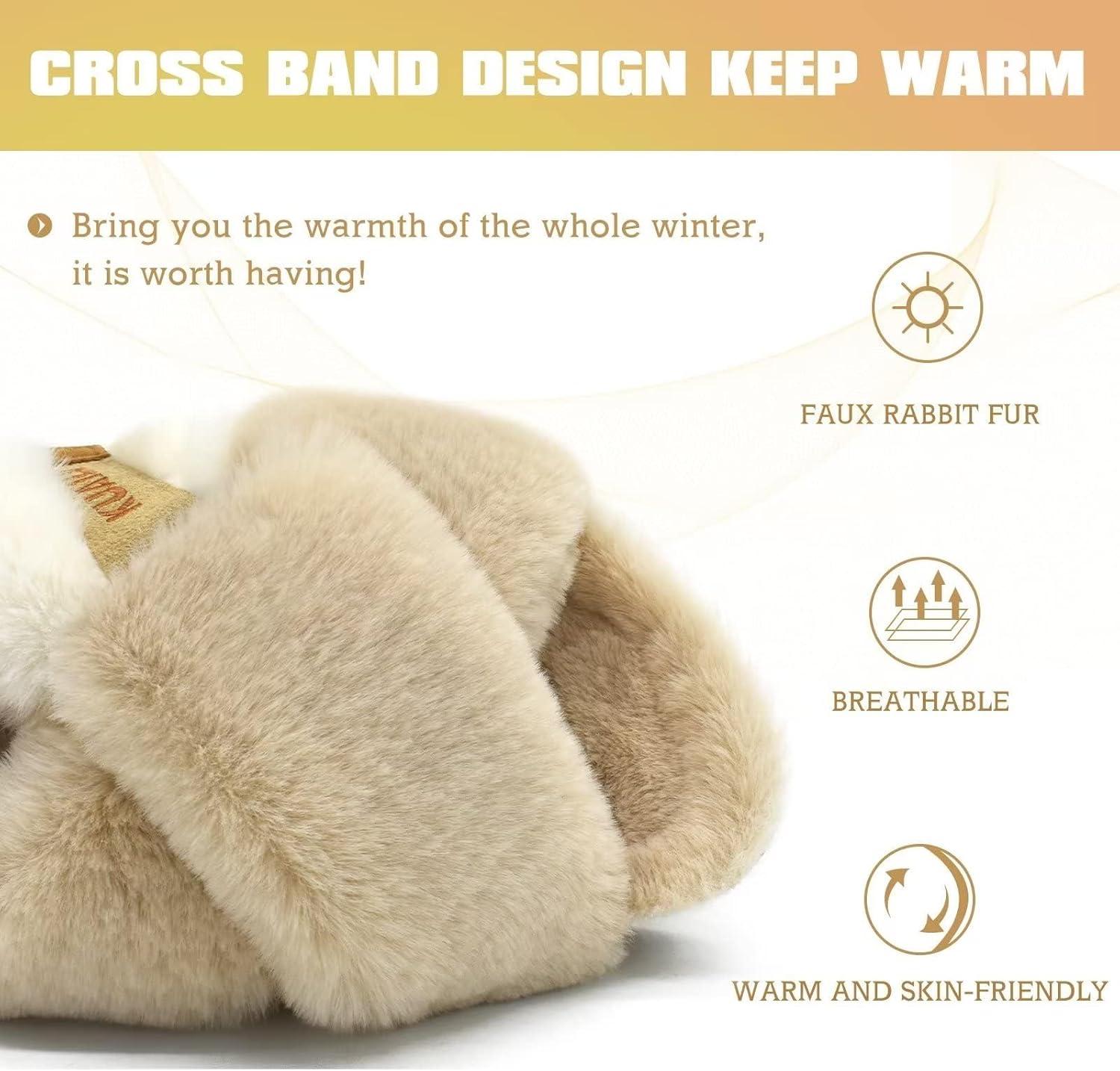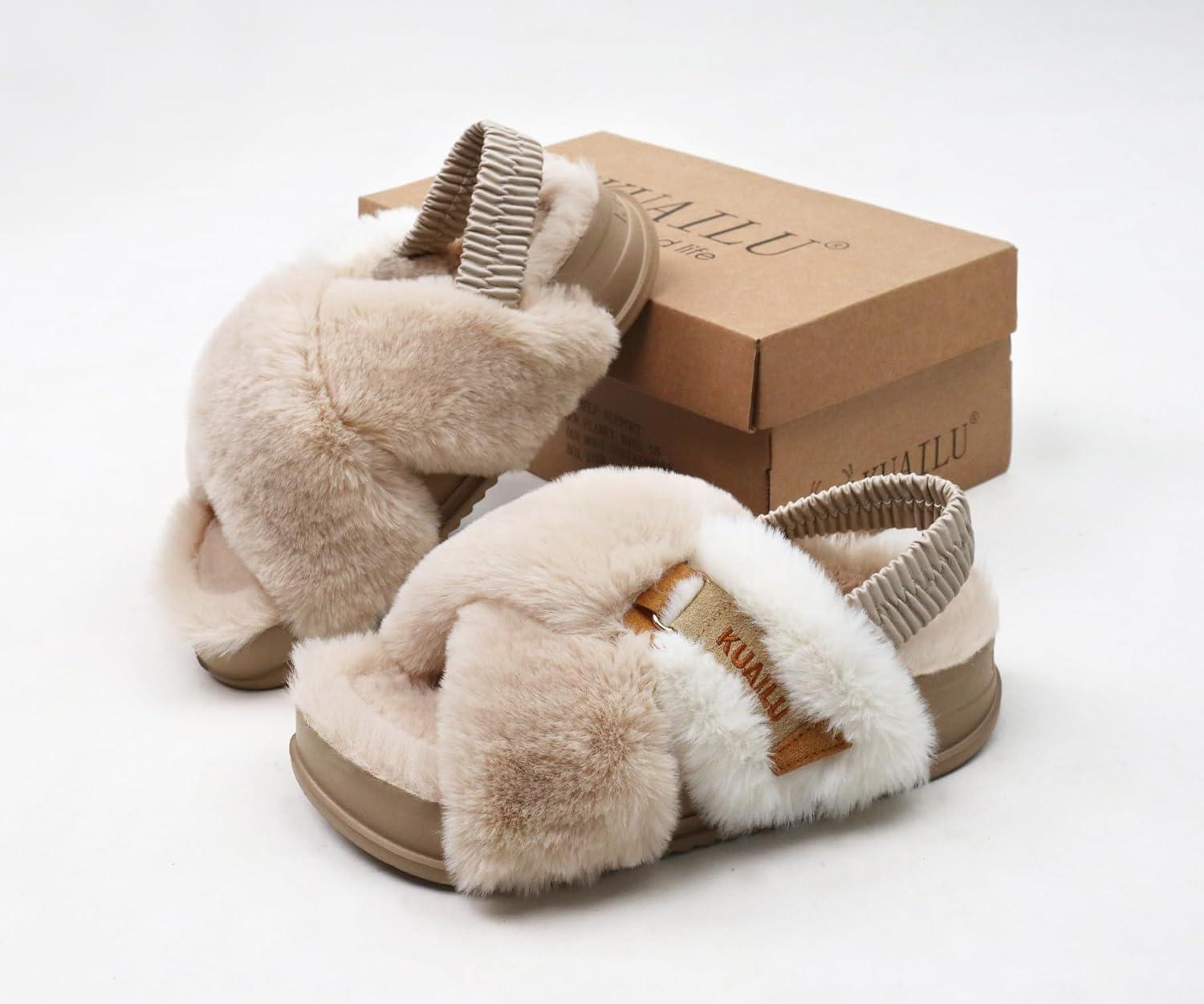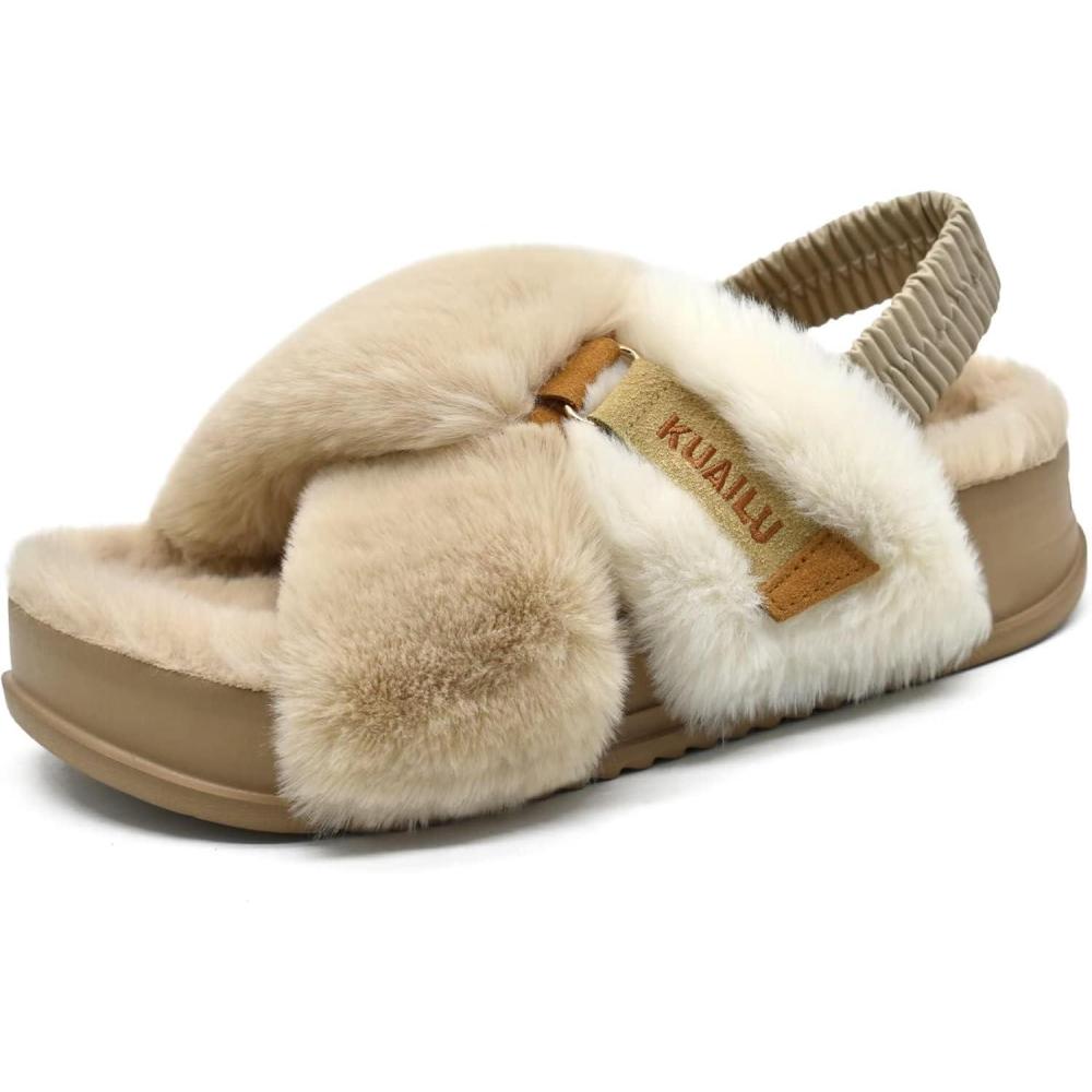 Get your hands on our exclusive KuaiLu Womens Fuzzy Criss Cross Band Platform Slippers Arch Support Furry Faux Fur Ladies Open Toe Cozy Soft Plush Fleece Comfy House Shoes Sandals(Plush Beige) collection, now at a discounted price.