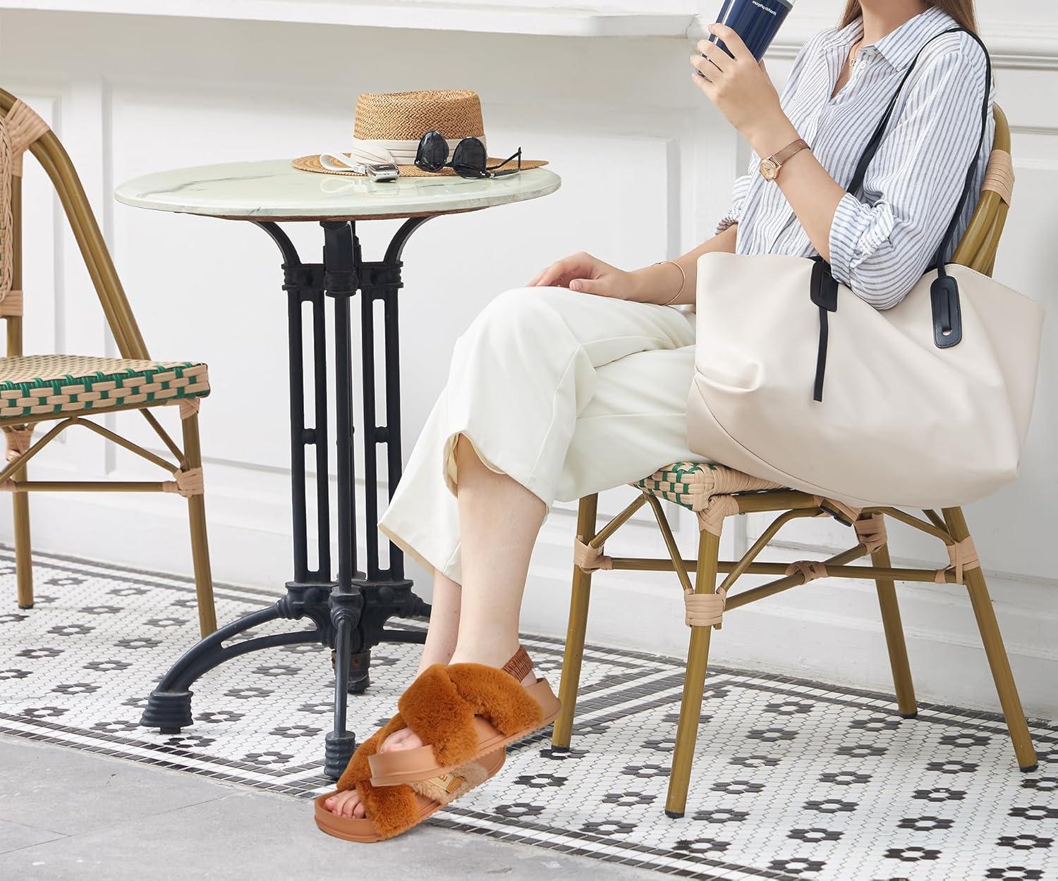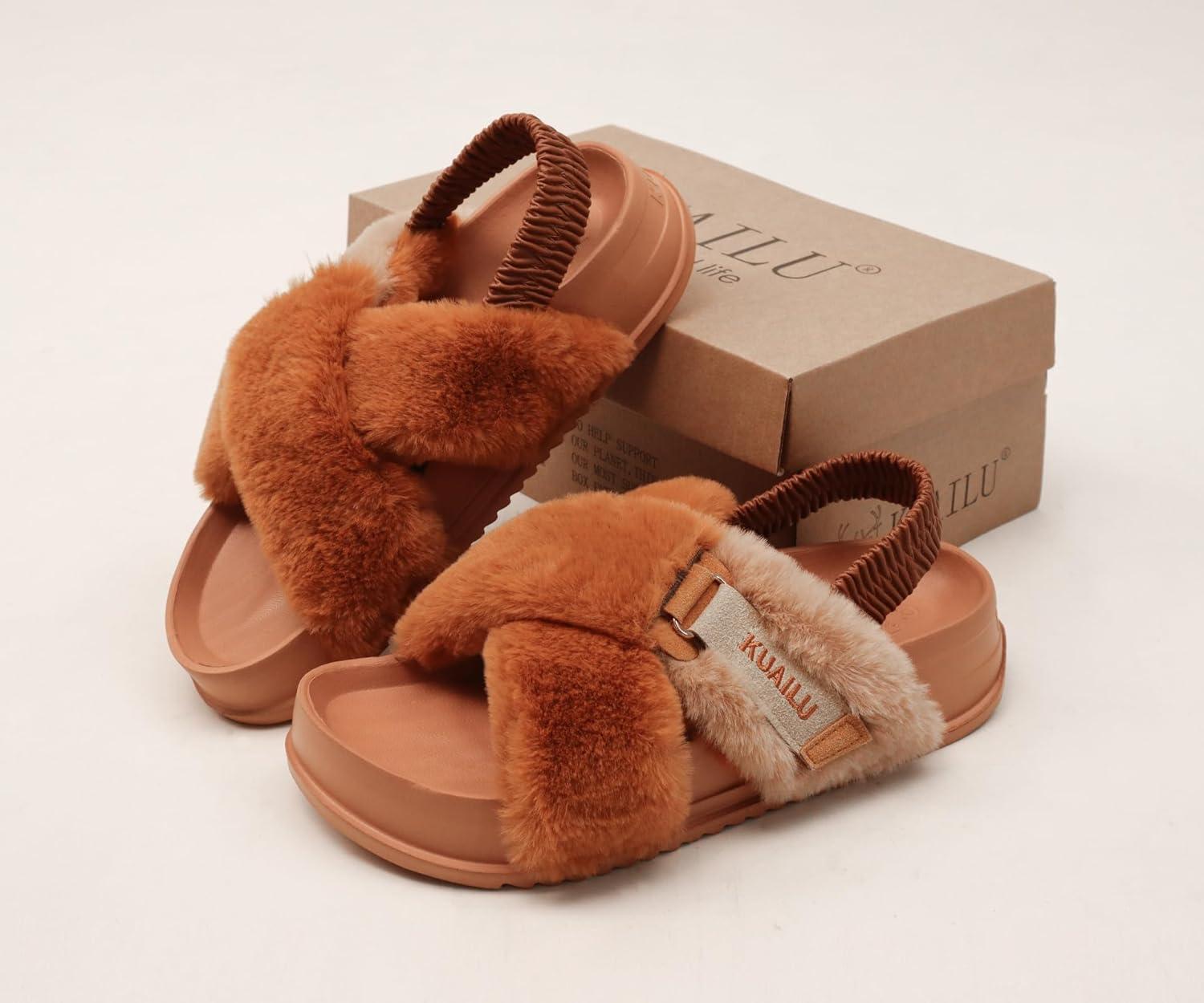 Be the first to review “KuaiLu Womens Fuzzy Criss Cross Band Platform Slippers Arch Support Furry Faux Fur Ladies Open Toe Cozy Soft Plush Fleece Comfy House Shoes Sandals(Tan)”