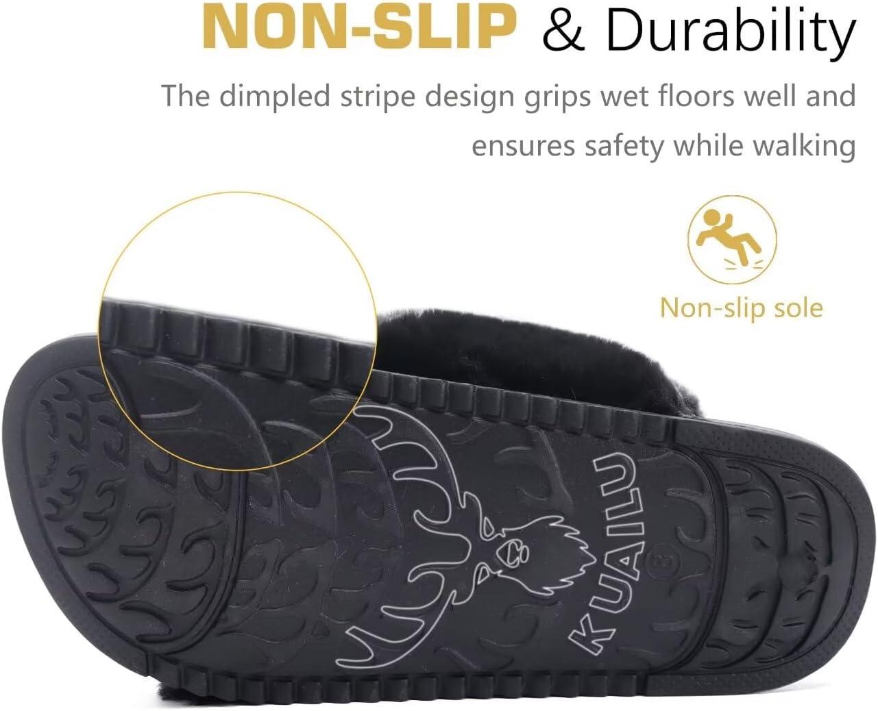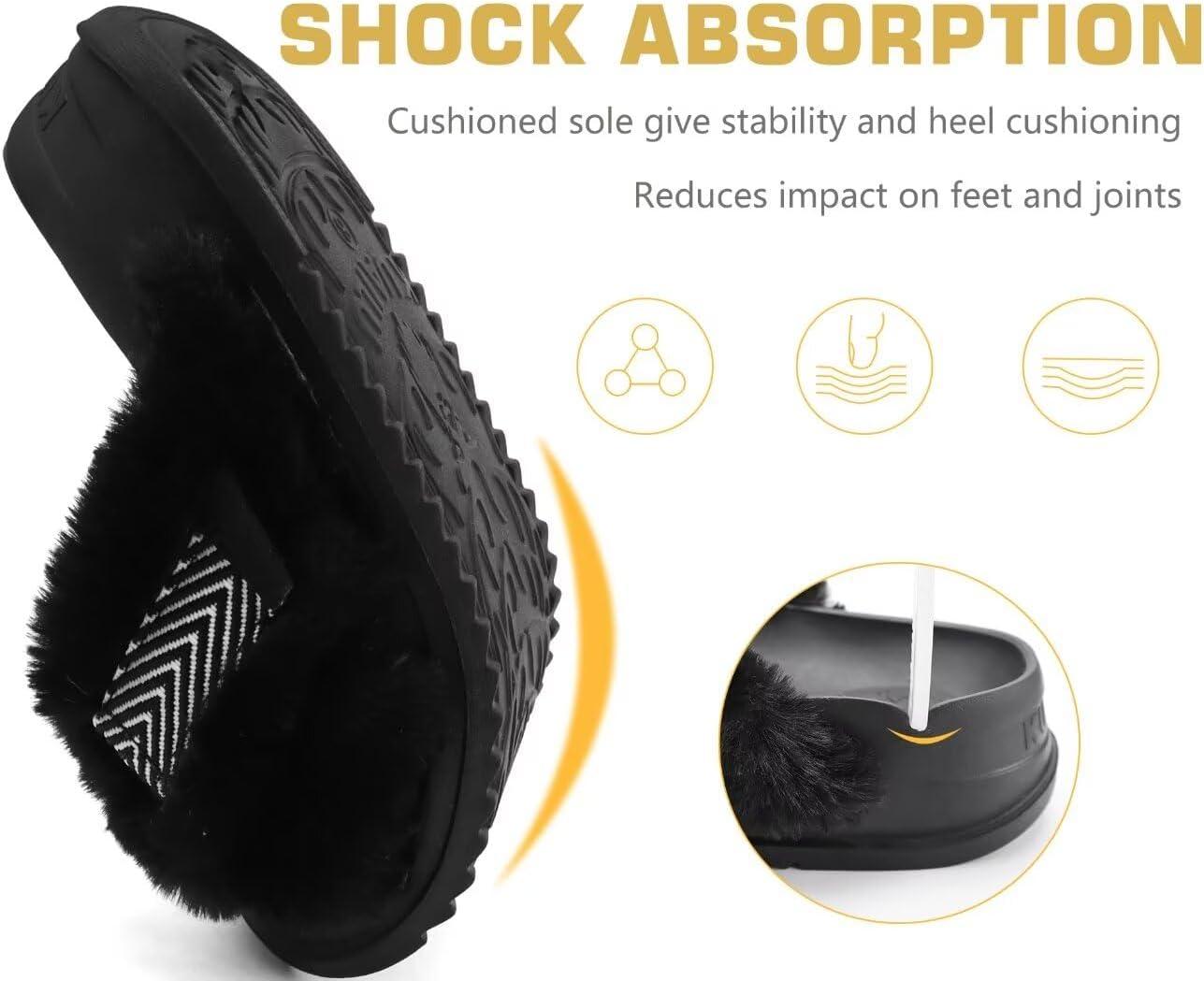 Be the first to review “KuaiLu Women’s Fuzzy Cross Band Platform Slippers Comfortable Faux Fur Open Toe Arch Support Slides Slippers for Indoor Outdoor(Black)”