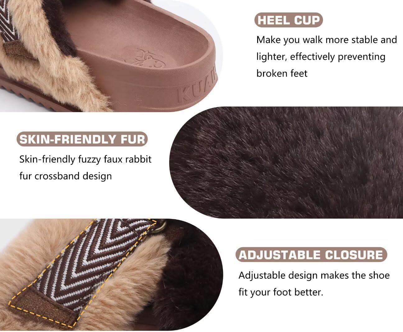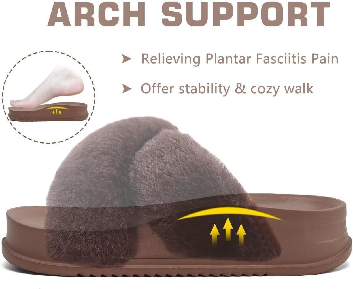 KuaiLu Women’s Fuzzy Cross Band Platform Slippers Furry Faux Fur Comfortable Arch Support Open Toe Slides for Indoor Outdoor(Brown)