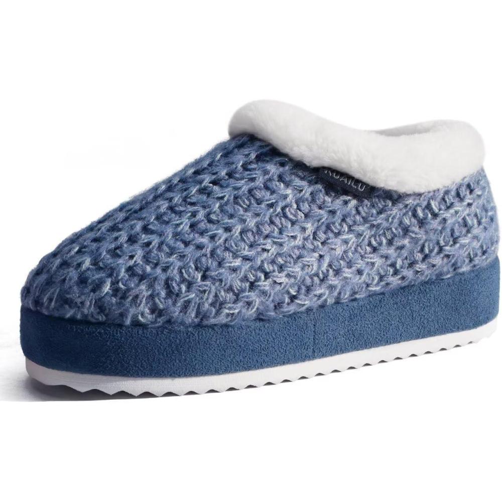 KuaiLu Womens House Platform Slippers Cozy Fuzzy Plush Knit Slipper Ladies Warm Fur Lined Winter Slip On Home Bedroom Thick Cushion Shoes Indoor Outdoor Hard Sole(Blue)