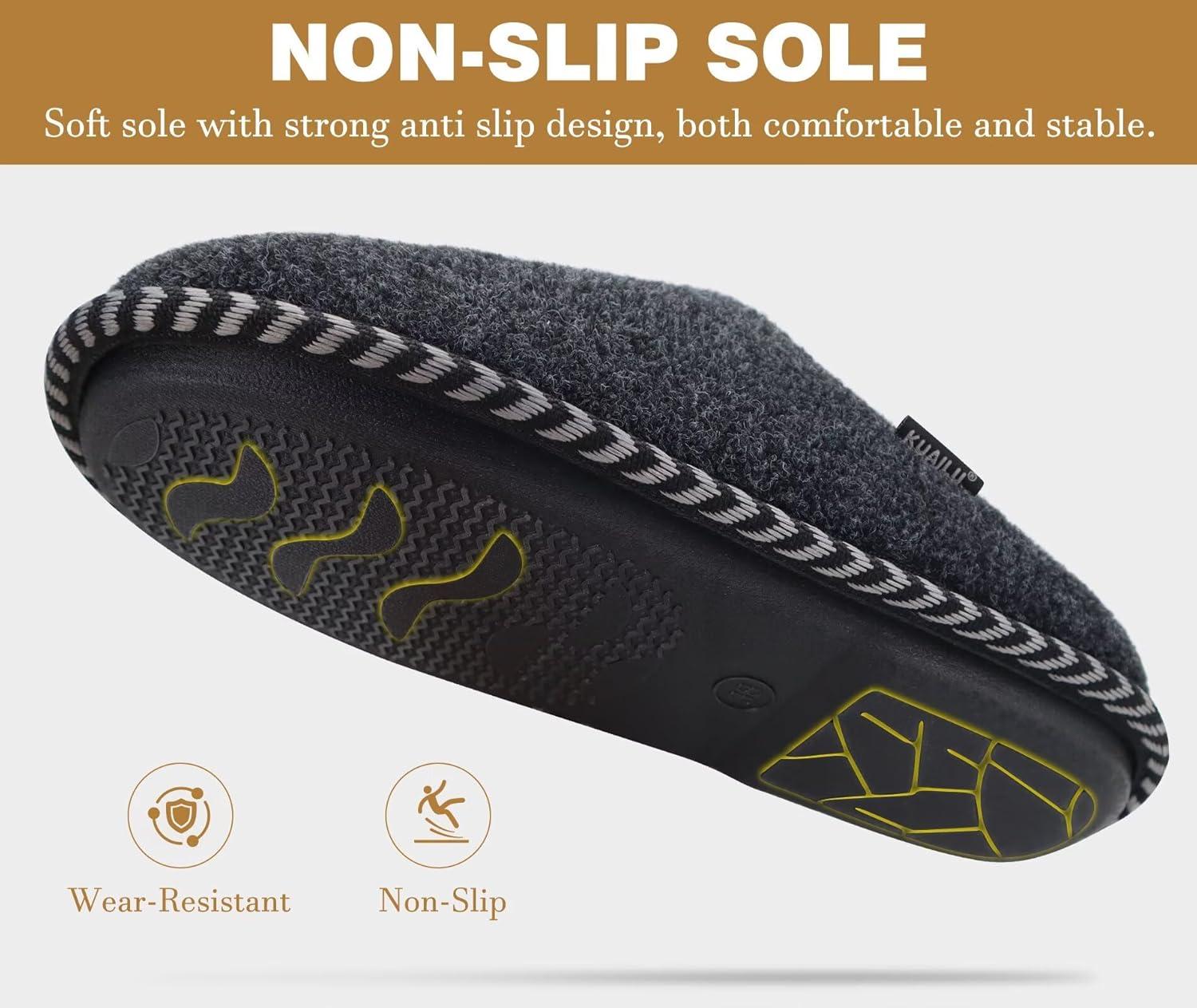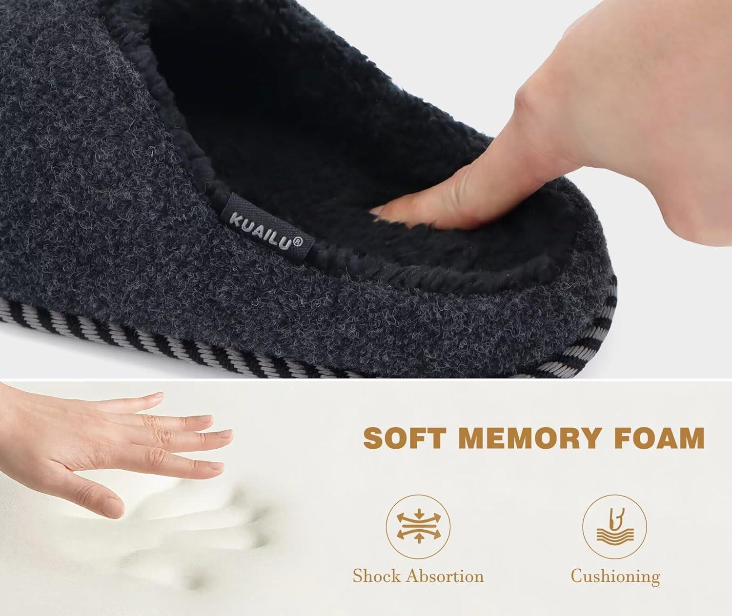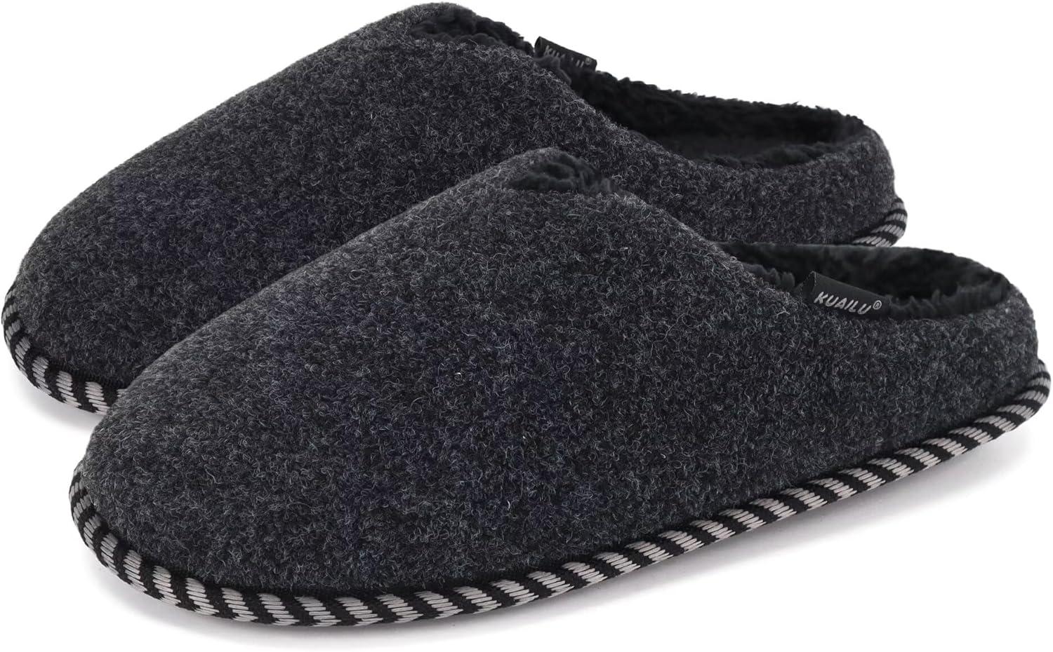 KuaiLu Women's Memory Foam House Slippers Supportive Cushion Felt Winter Shoes Ladies Warm Fuzzy Faux Fur with Indoor Outdoor Rubber Sole