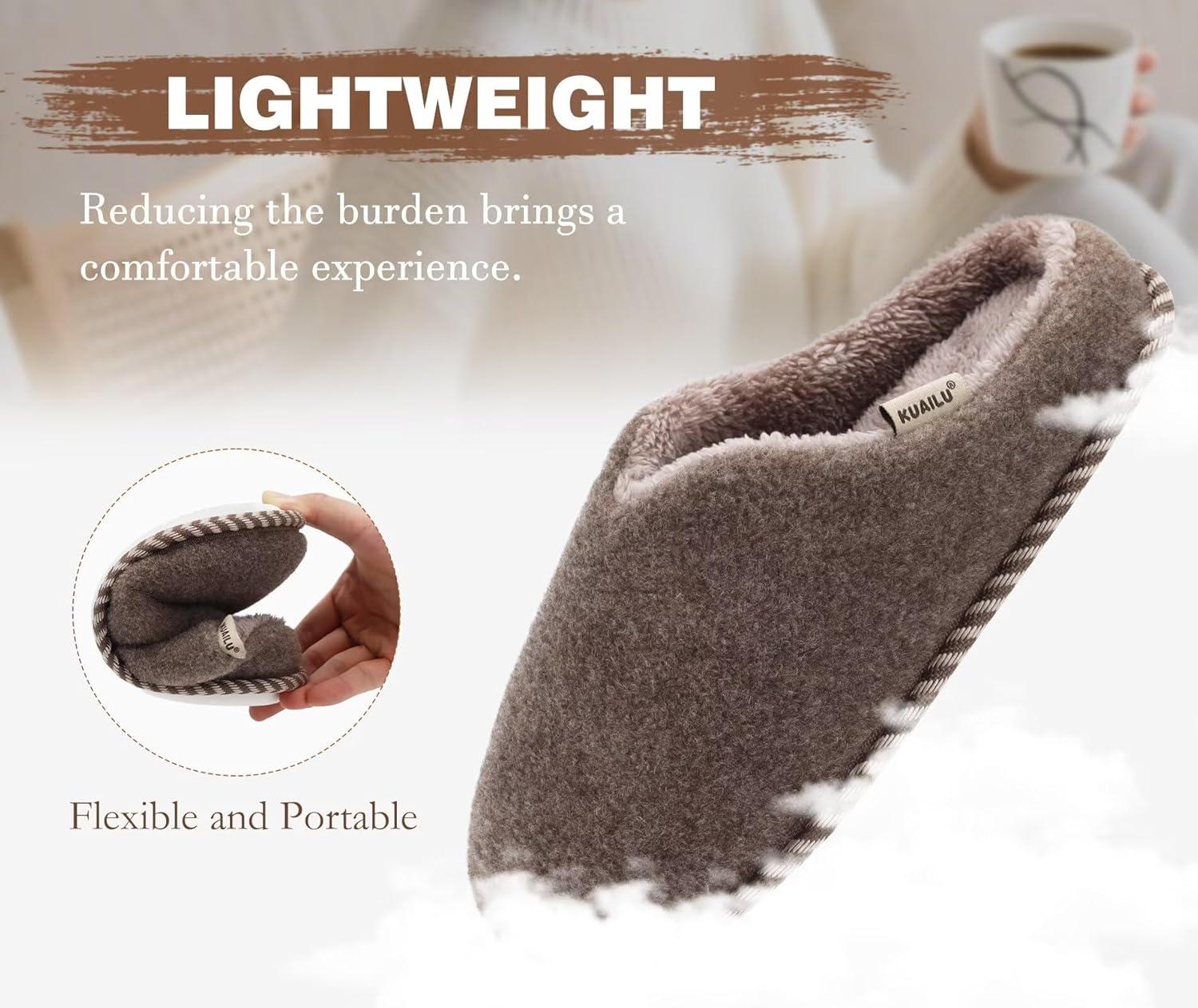 imageKuaiLu Womens Memory Foam Slippers Ladies Cozy Fuzzy Plush Fur Lined Warm Winter Cushioned Slip on House Bedroom Shoes Comfy Indoor Outdoor Hard Sole Arch Supportive Plantar Fasciitis Brown Size 85