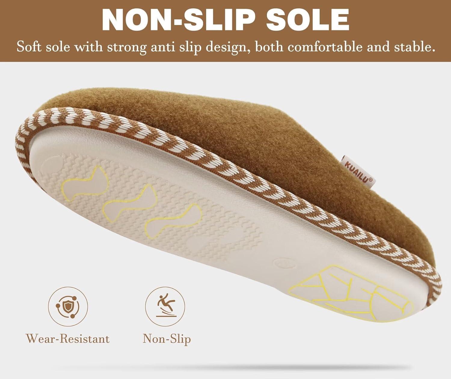 KuaiLu Women's Memory Foam House Slippers Supportive Cushion Felt Winter Shoes Ladies Warm Fuzzy Faux Fur with Indoor Outdoor Rubber Sole