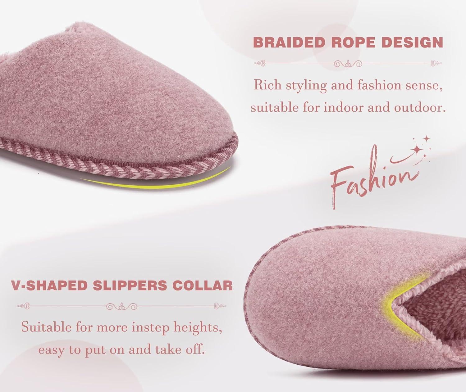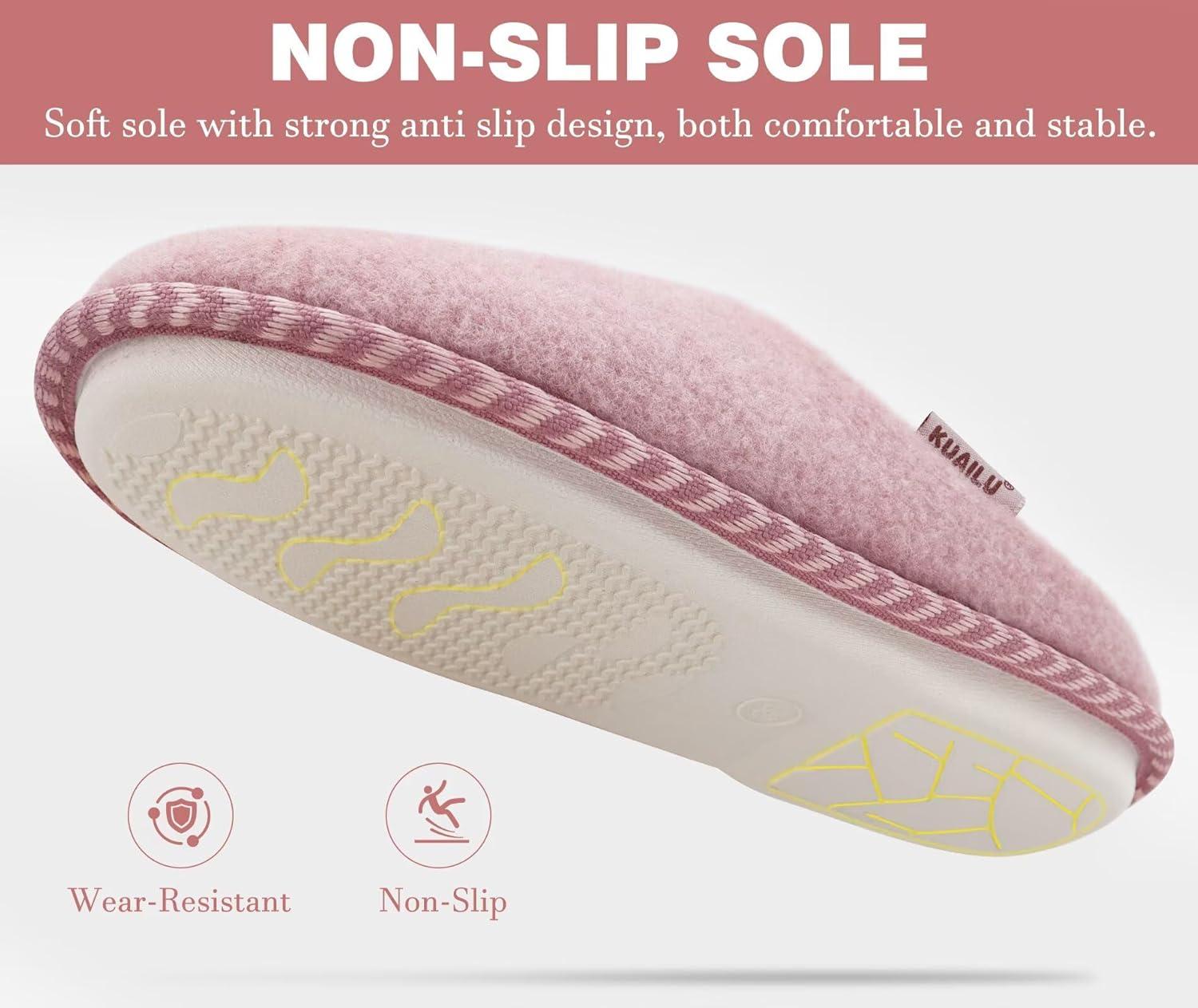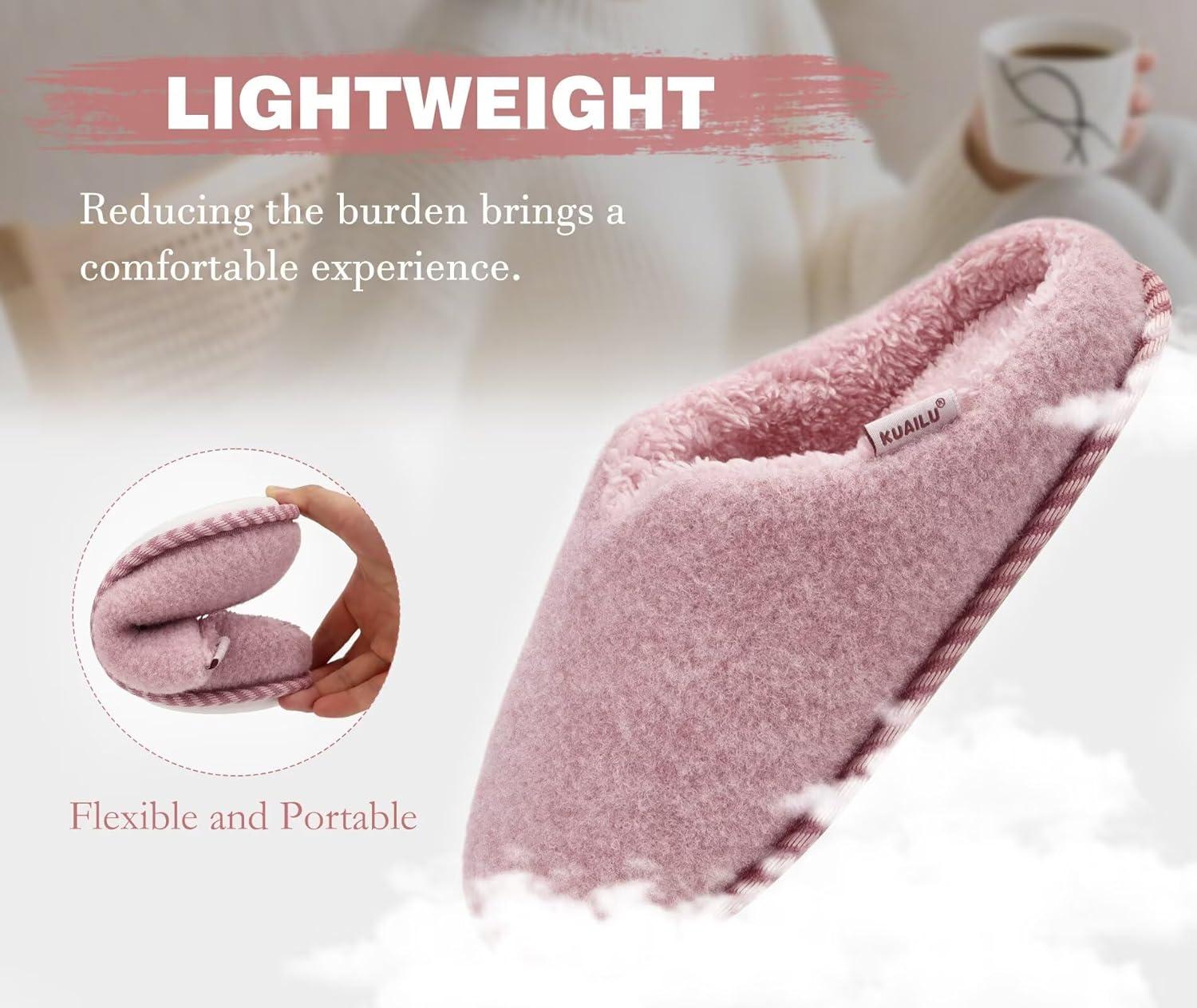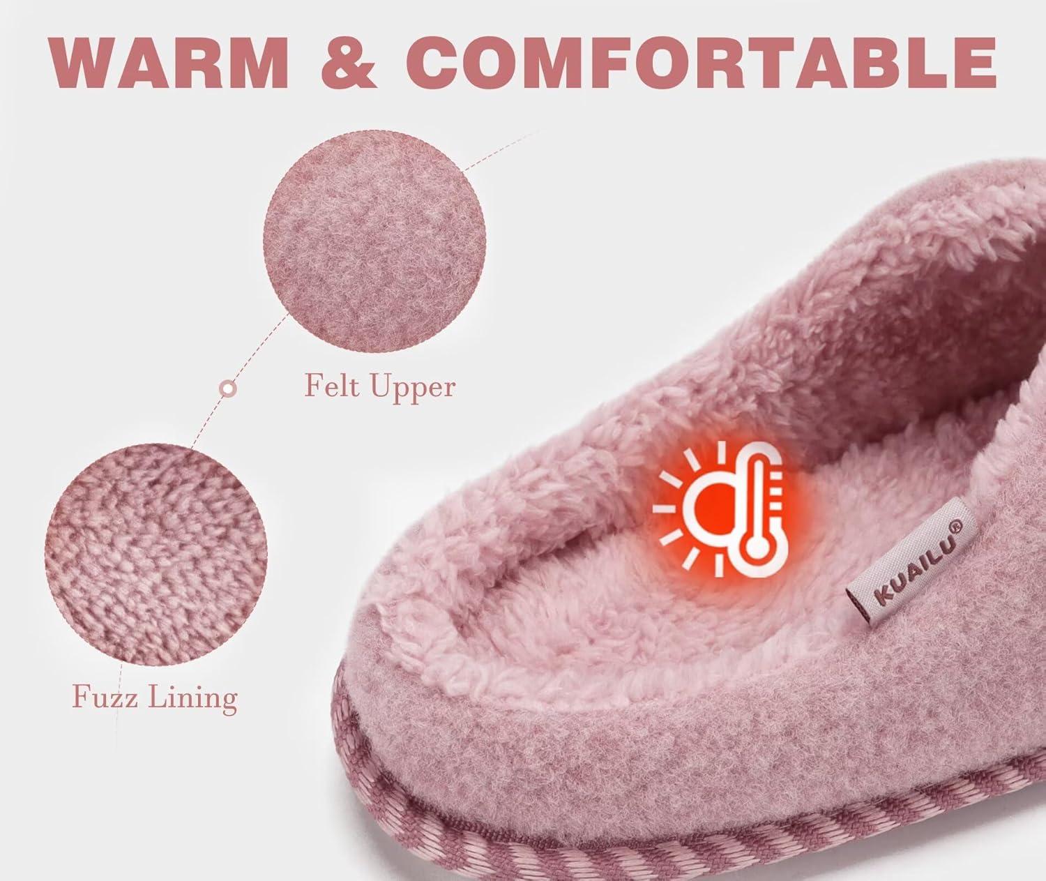 KuaiLu Women's Memory Foam House Slippers Supportive Cushion Felt Winter Shoes Ladies Warm Fuzzy Faux Fur with Indoor Outdoor Rubber Sole